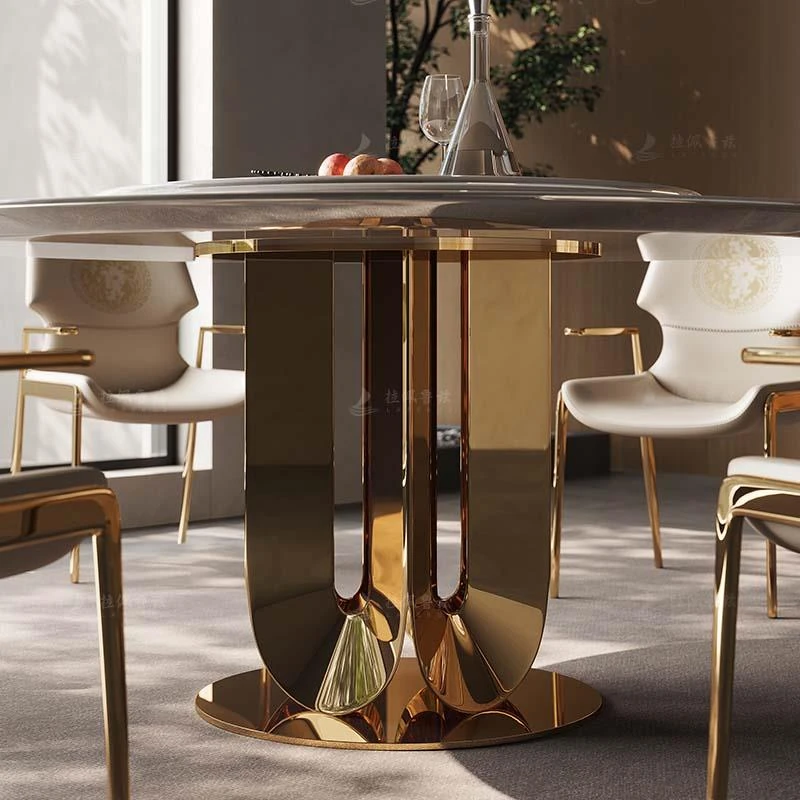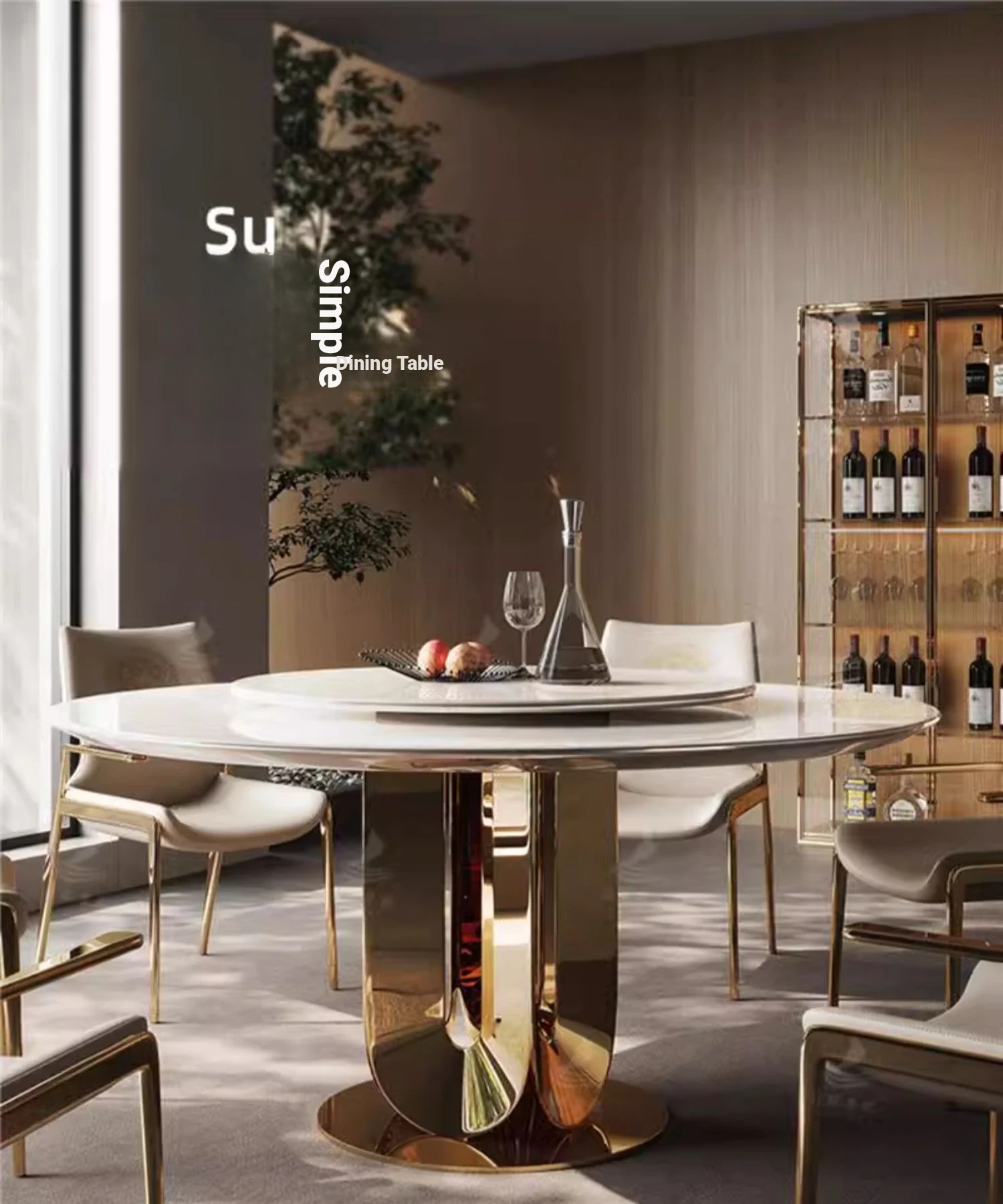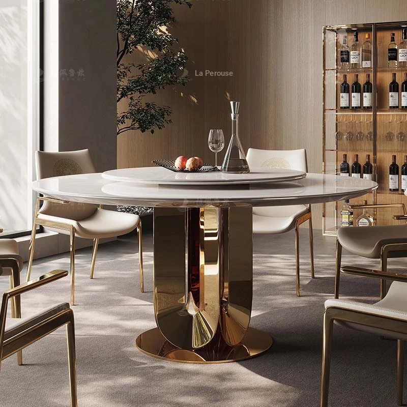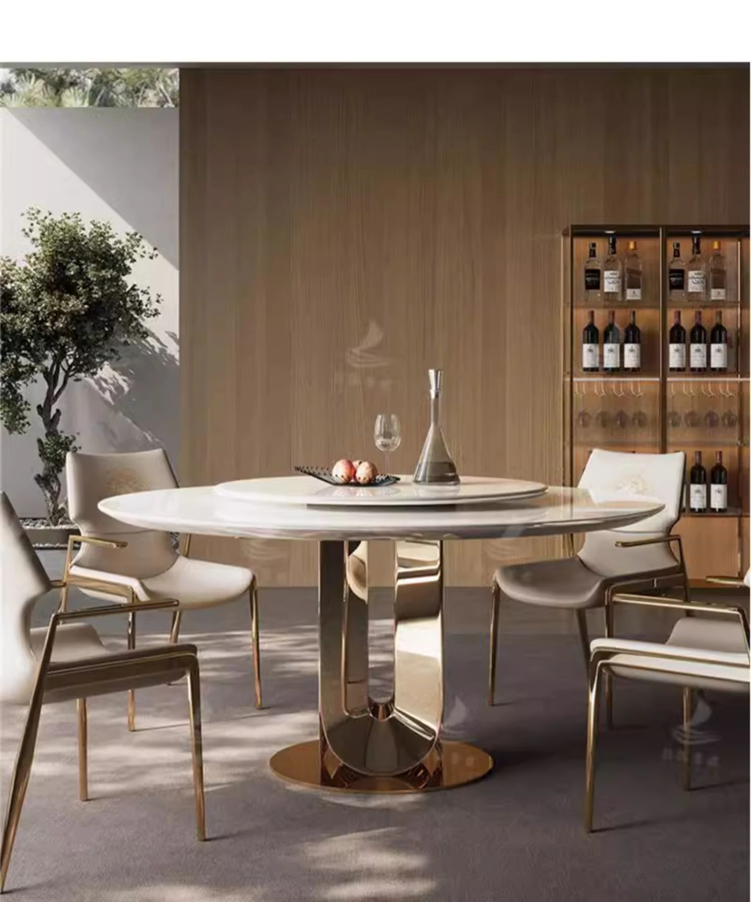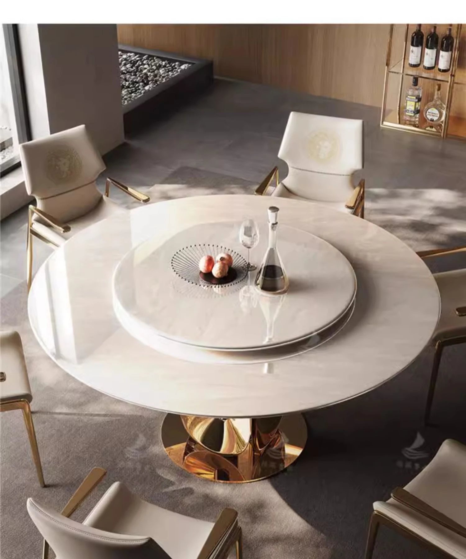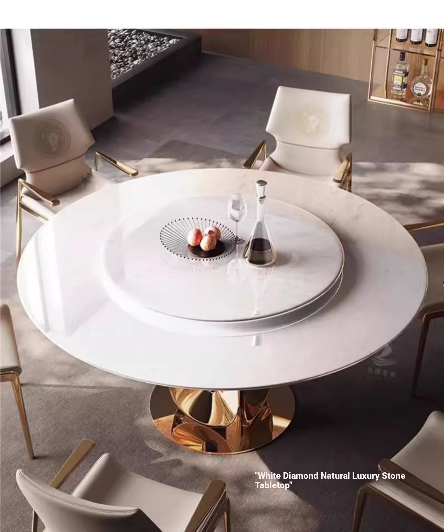 Dining table/53.15in/White Diamond/champagne gold/with 27.56in turntable