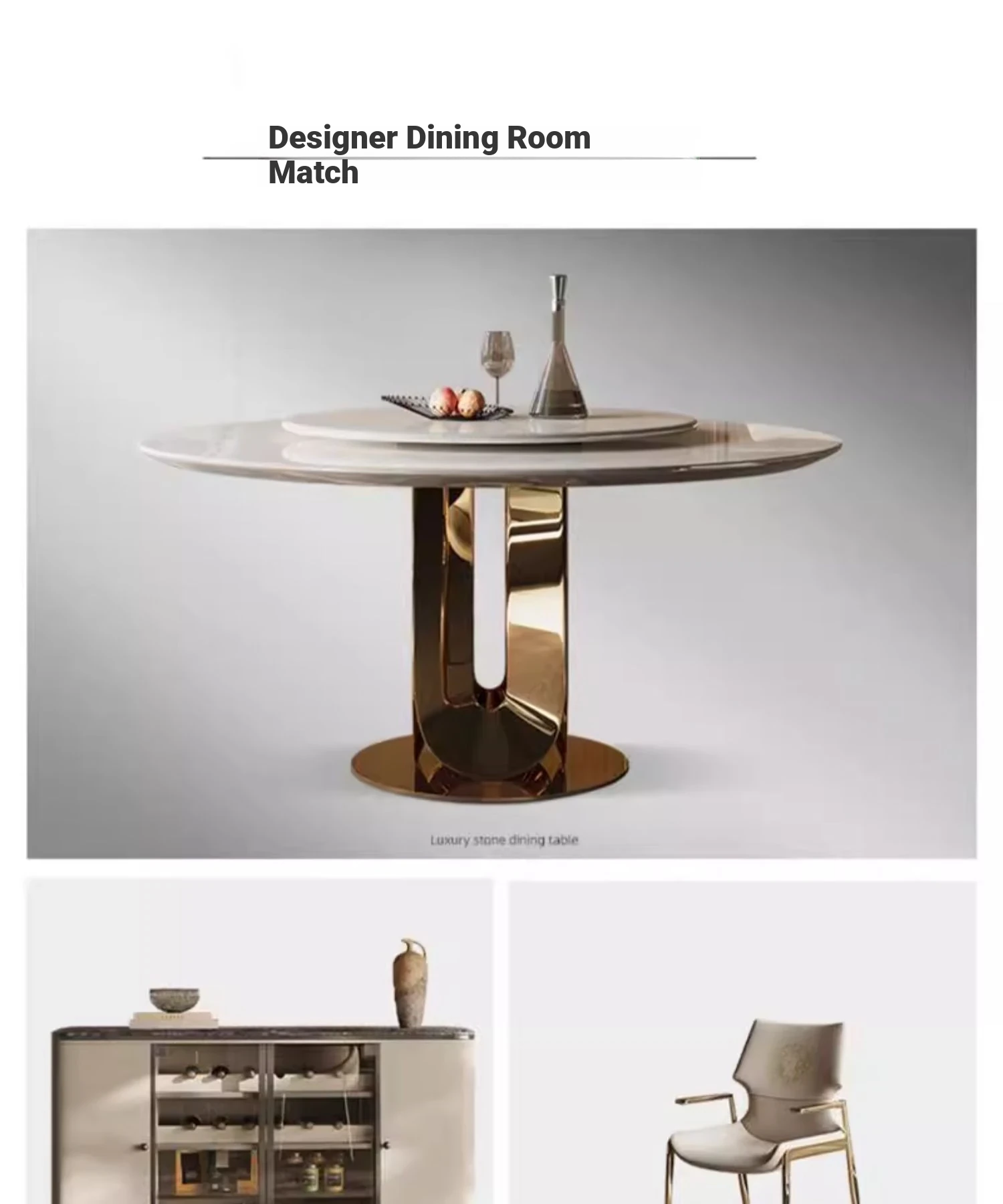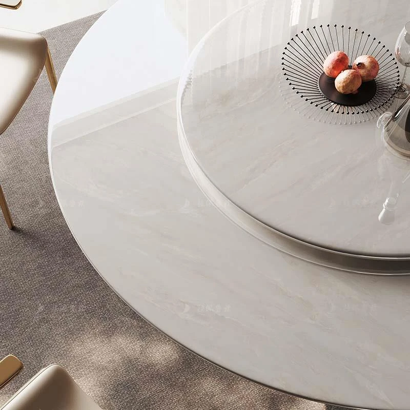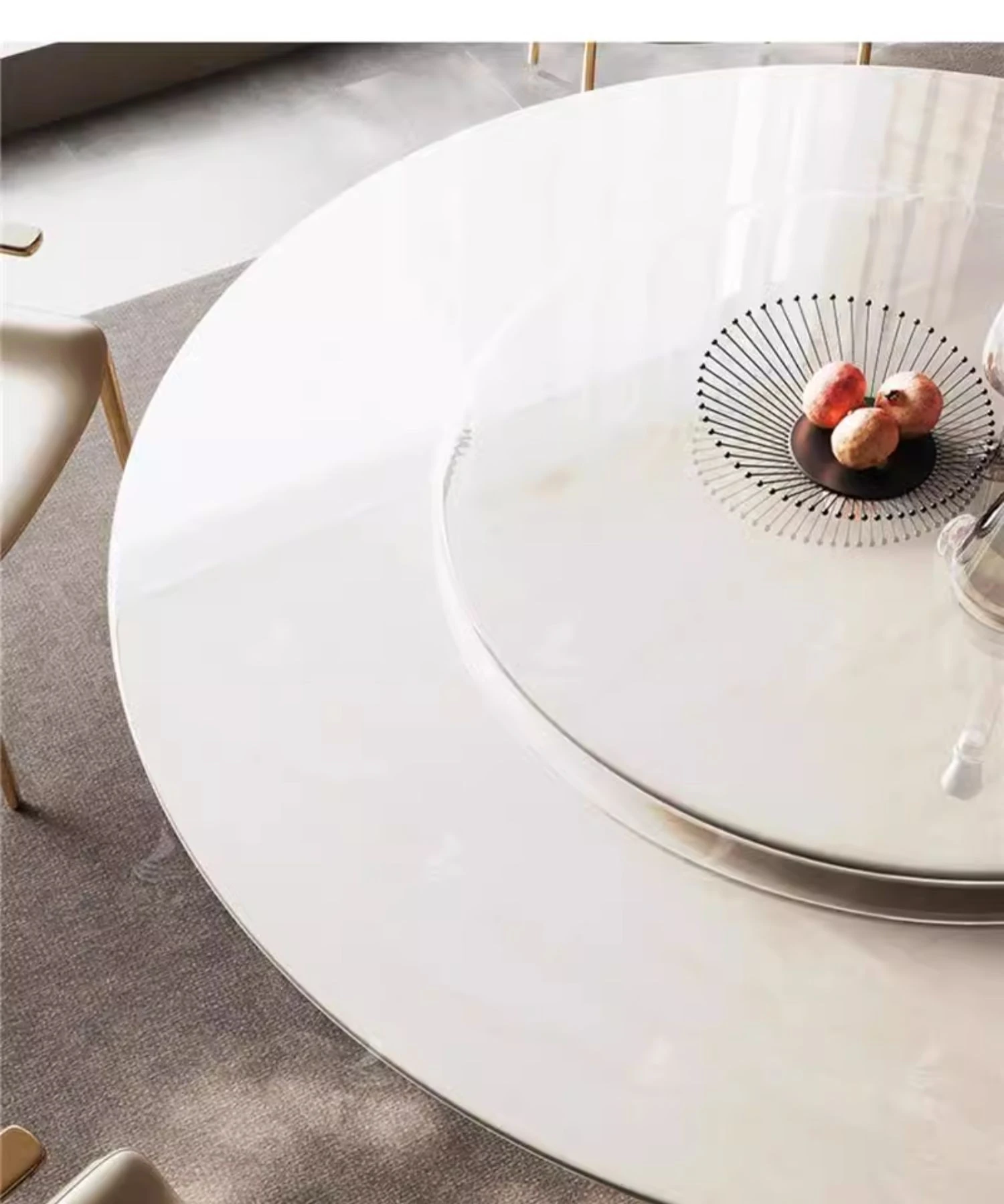 Dining table/59.06in/White Diamond/champagne gold/with 35.43in turntable
