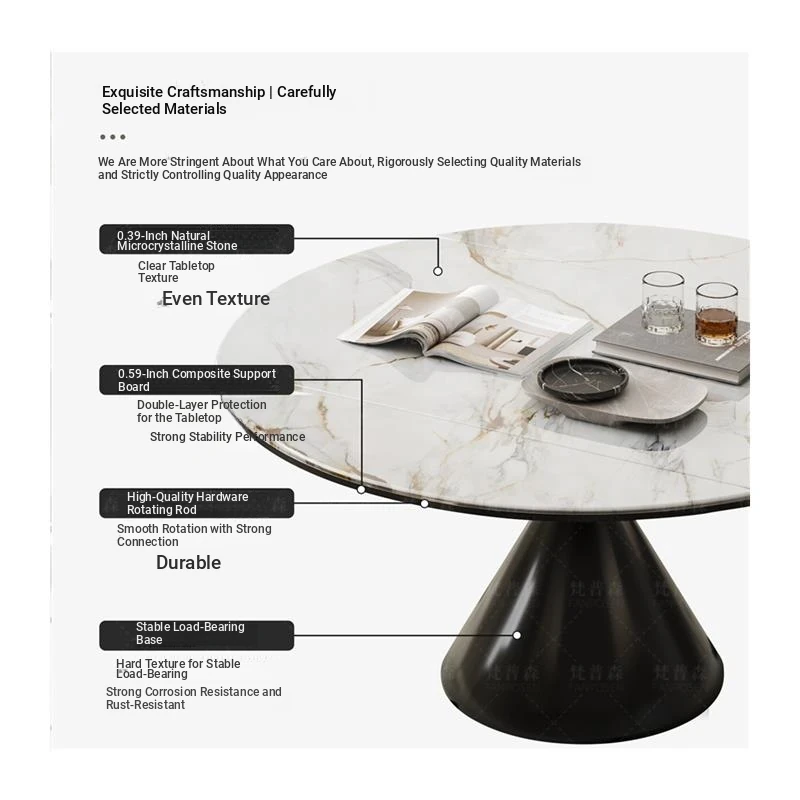 French retractable table table [microcrystalline stone] square and round dual-purpose + turntable + cloud chair * 4