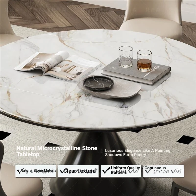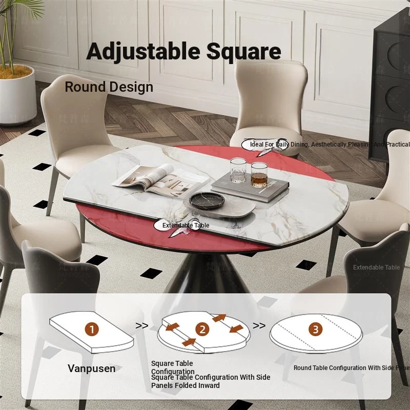 French retractable table table [microcrystalline stone] square and round dual-purpose + cloud chair * 6