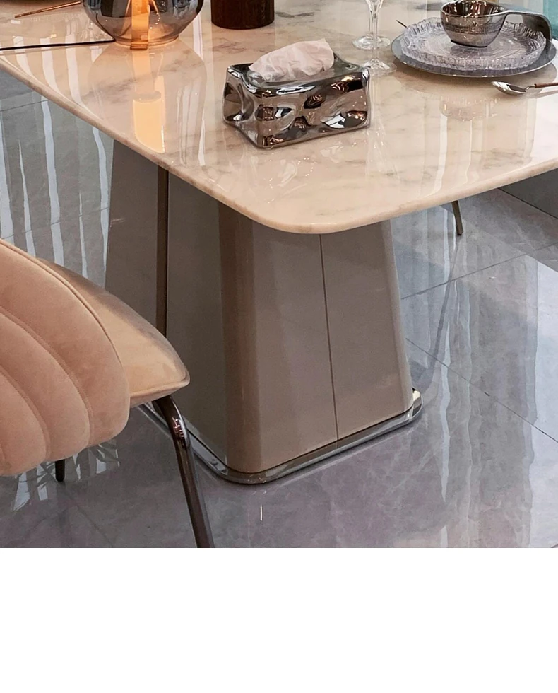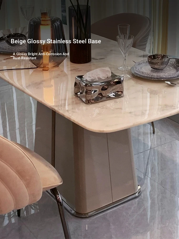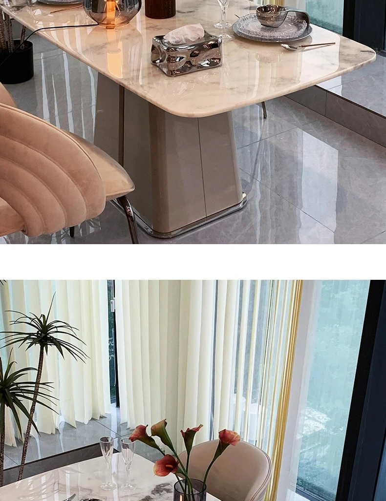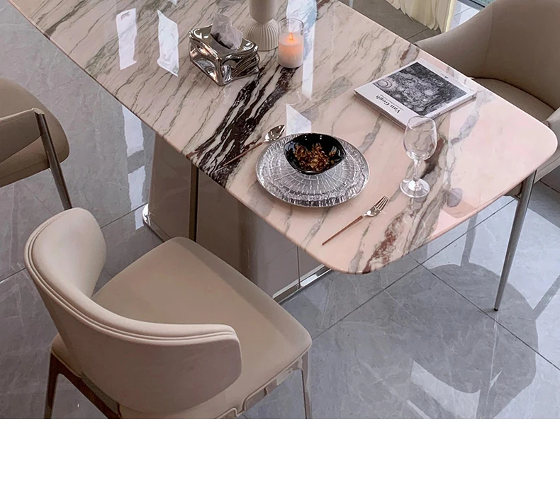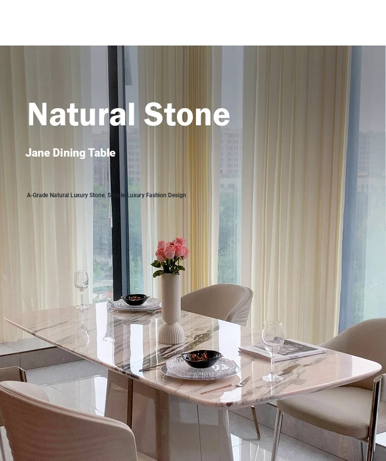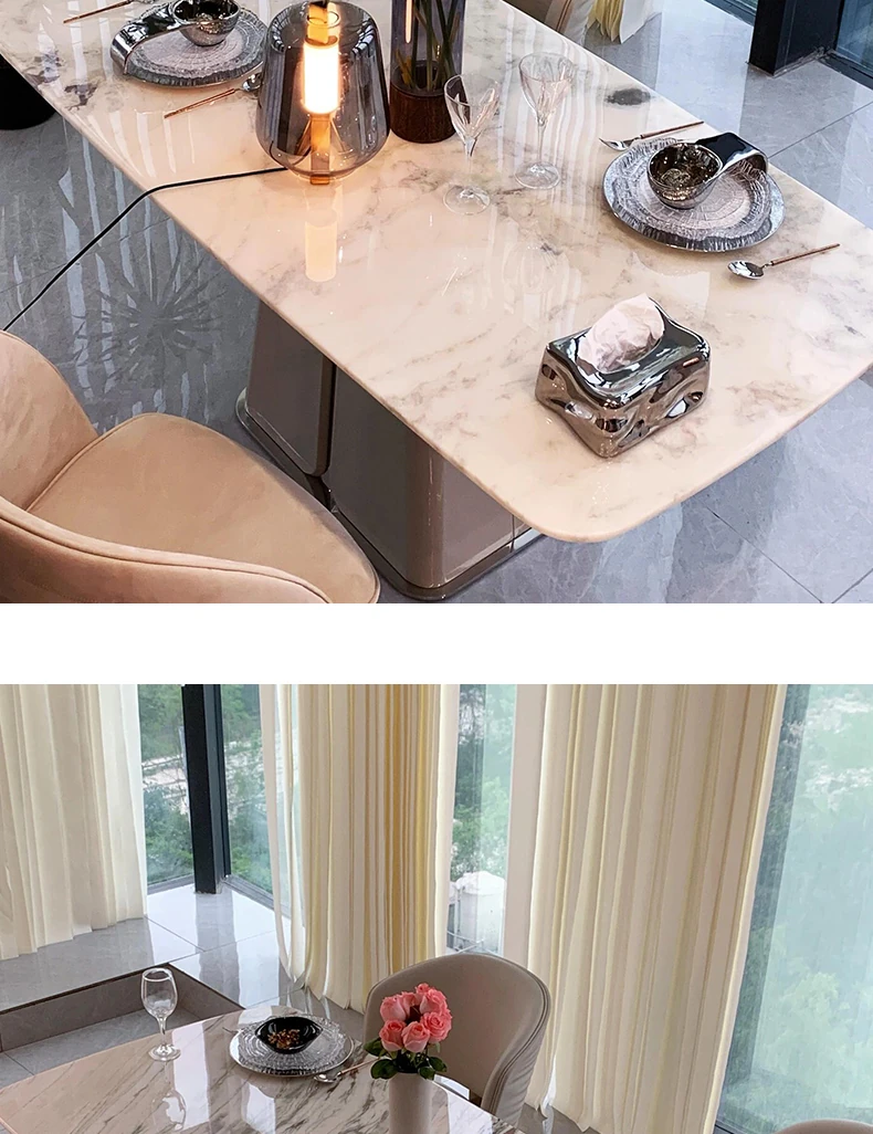 78.74in powder peringyun luxury stone dining table [horse belly shape]]