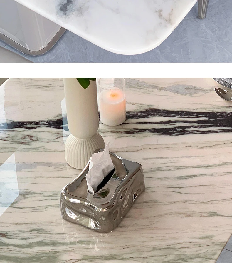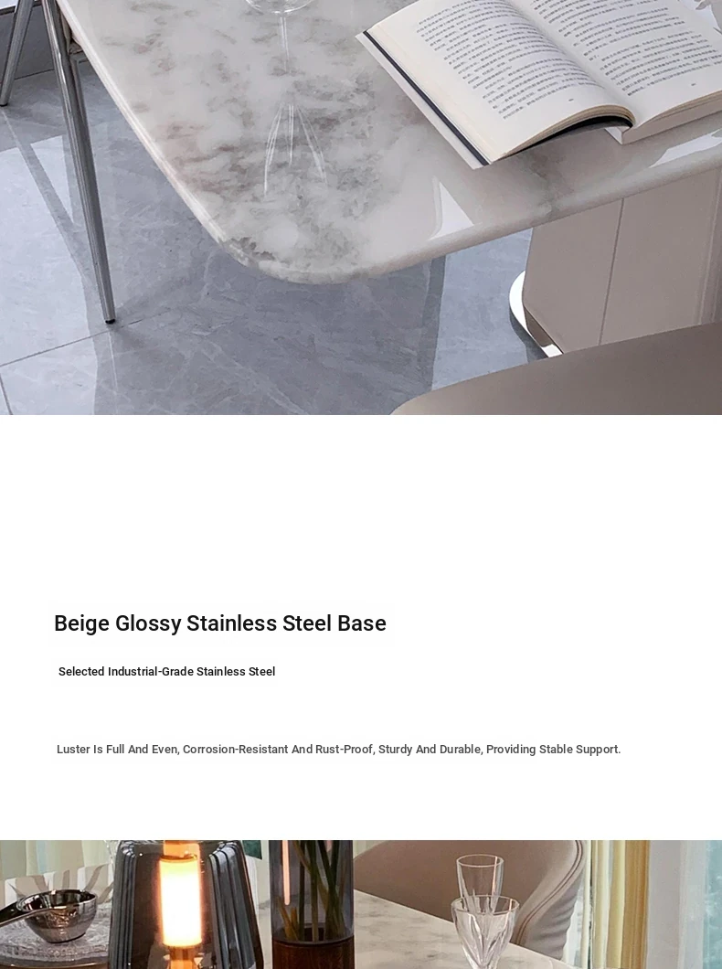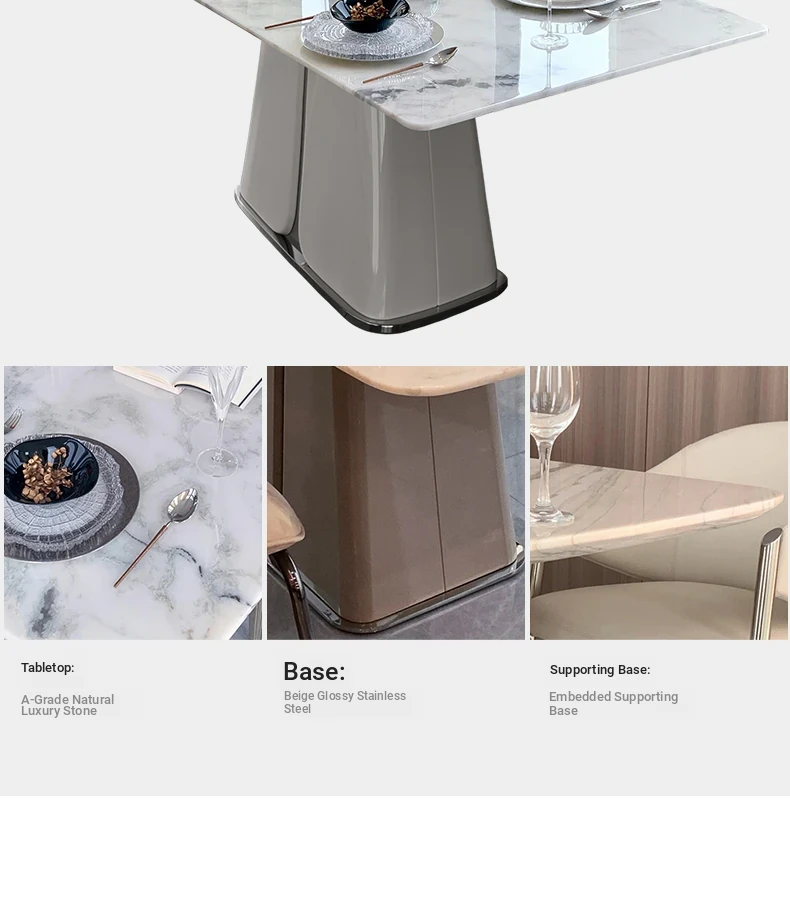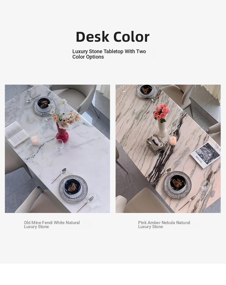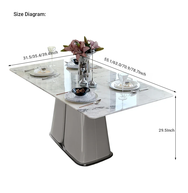 62.99in powder peringyun luxury stone dining table [horse belly shape]]