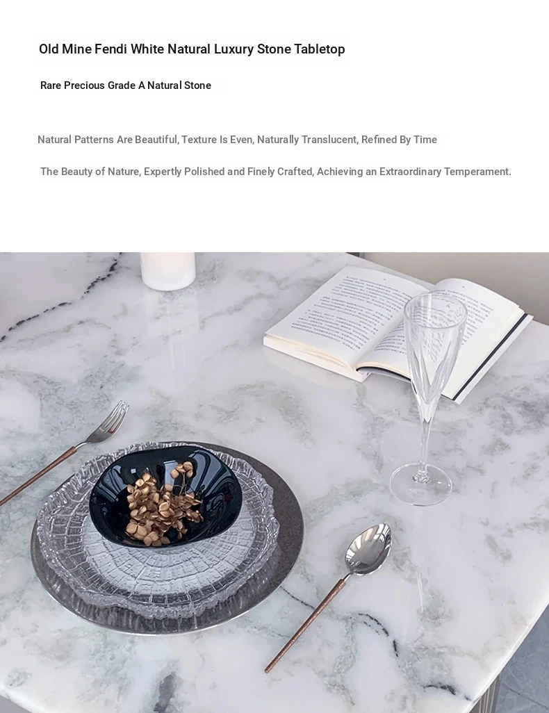 70.87in Old Mine Fendi White Luxury Stone Dining Table [Straight Edge Fillet]]
