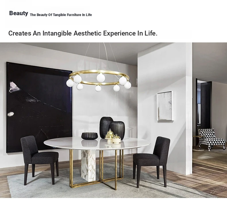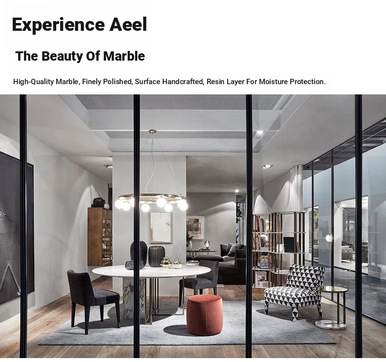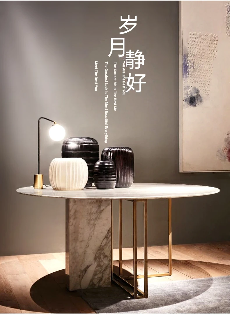 Elegant Round Natural Marble Dining Table for Home - Nordic Minimalist Style, Luxurious White Stone with Sophisticated Design