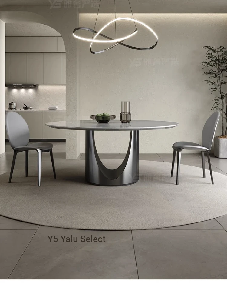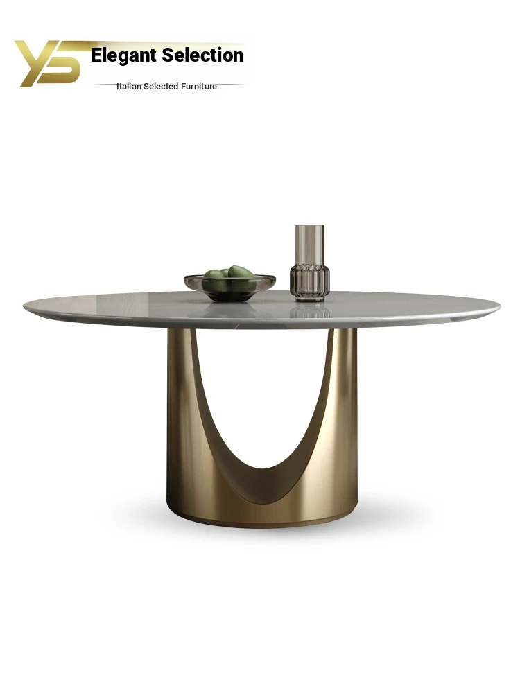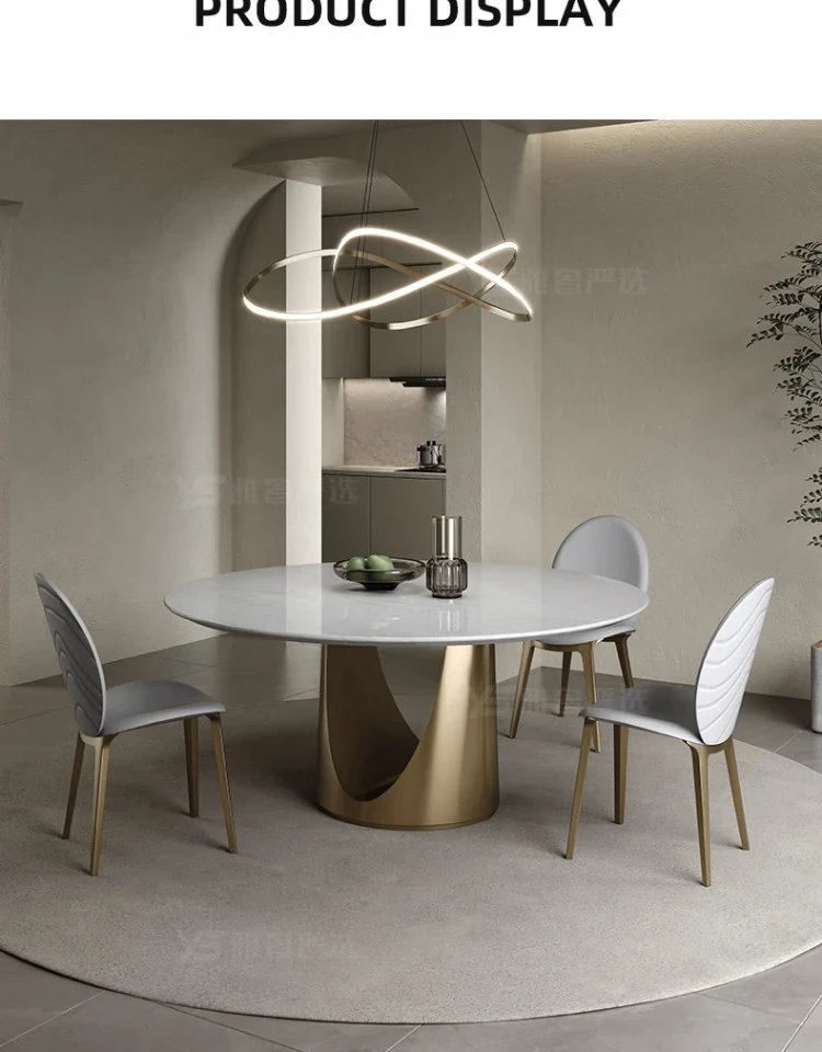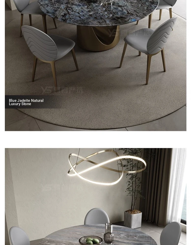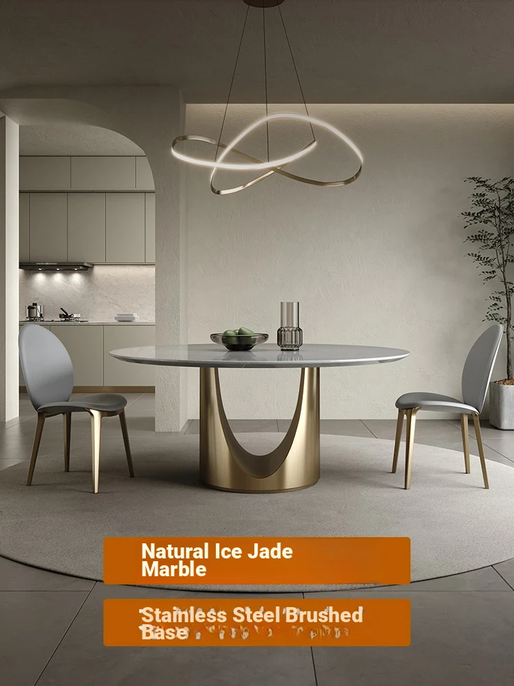 Carrie Ice Crystal Natural Stone Round Table [Electric Transformer*59.06in / Champagne Gold