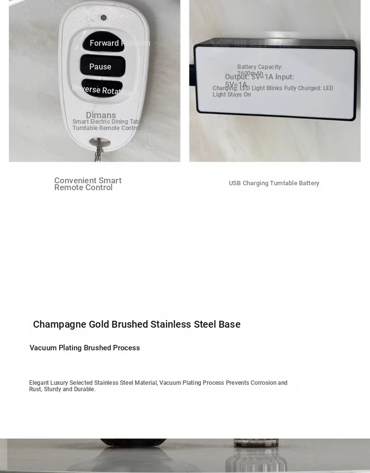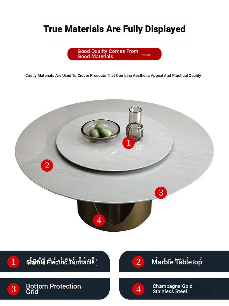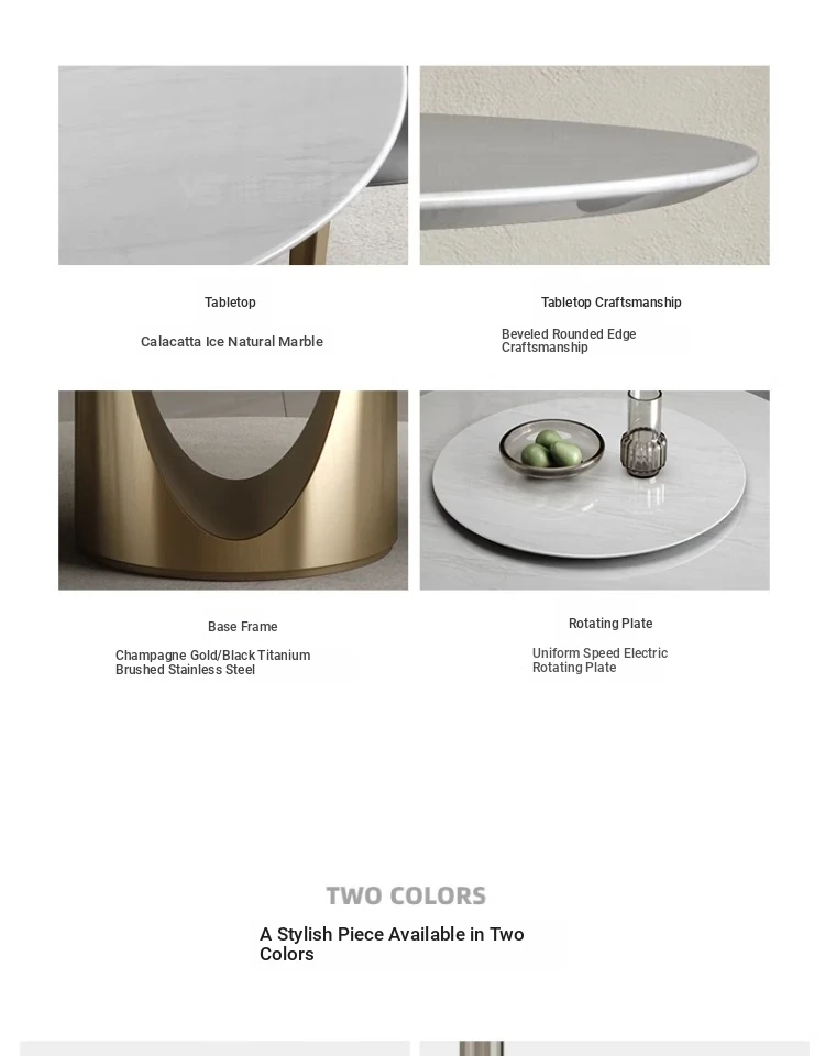 Carrie Ice Crystal Natural Stone Table [Electric Rotator*62.99in / Champagne Gold]