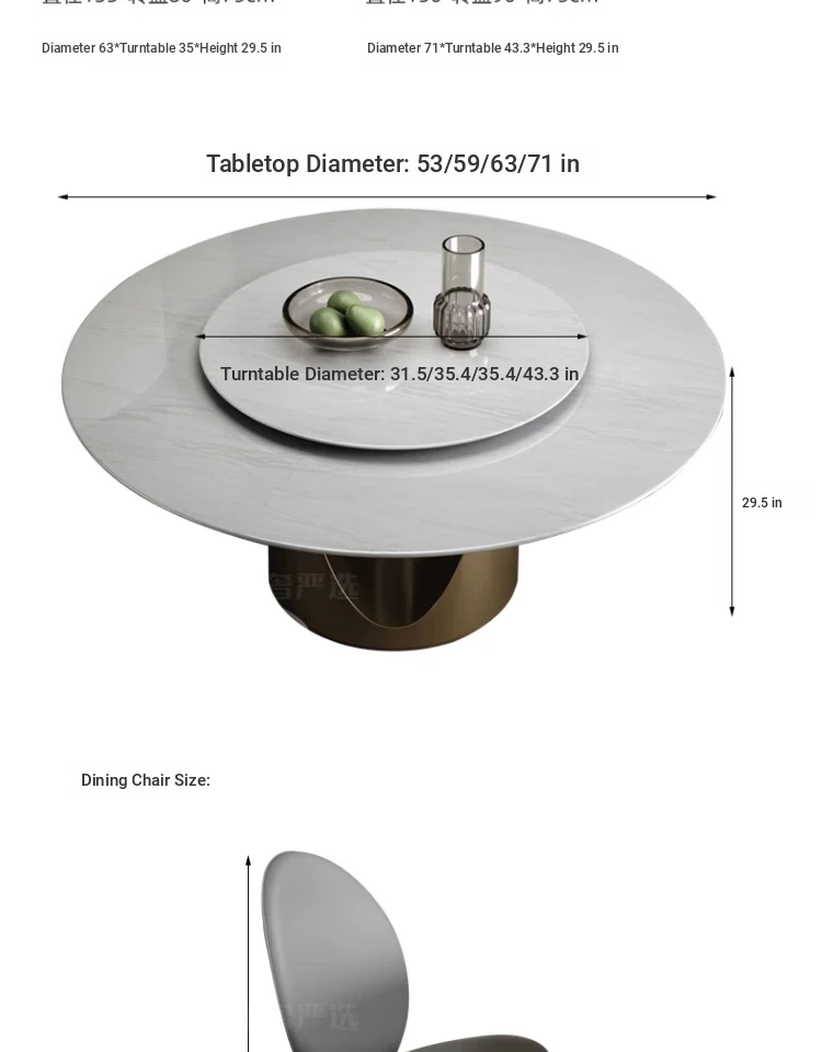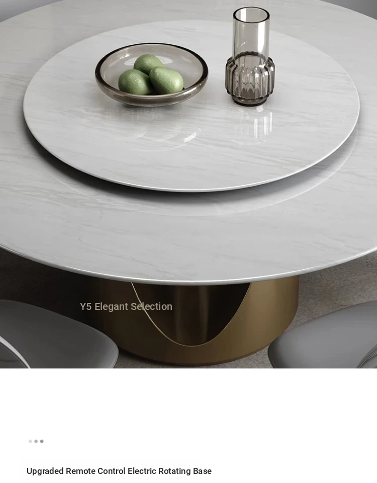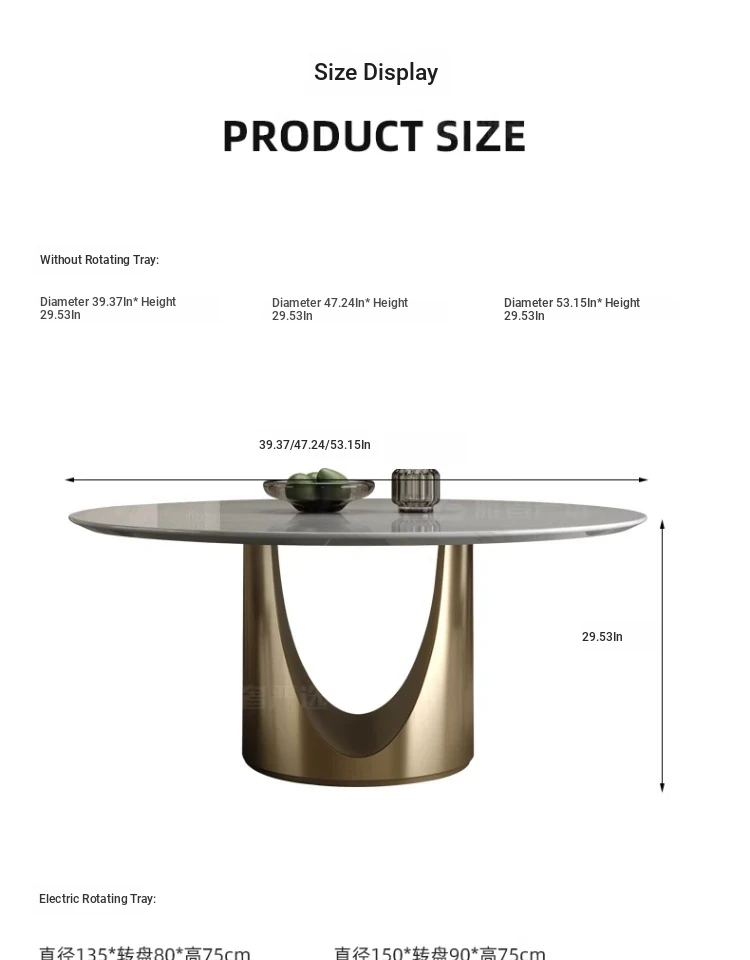 Carrie Ice Crystal Natural Stone Round Table [ Electric Rotator * 53.15 in / Champagne Gold ]