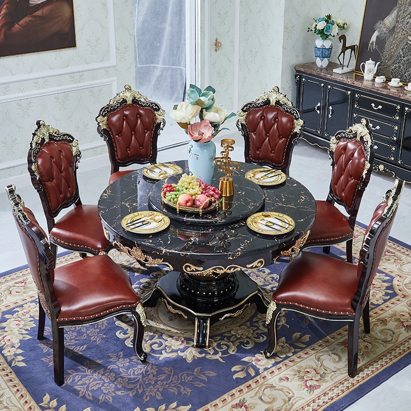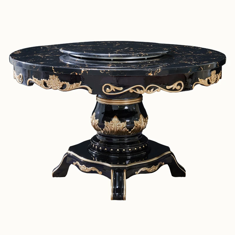 Elegant Solid Wood Round Dining Table Set with Marble Top - Perfect for Small Spaces! Includes Lazy Susan for Effortless Sharing, Ideal for Cozy Family Meals and Stylish Dining Rooms.