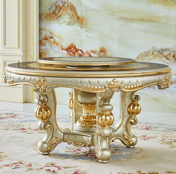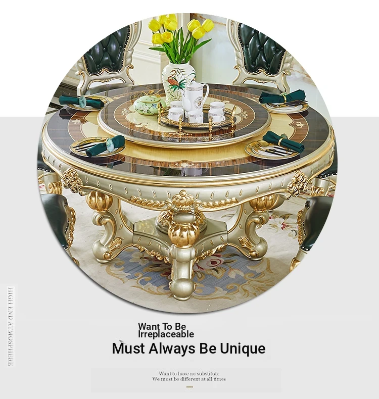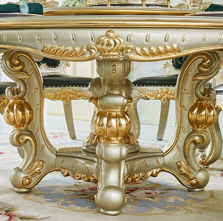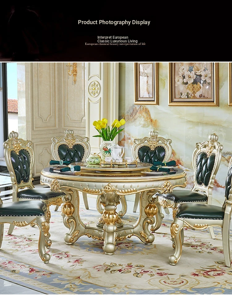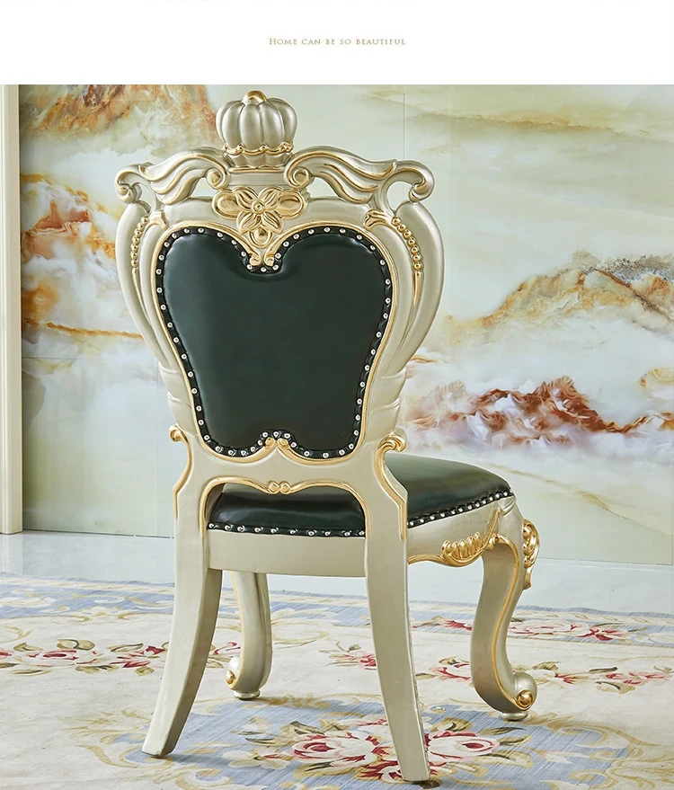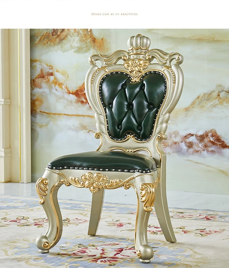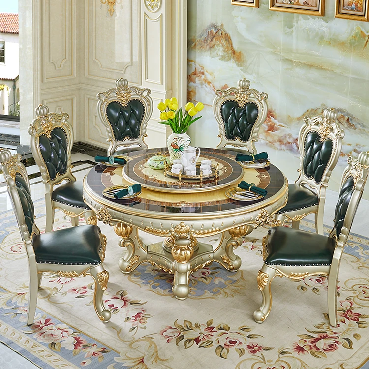 Elegant Villa Dining Set: Crown Emerald Green Chairs with Solid Wood Round Table, Featuring Luxurious Champagne Gold Marble Top - Perfect for Home Gatherings!