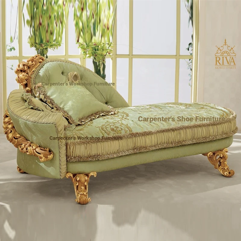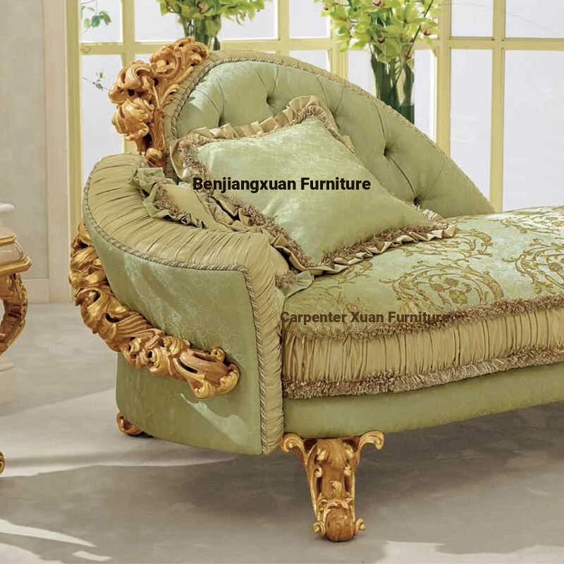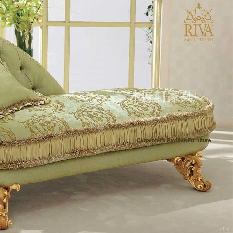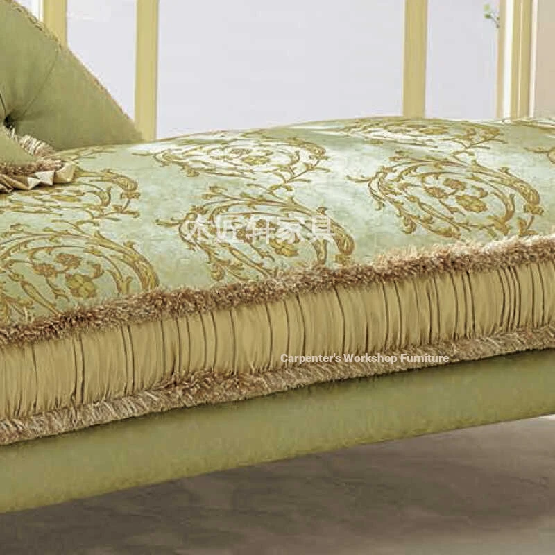 European-style New Classical Fabric Upholstered Button Tufted Chaise Lounge - French Palace Solid Wood Carved Bedroom Recliner, Elegant and Luxurious Daybed Chair