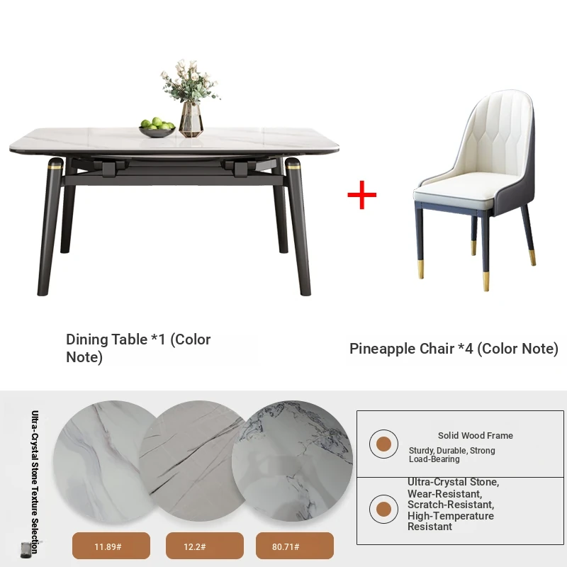 211# telescopic Super crystal stone dining table +6 pineapple chair [0.47in Super crystal stone]]