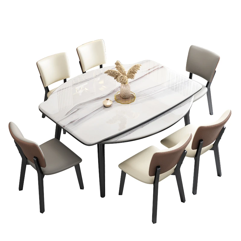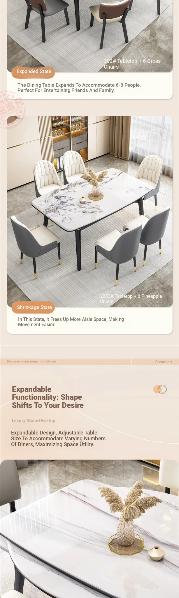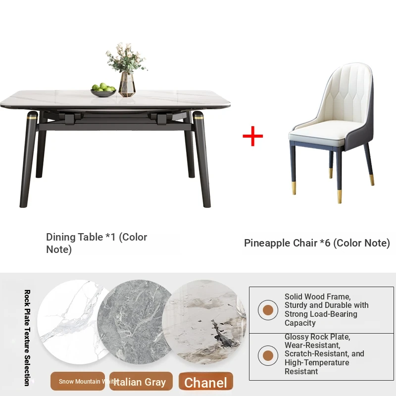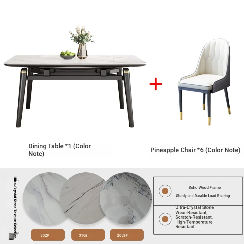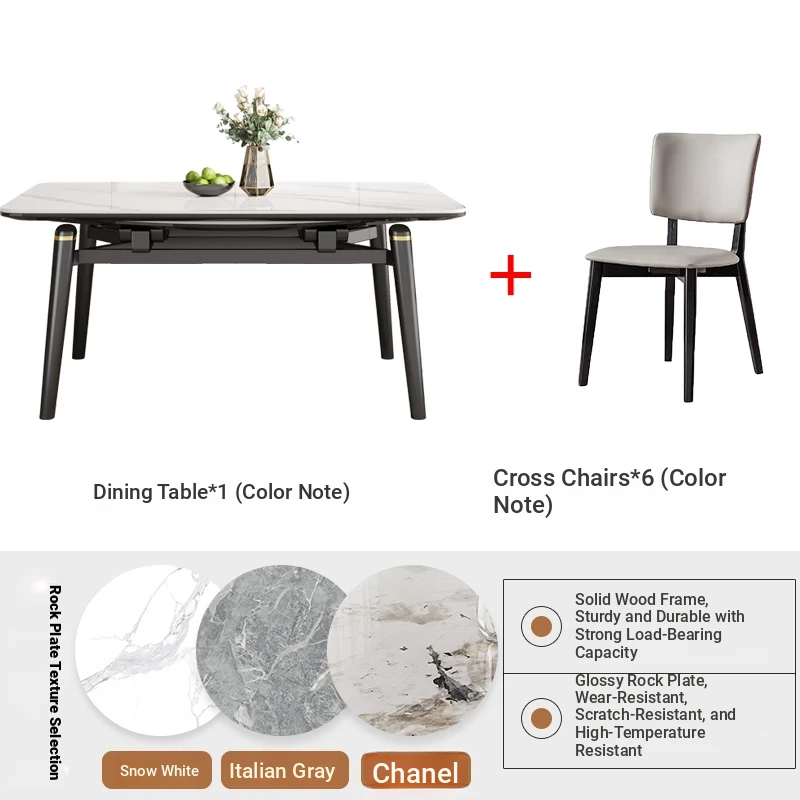 211# telescopic rock plate dining table +6 cross chair [0.47in rock plate]]