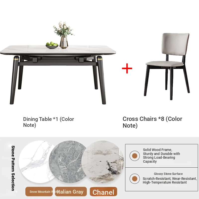 211# telescopic rock plate dining table +8 Cross chair [0.47in rock plate]]