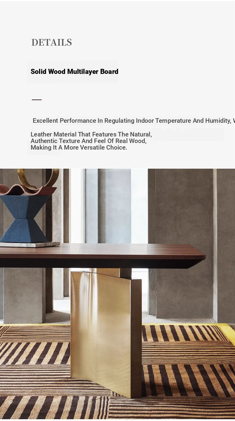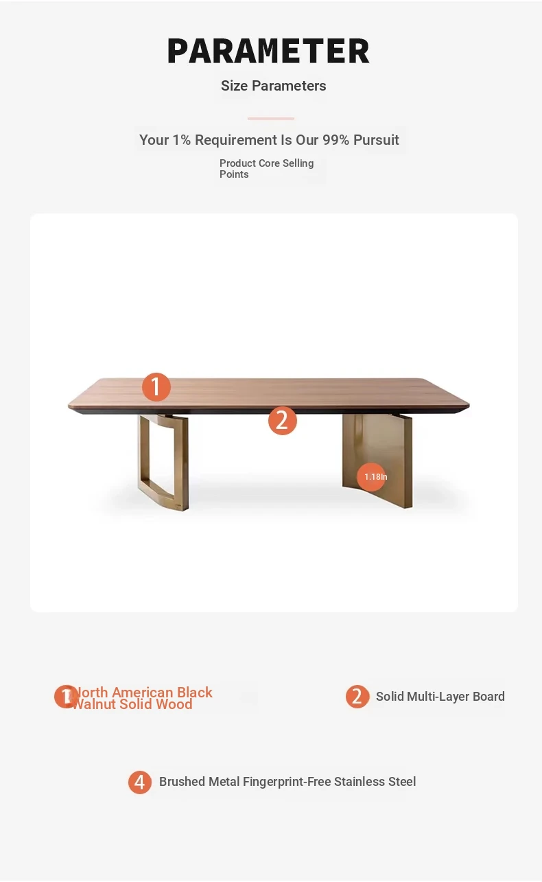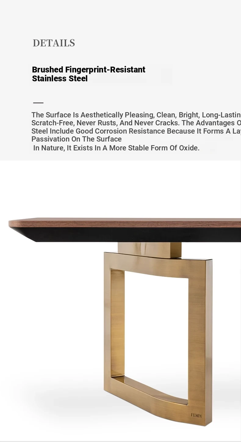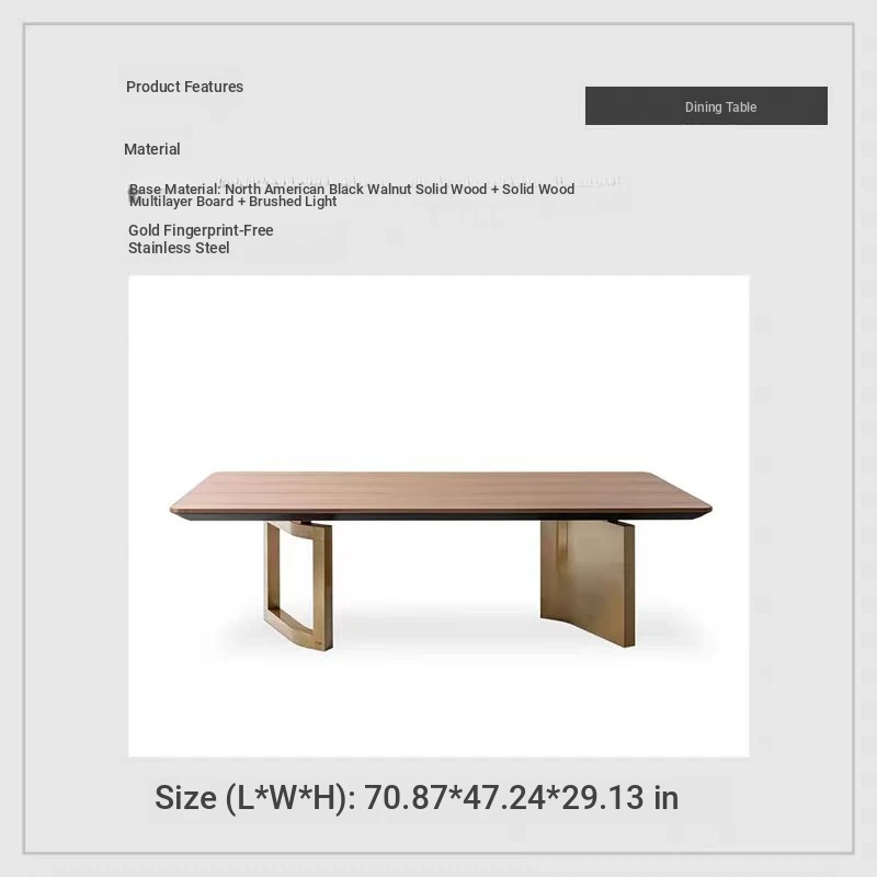 High-End Italian Style Solid Wood Rectangular Dining Table for Small Spaces - Stainless Steel Designer Table, Perfect for Modern Homes