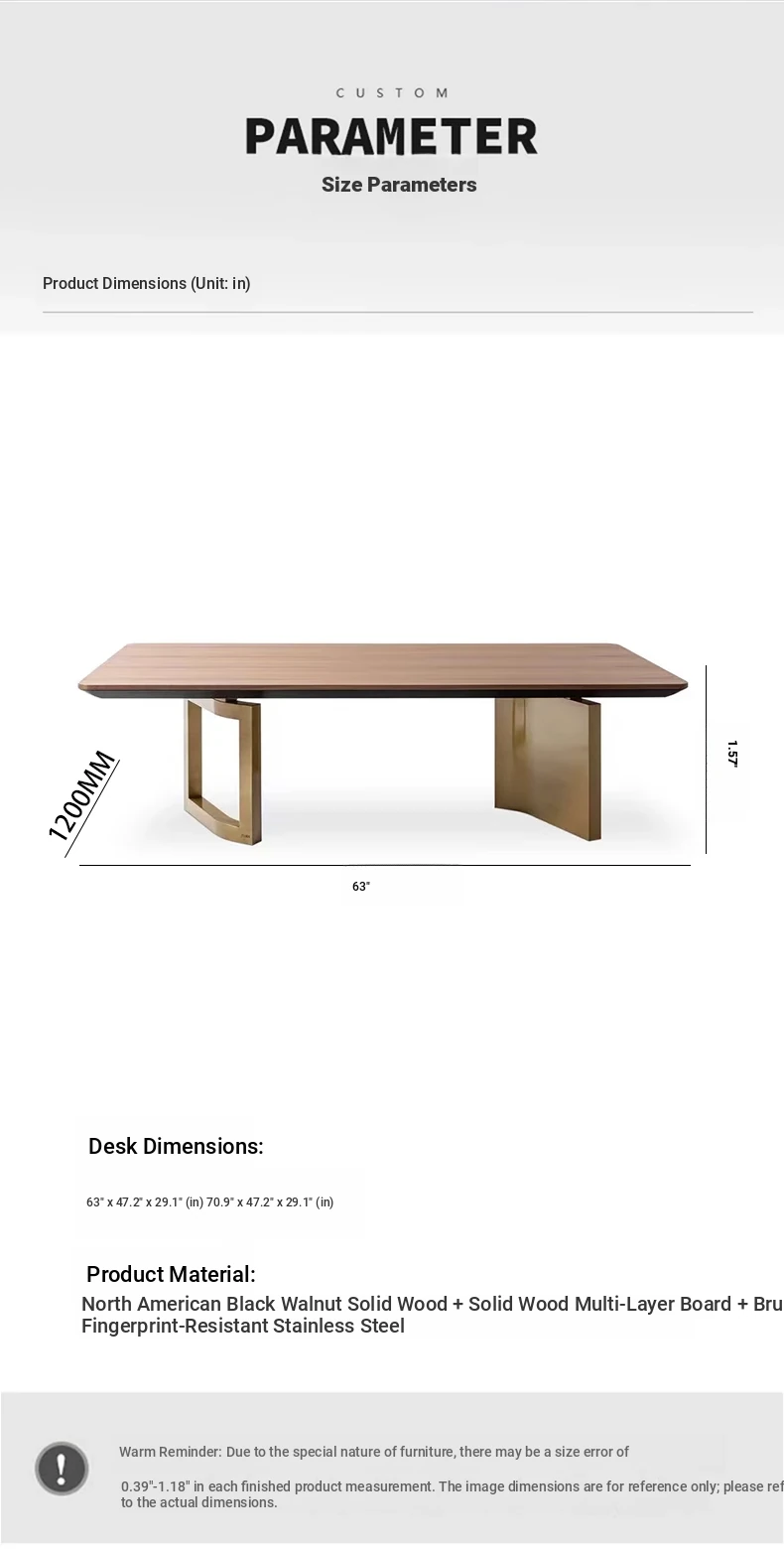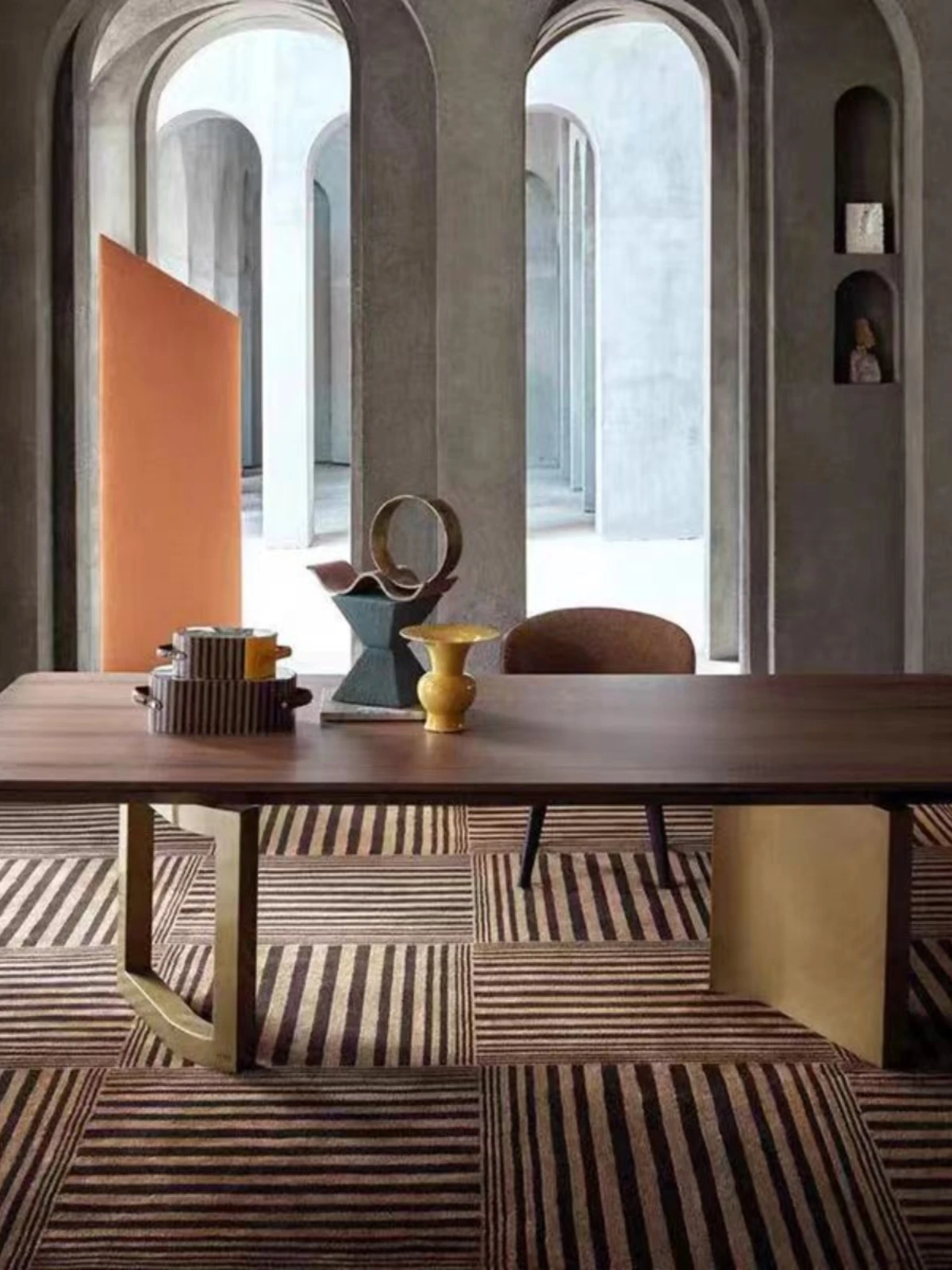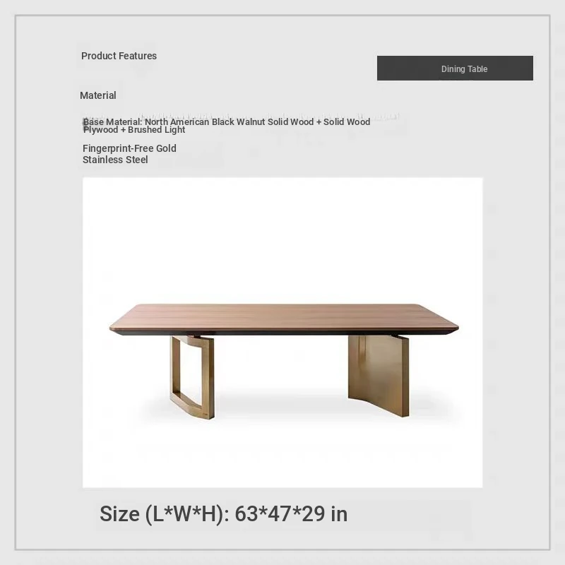High-End Italian Style Solid Wood Rectangular Dining Table for Small Spaces - Stainless Steel Designer Table, Perfect for Modern Homes