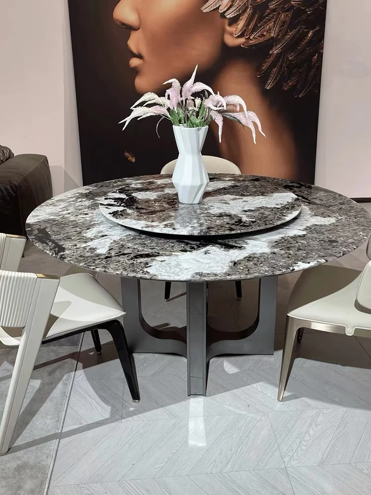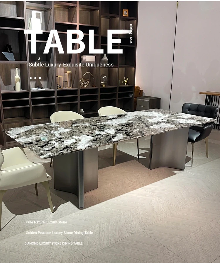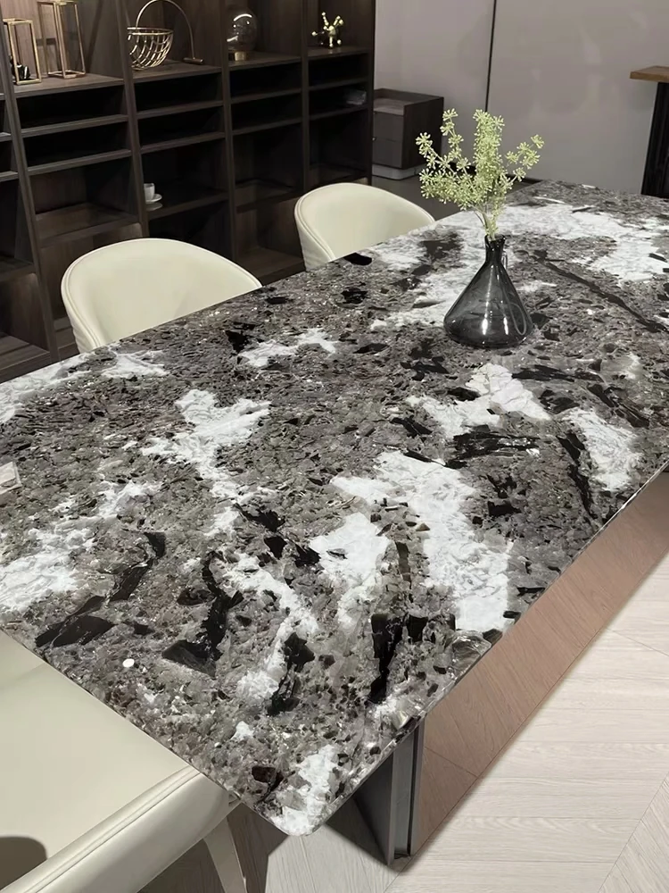 Imported Brazilian Natural Luxury Stone from Foshan, Guangdong - Designer High-End Villa Dining Table for Home Use, Oval Shape, Exquisite Craftsmanship.