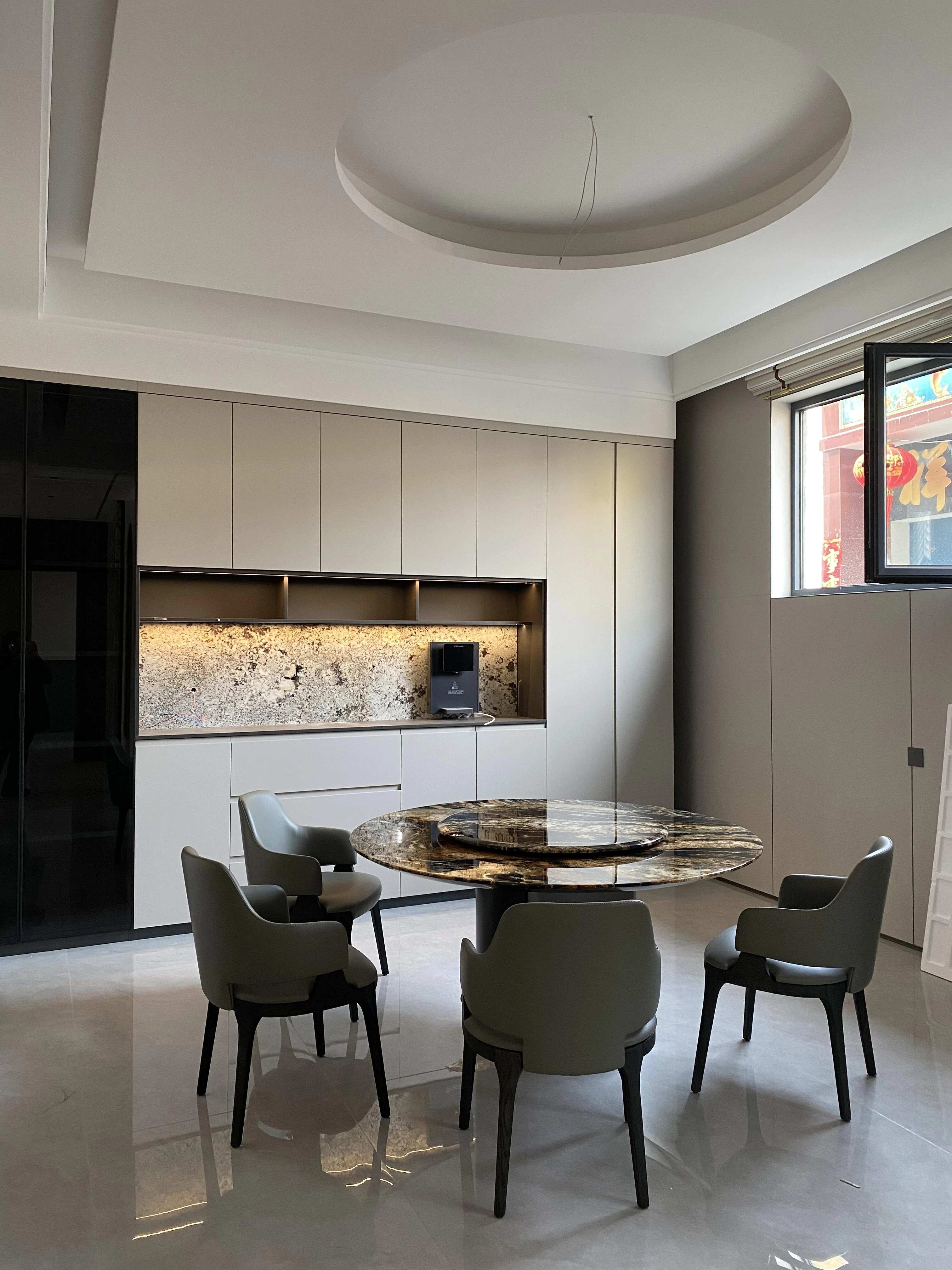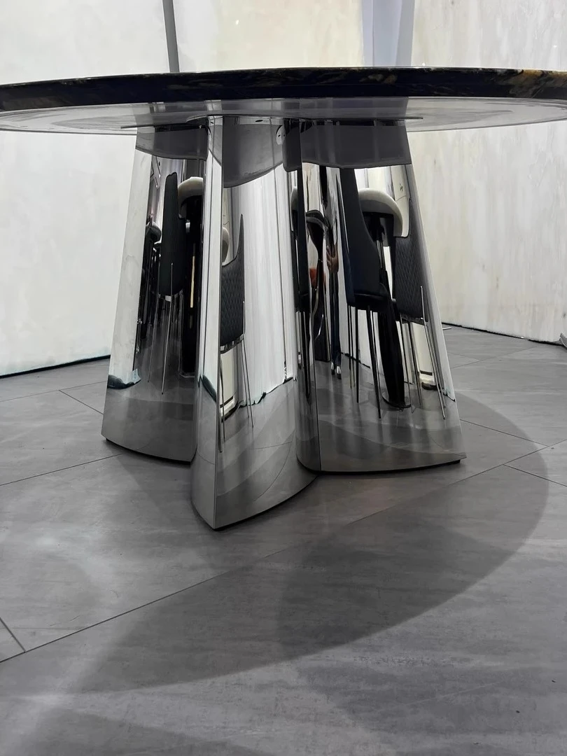 Imported Cosmic Gold Natural Marble Luxury Round Table - Modern Minimalist Design for High-End Villas and Spacious Living Areas, Perfect for Elegant Dining and Sophisticated Entertaining.