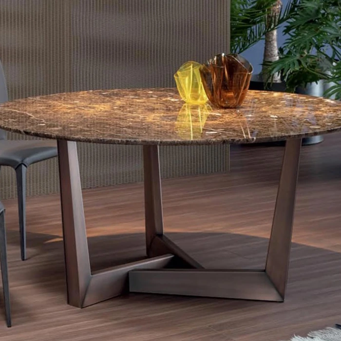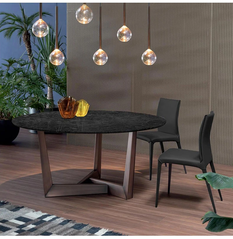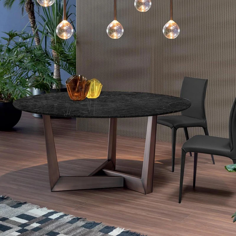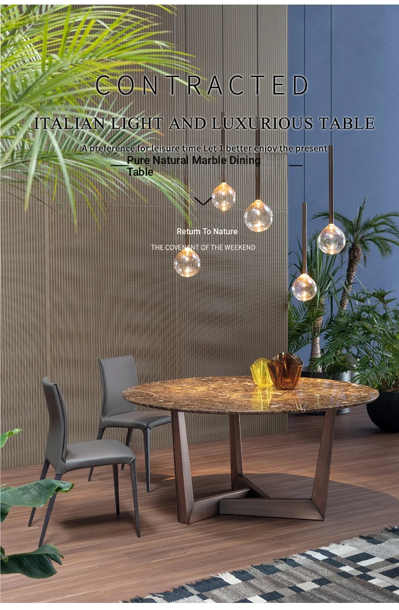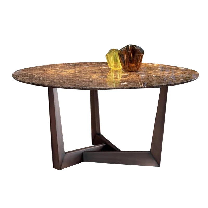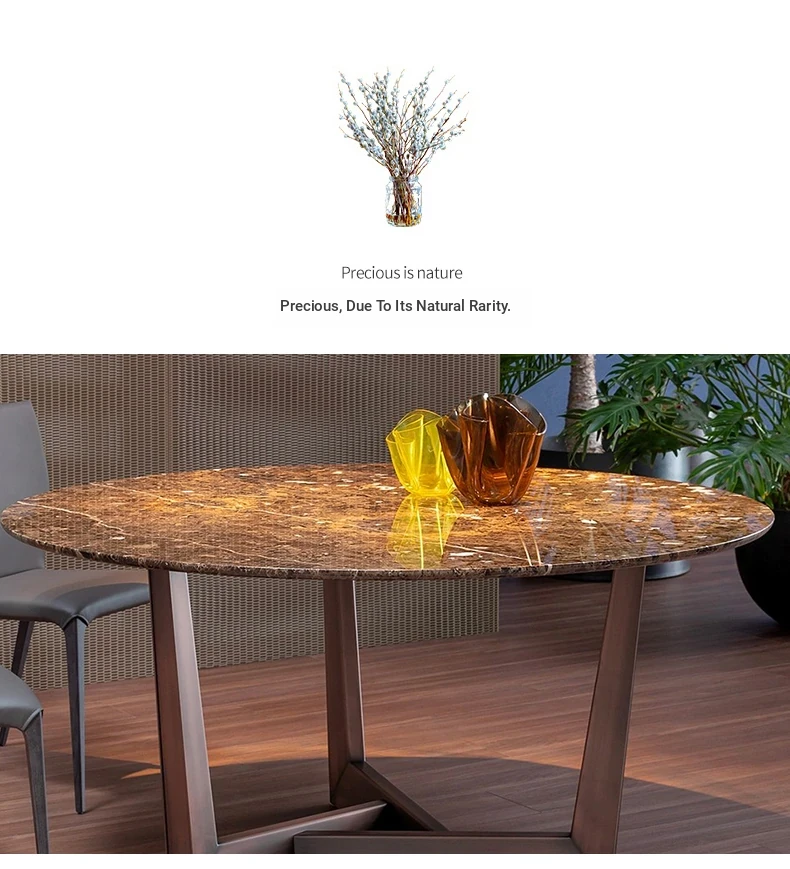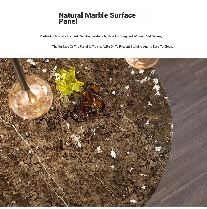 Imported Natural Marble Round Dining Table - Elegant and Minimalist Design for High-End Villas, Perfect for Families Up to 8 People, Durable Rock Plate Construction