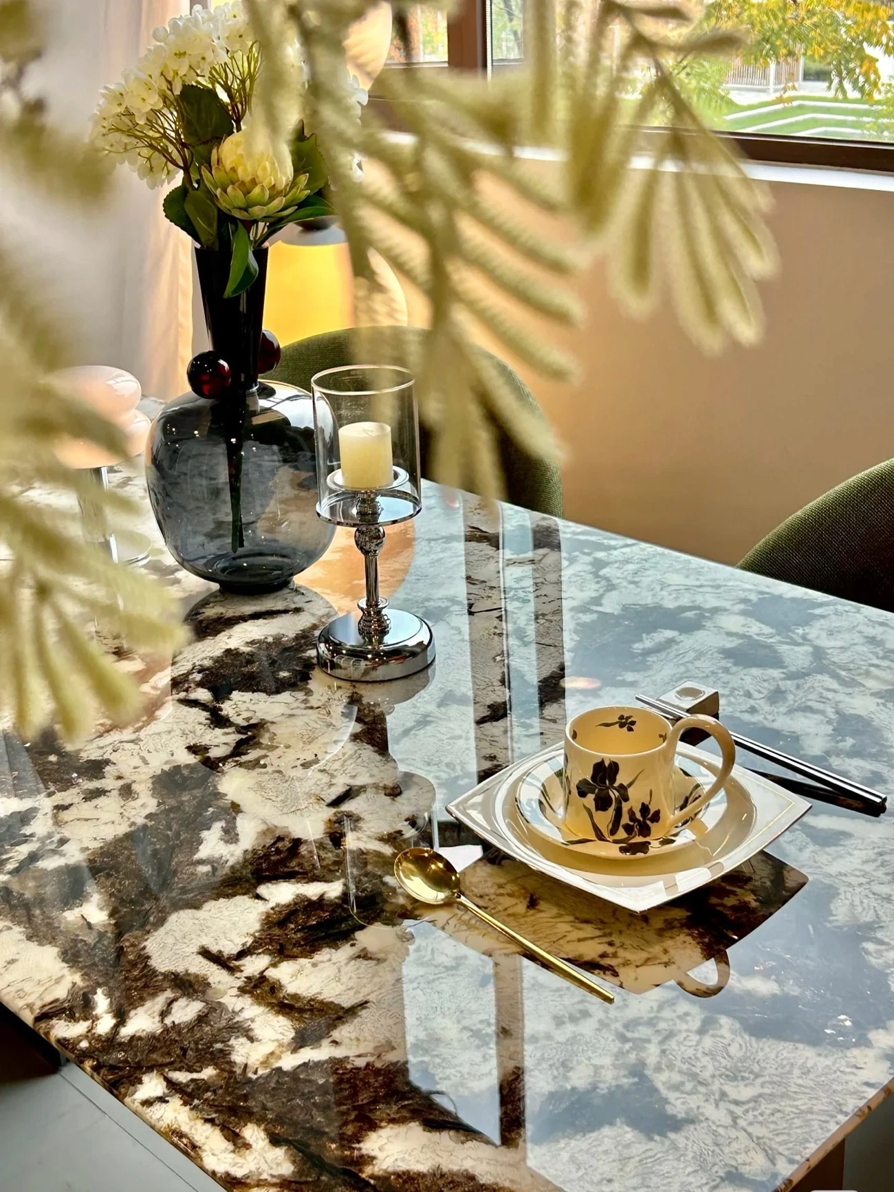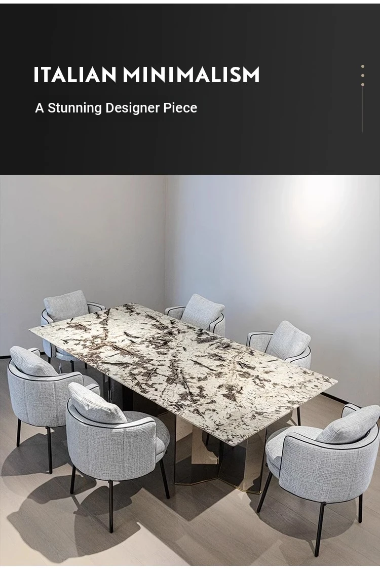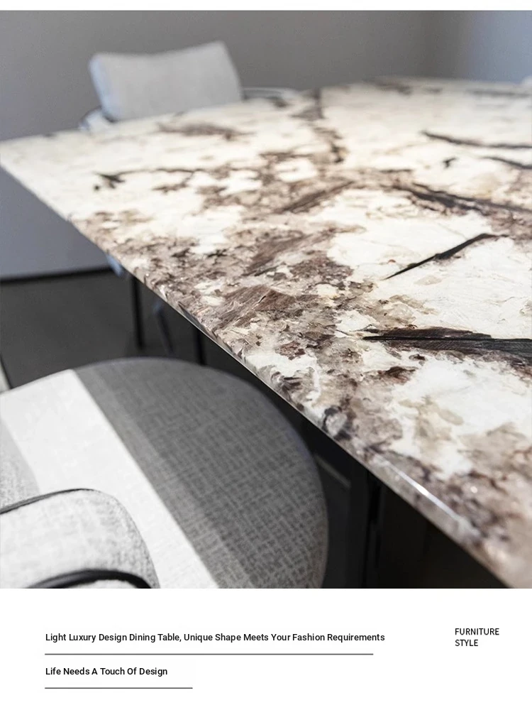 Imported Pure Natural Luxury Snow Mountain Flying Fox Rectangular Dining Table - High-End Home Marble Dining Table for Elegant Homes