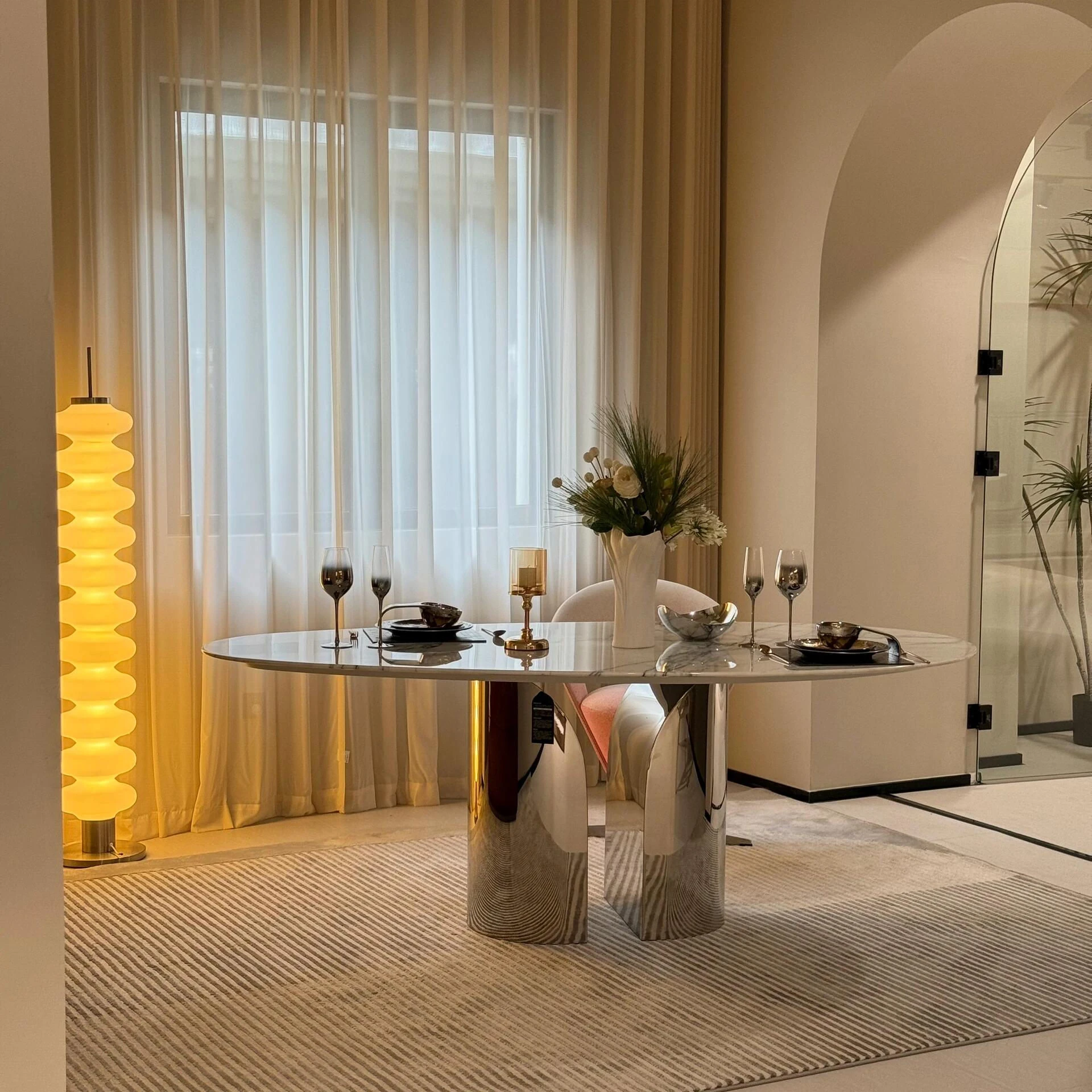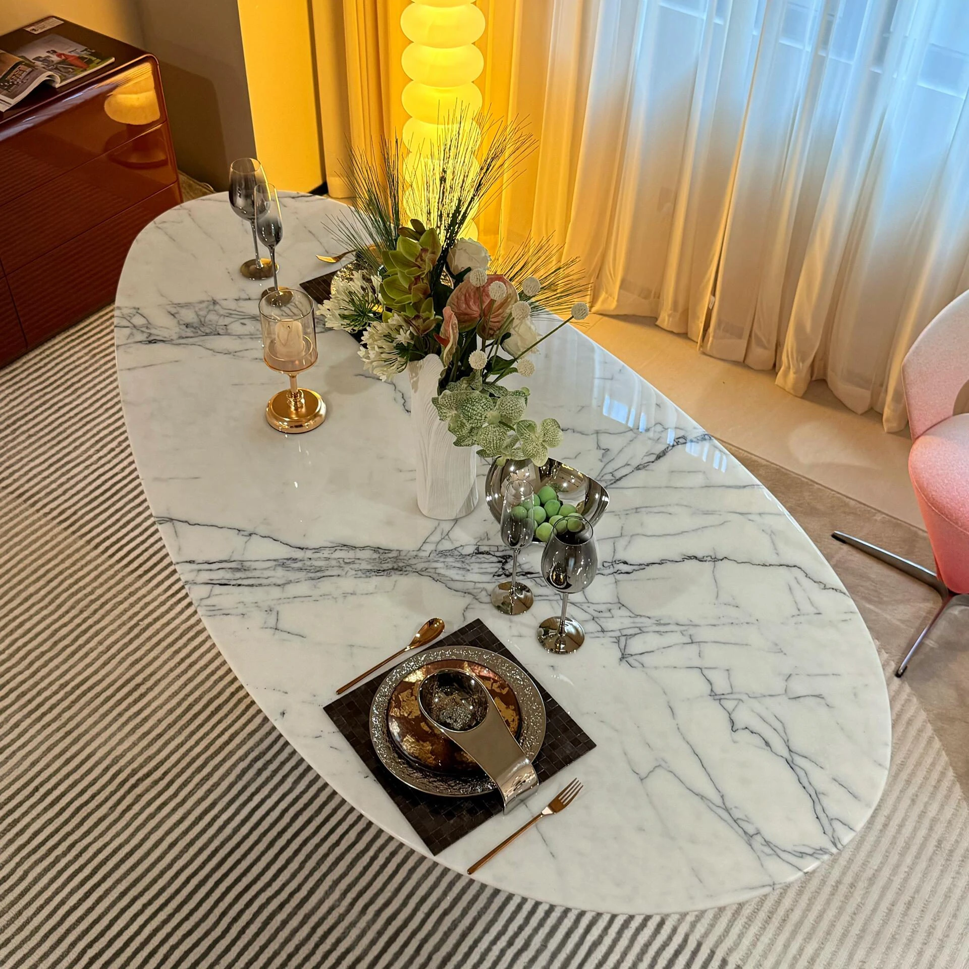 Imported Pure Natural Marble Dining Table - Italian Minimalist Design for Villas and Spacious Living - Luxury Stone Table for Elegant Dining Experience