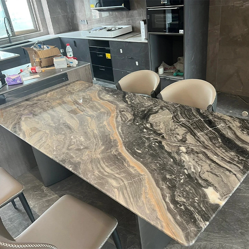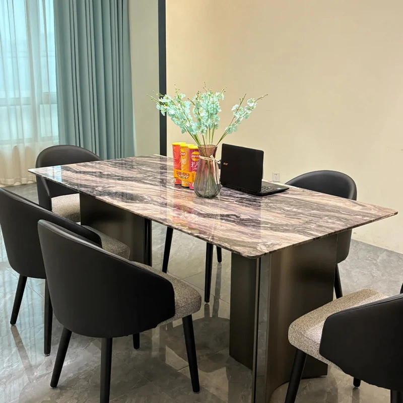 Imported Venetian Brown Natural Marble Dining Table - Elegant Italian Minimalist Luxury Rectangular Stone Table for a Sophisticated Dining Experience
