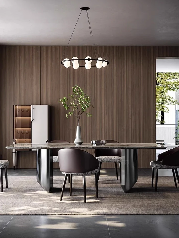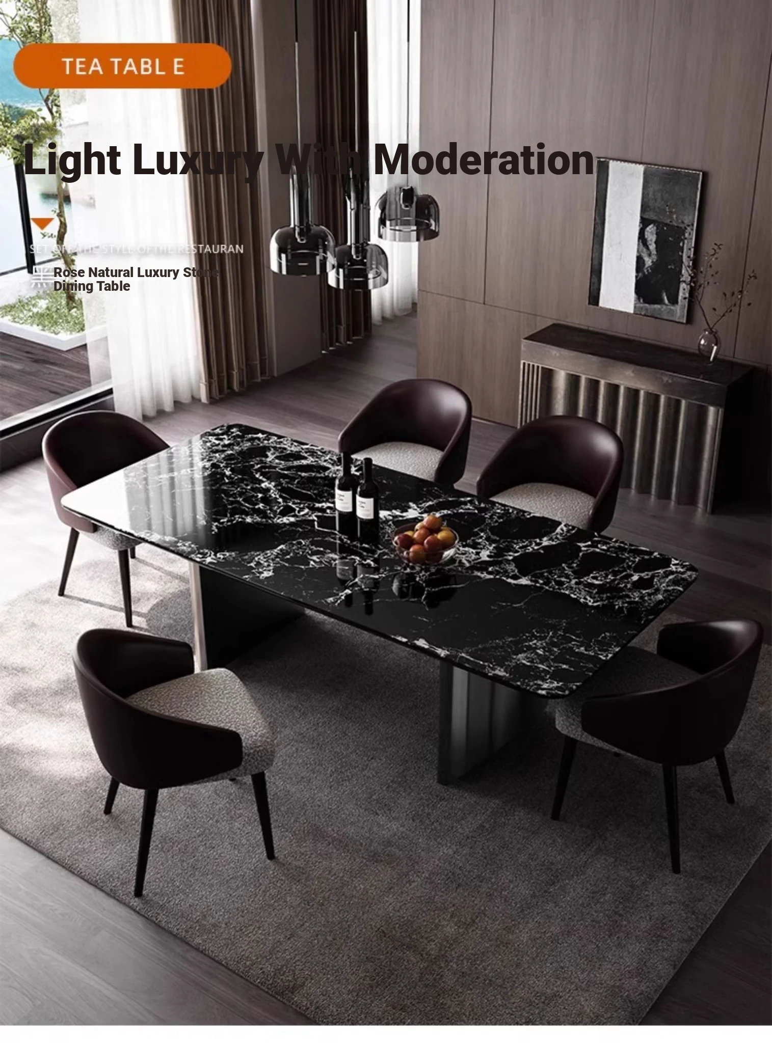 Imported Venetian Brown Natural Marble Rectangular Dining Table - Modern Italian Luxury for Homes and Villas, Elevate Your Dining Experience with Style and Sophistication.