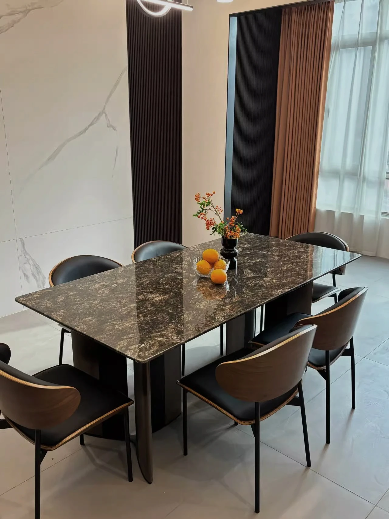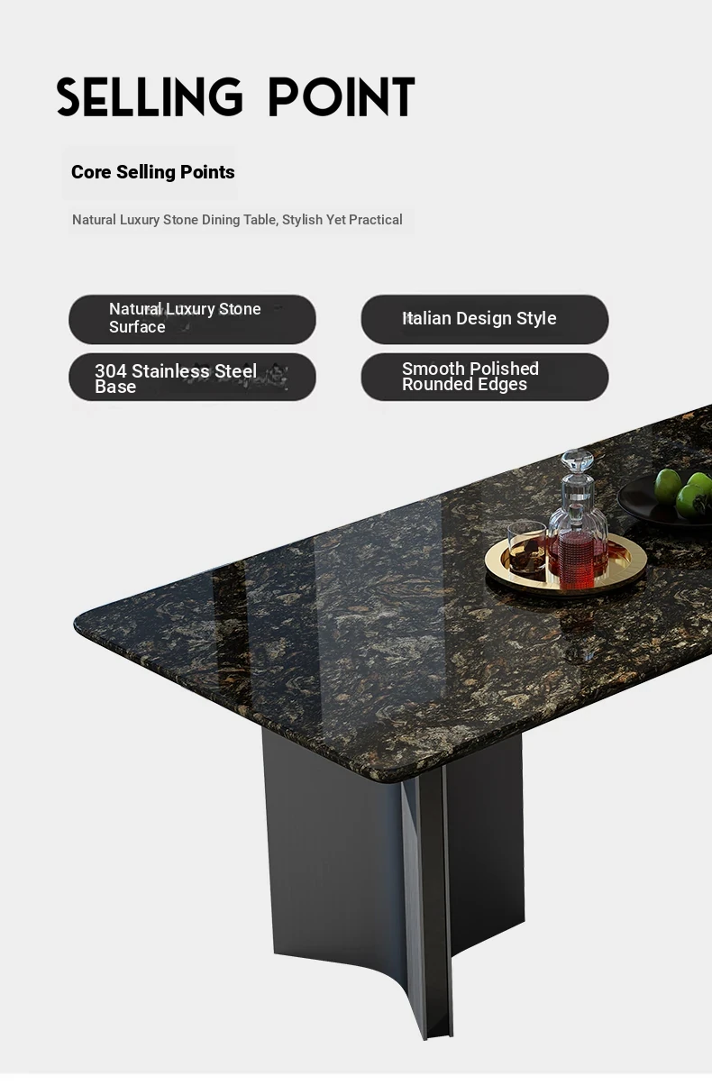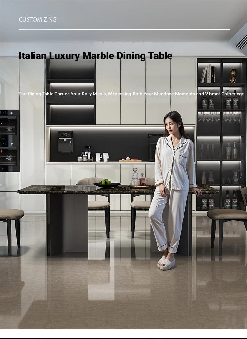 Italian Brazilian Imported Platinum Diamond Natural Marble Luxury Dining Table - Modern High-End Villa Rectangular Dining Table for Home Use