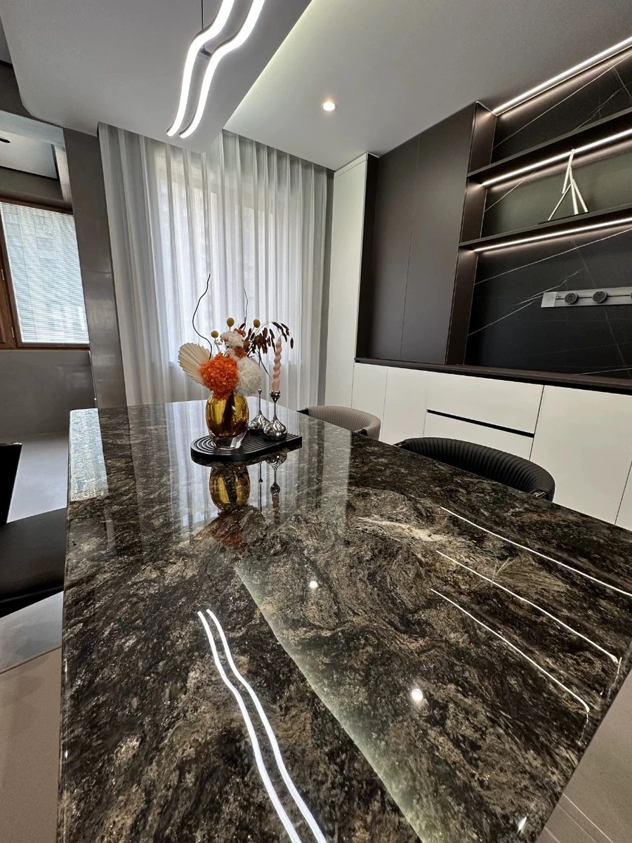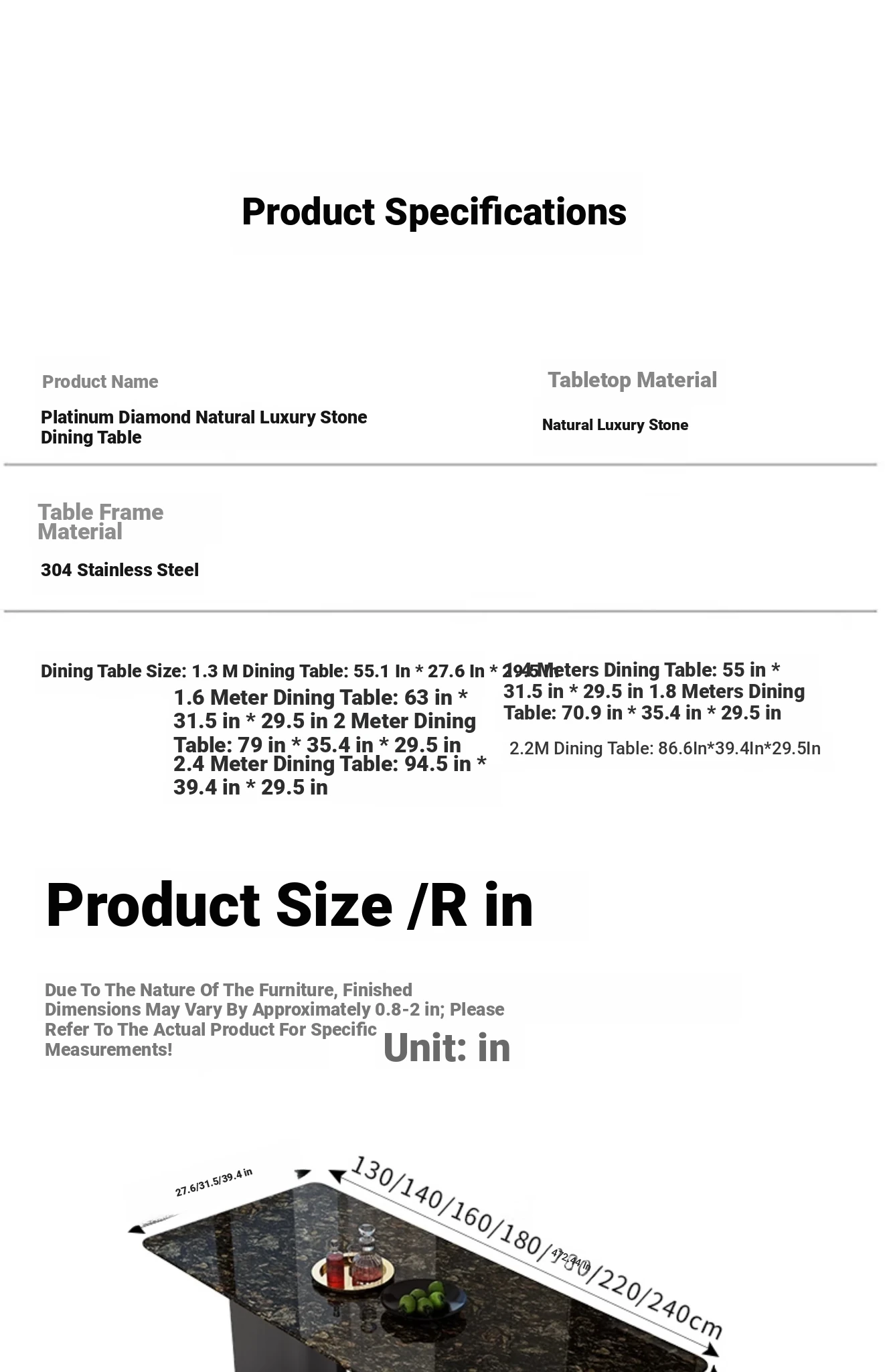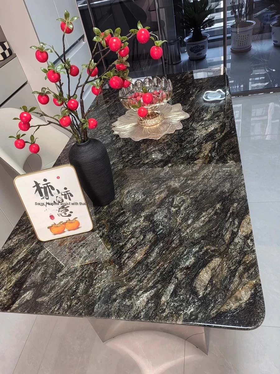 Italian Brazilian Imported Platinum Diamond Natural Marble Luxury Dining Table - Modern High-End Villa Rectangular Dining Table for Home Use