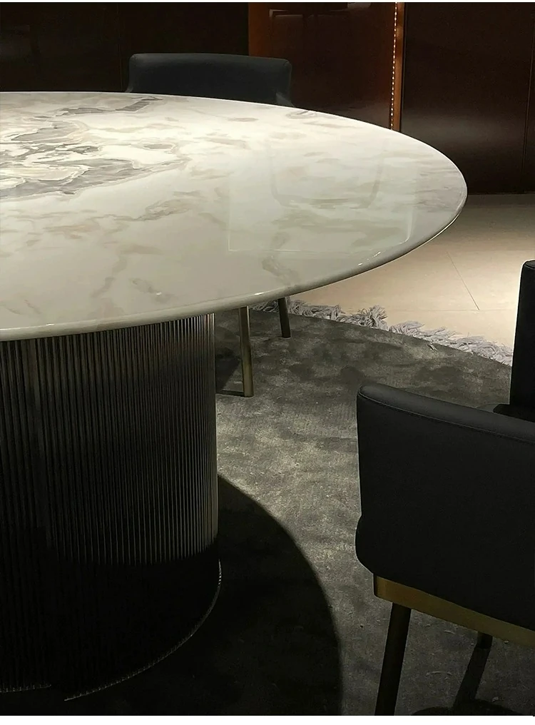 Italian Import natural Fendi white luxury stone dining table/excluding turntable [fake one to ten]]