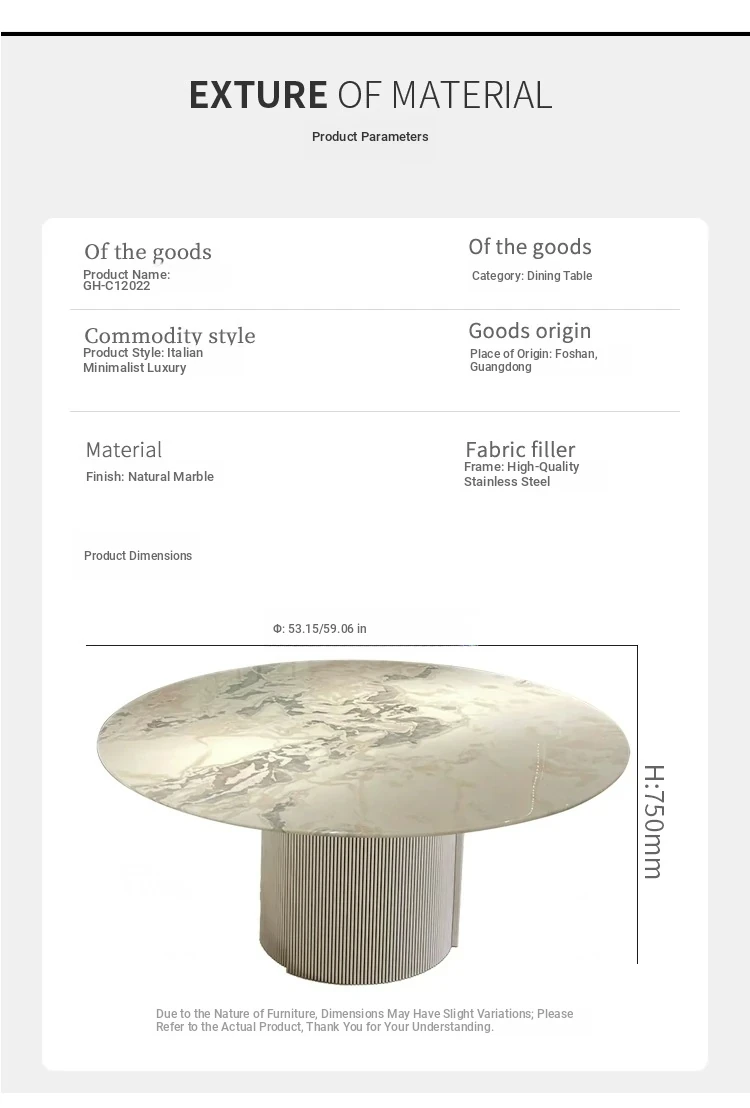 Italian Imported Fendi White Luxury Natural Stone Dining Table - High-End Home Use Picasso Natural Marble Round Table for Elegant Living Spaces