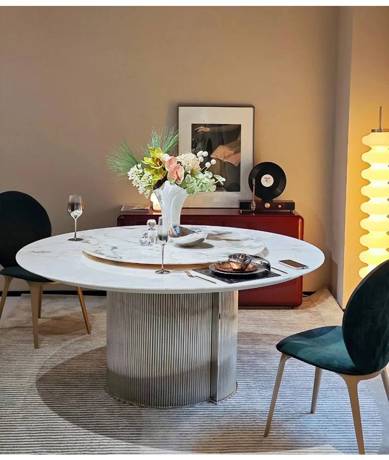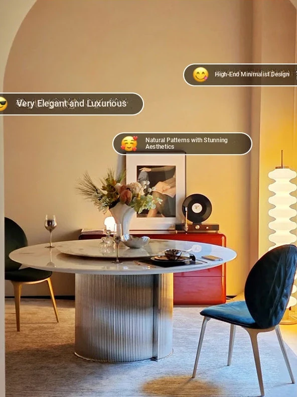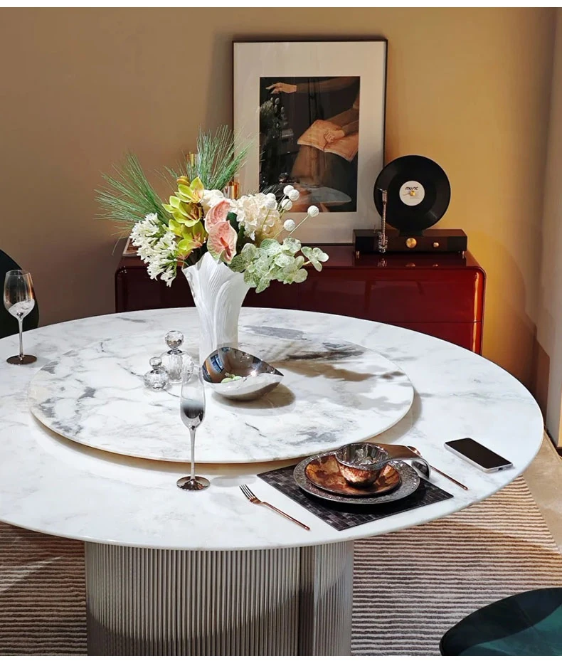 Italian Imported Pure Natural Luxury Stone Fendi White Round Dining Table - Modern Minimalist High-End Design for Villas