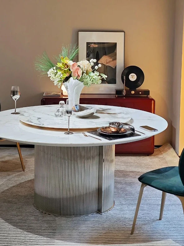 Old mine Fendi White natural luxury stone dining table * turntable [one-to-one selection board]]