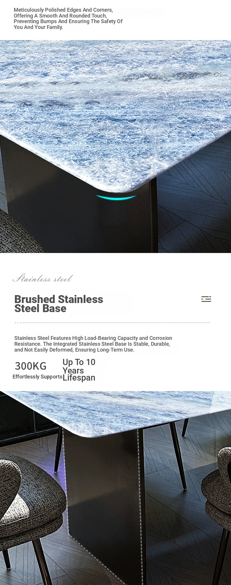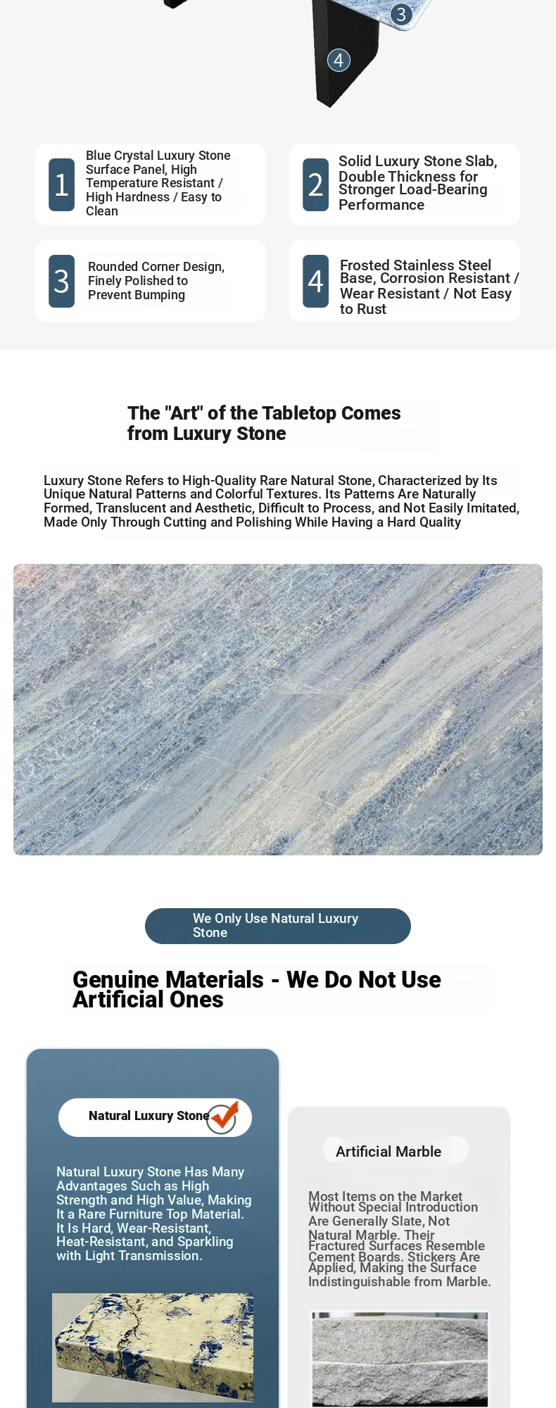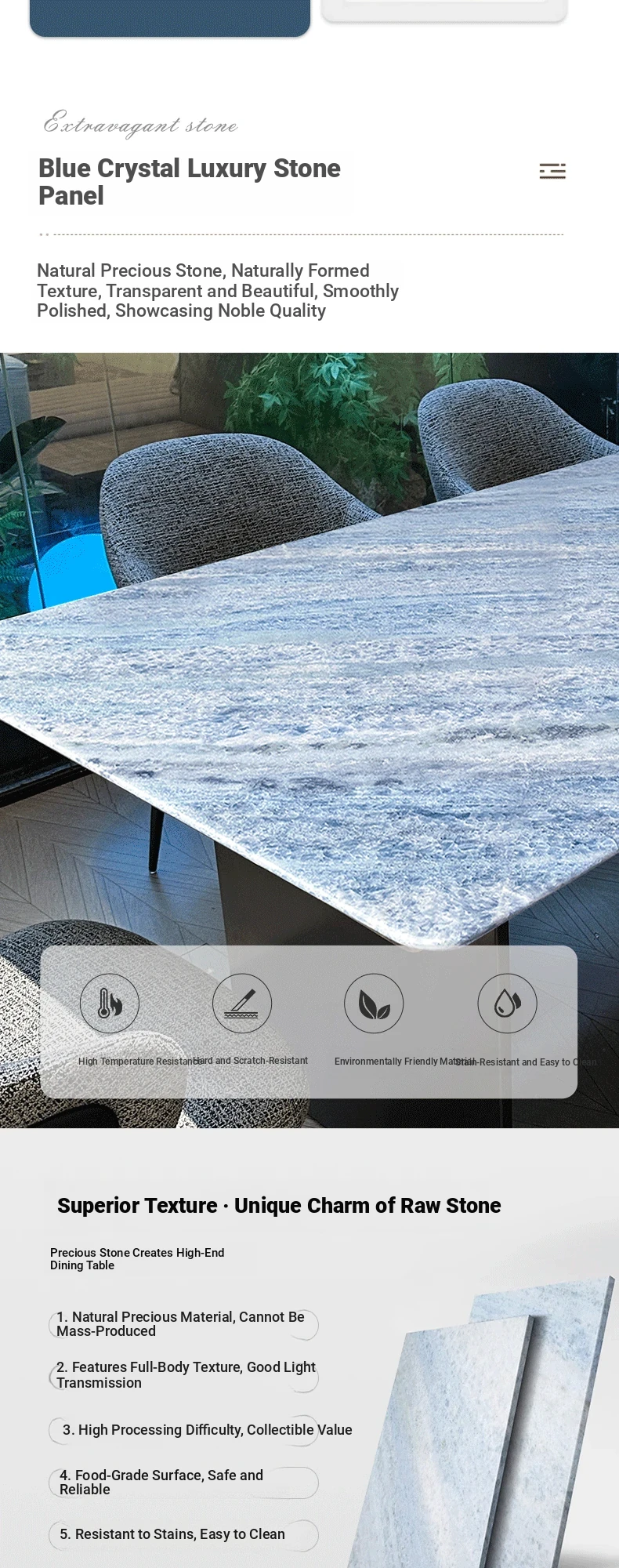 Italian Luxury Blue Crystal Natural Stone Rectangular Dining Table - Modern Minimalist Designer High-End Furniture for Elegant Dining Spaces