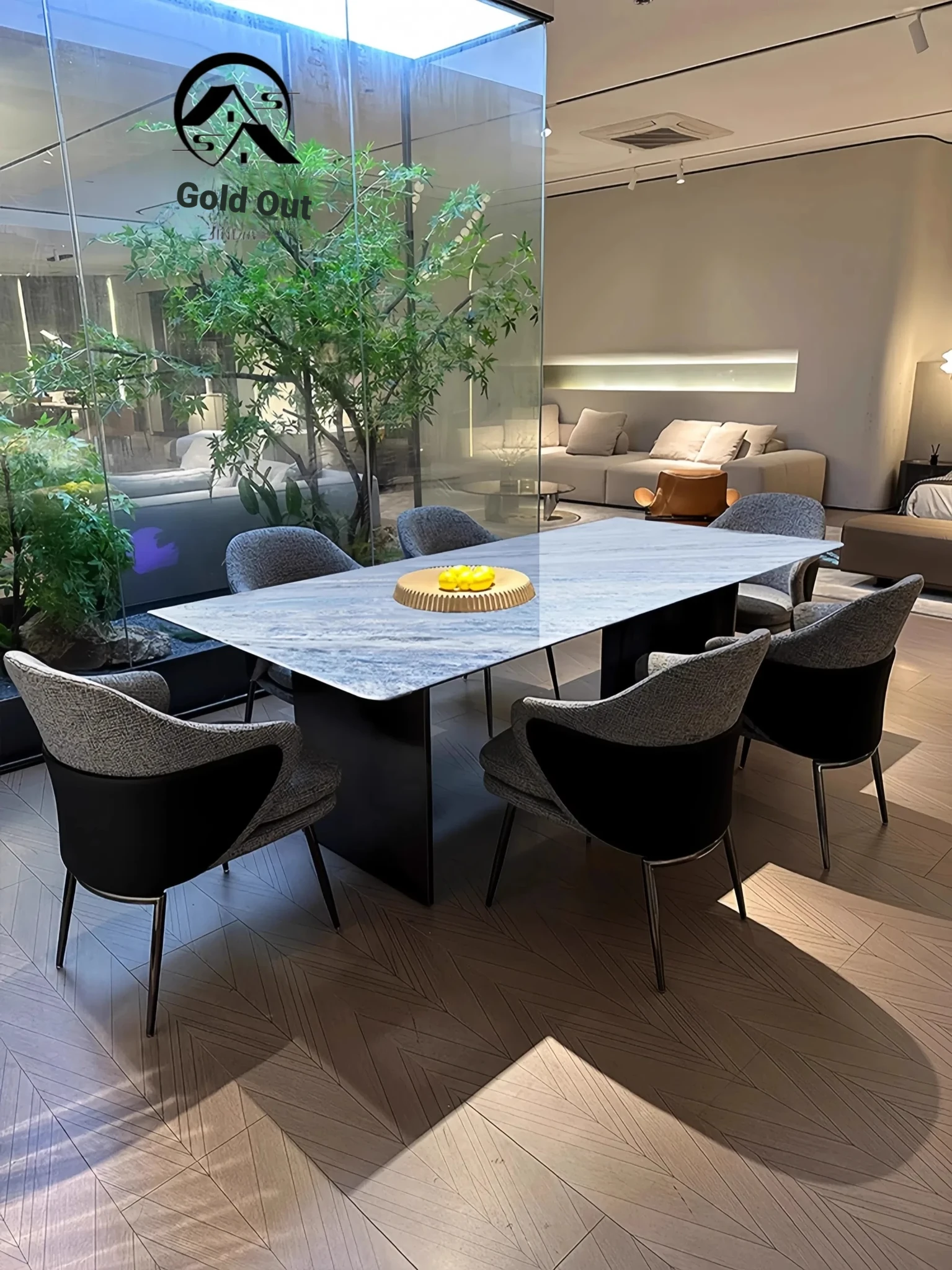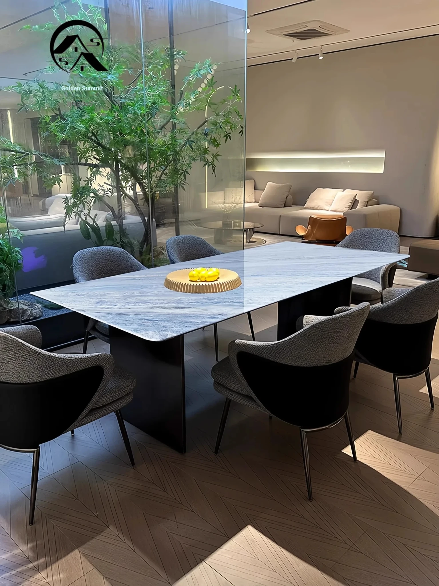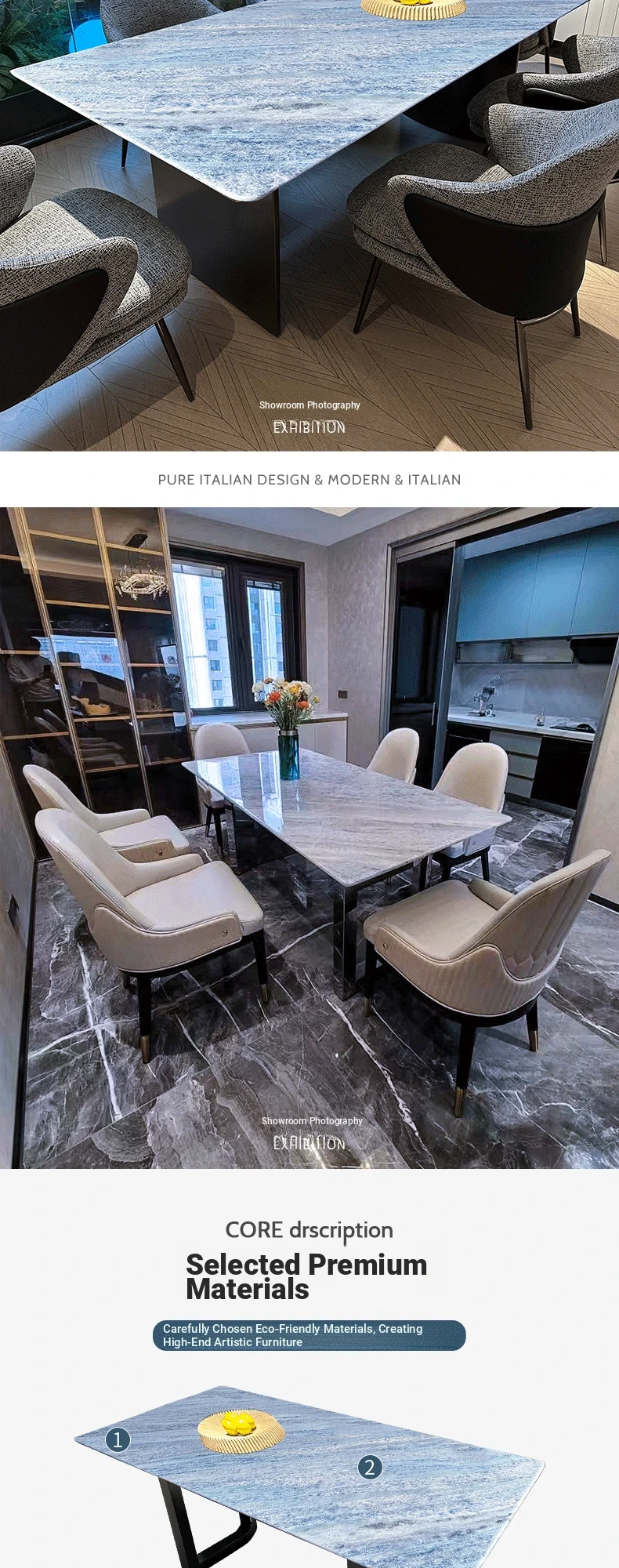 Italian Luxury Blue Crystal Natural Stone Rectangular Dining Table - Modern Minimalist Designer High-End Furniture for Elegant Dining Spaces