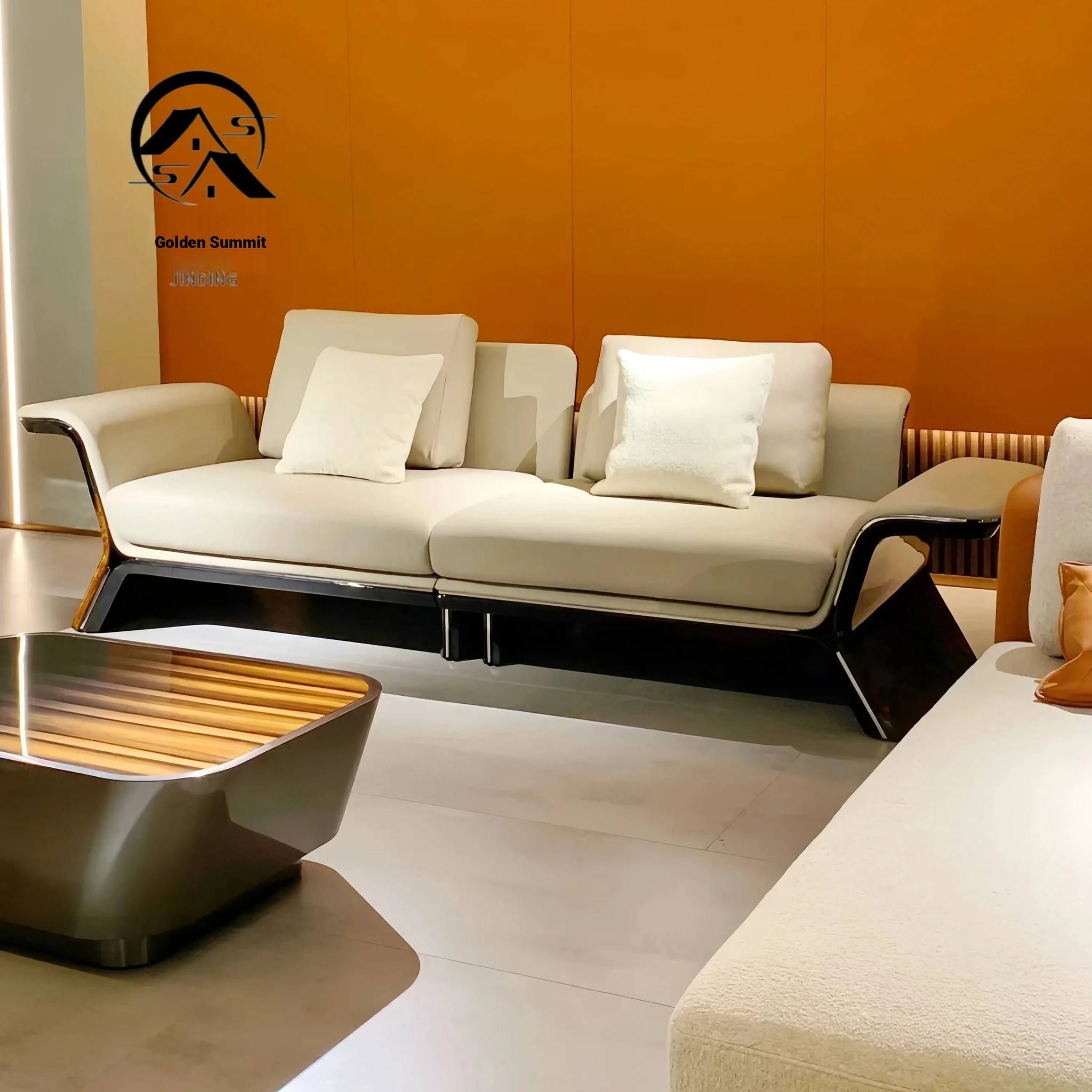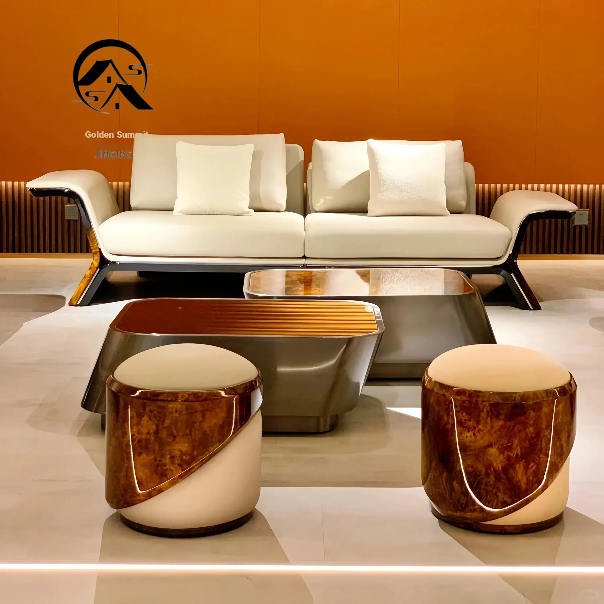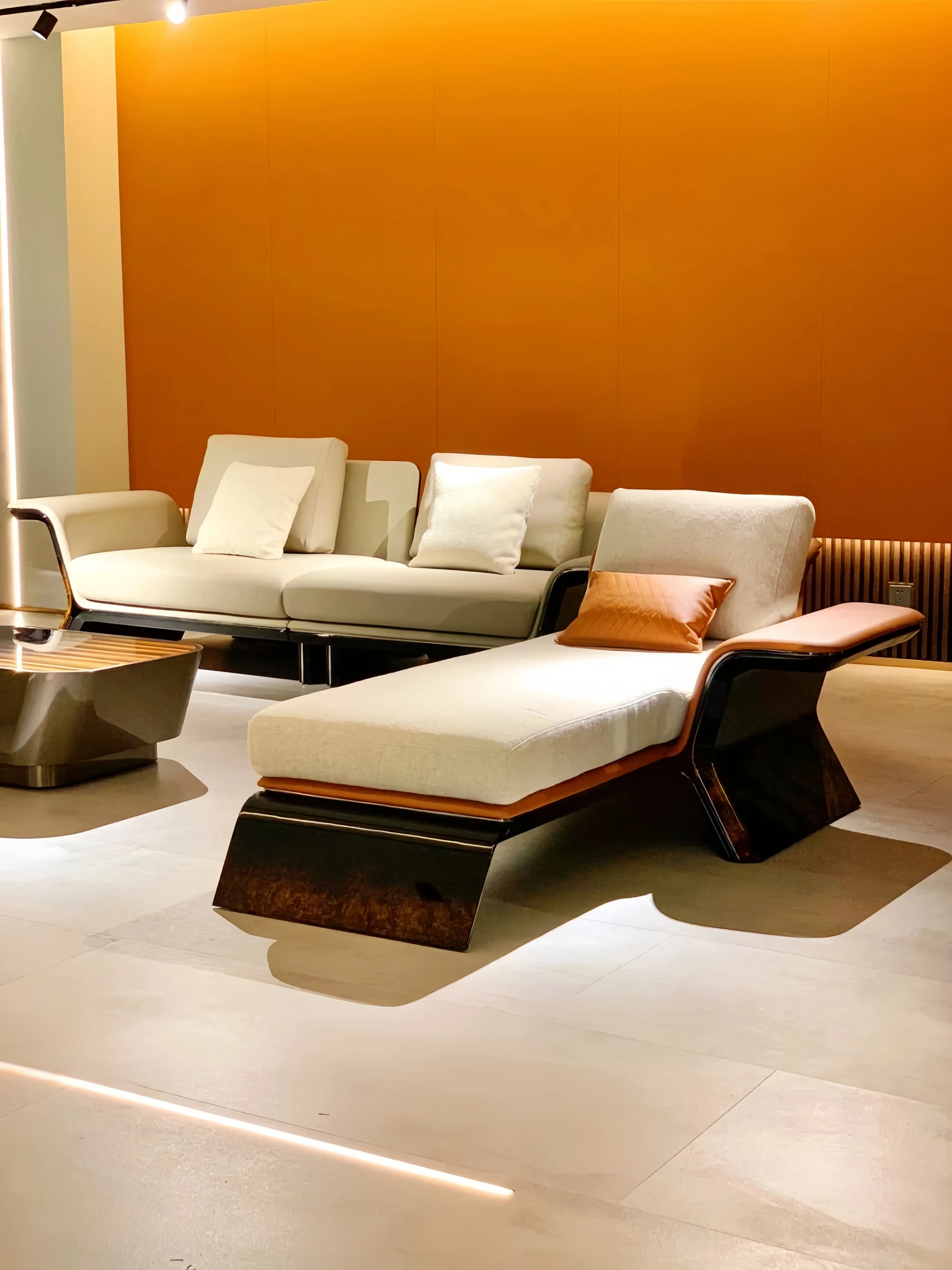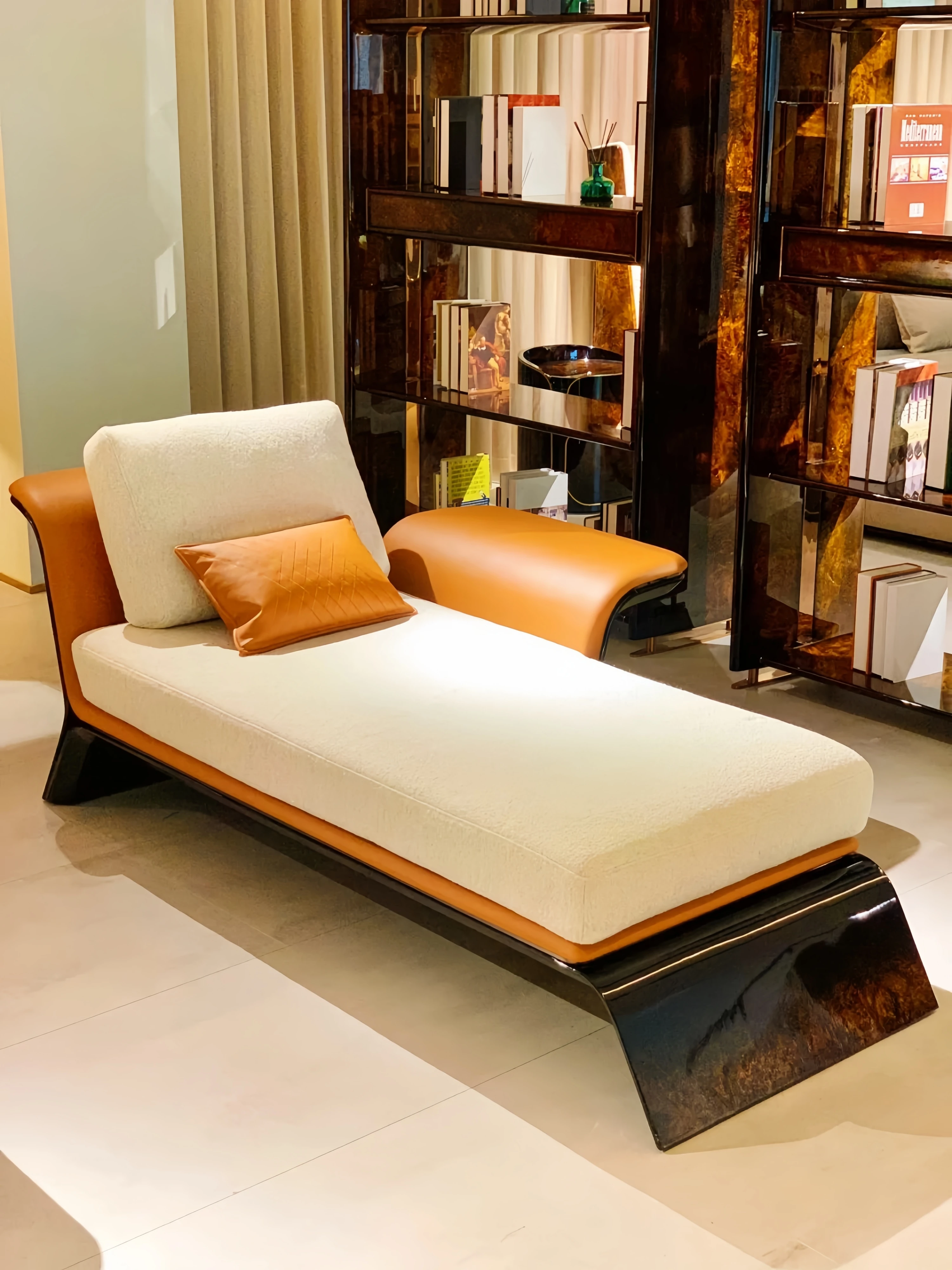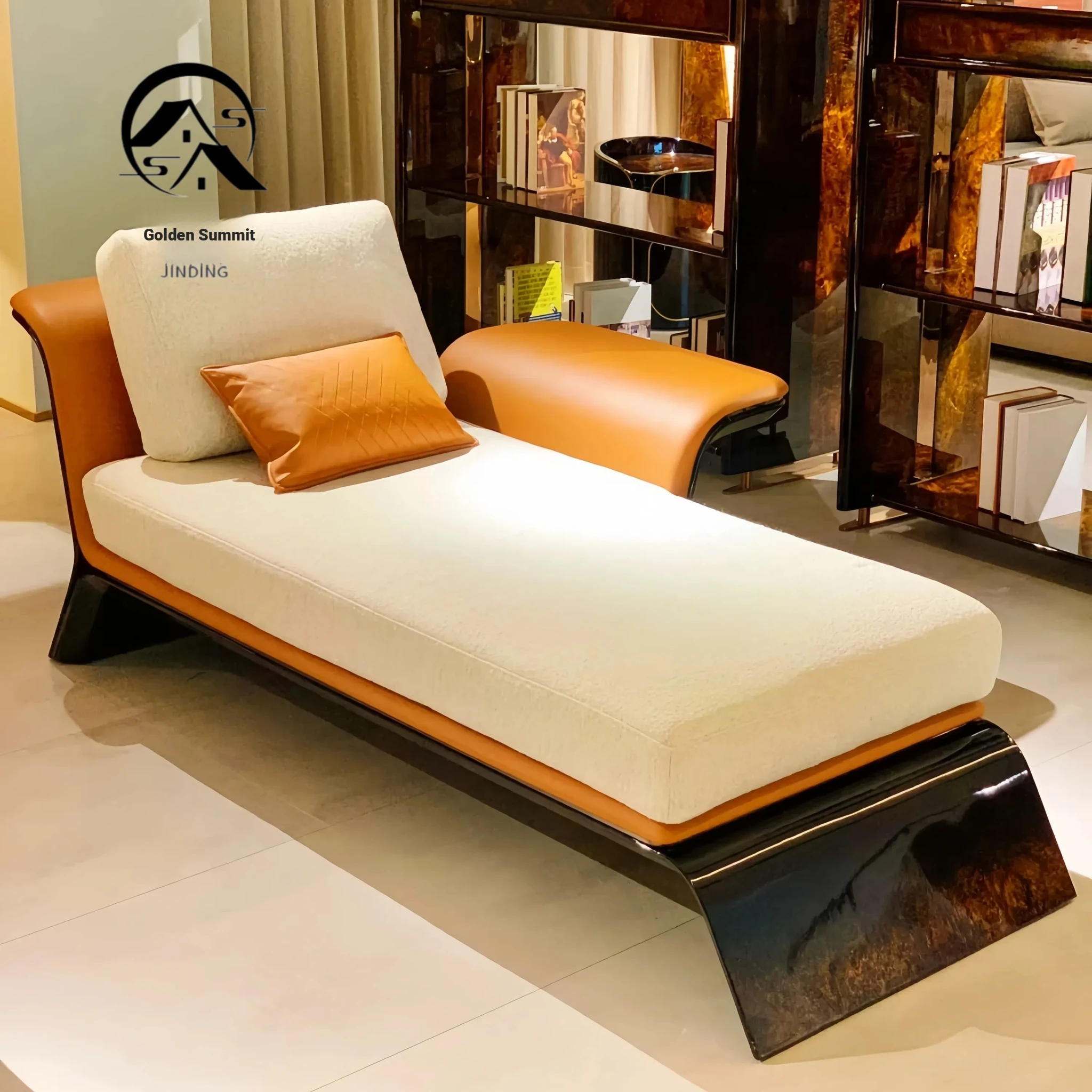 Italian Luxury Genuine Leather Bentley Chaise Lounge Sofa - High-End Vintage Natural Wood Veneer with Piano Lacquer Finish for Upscale Villas