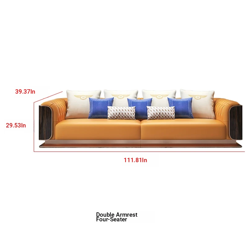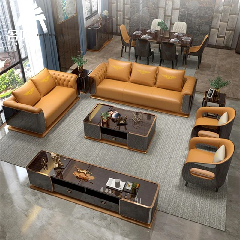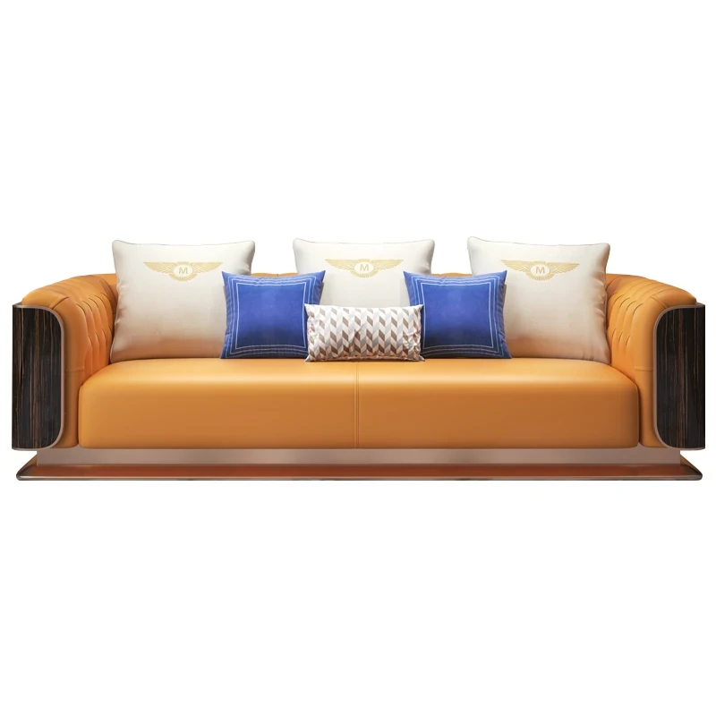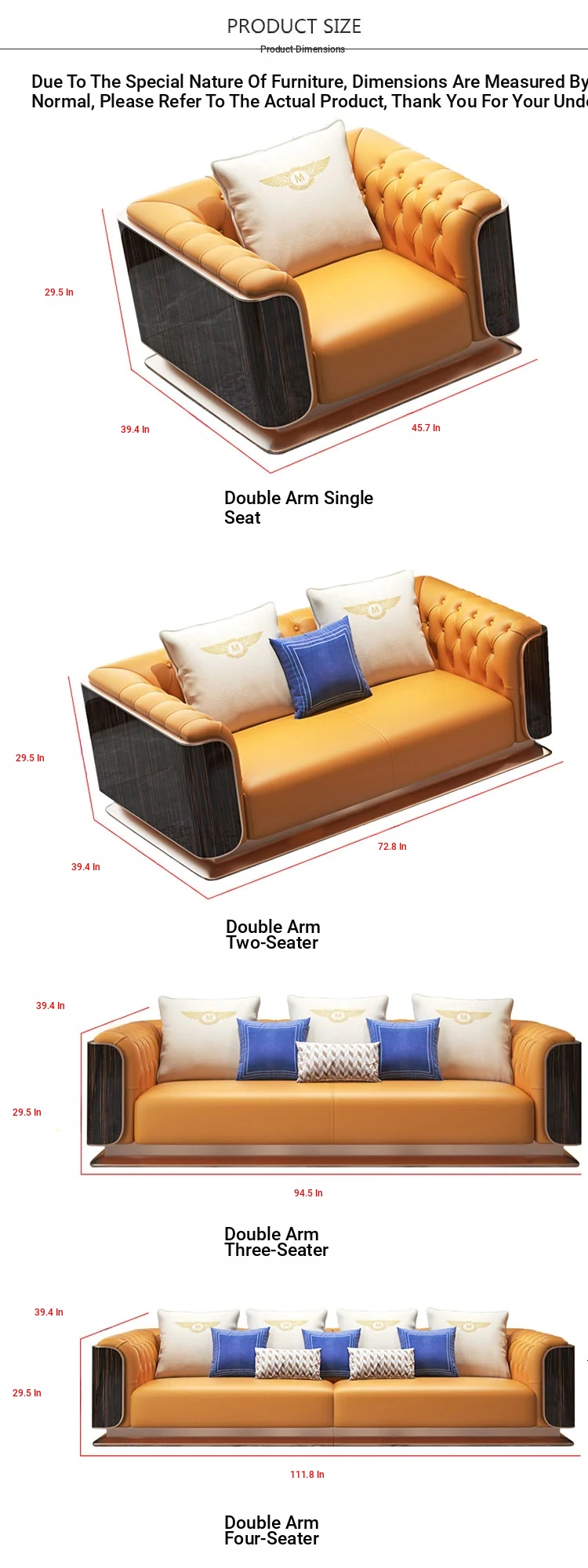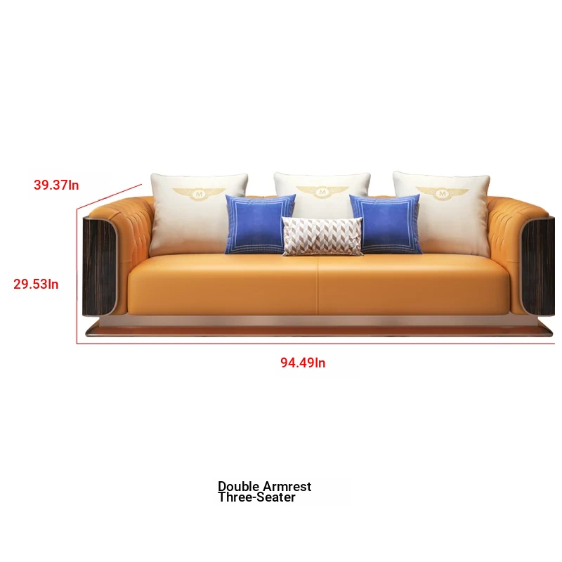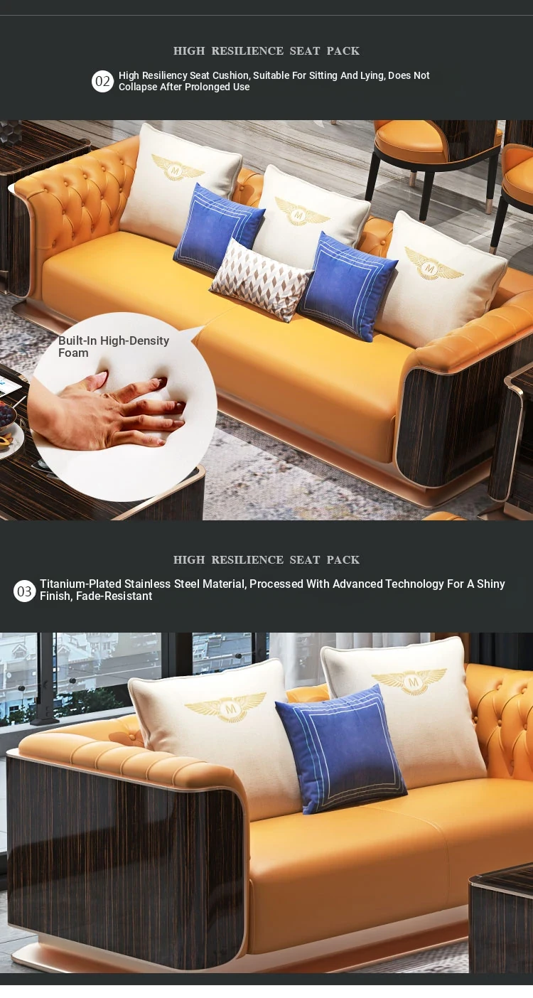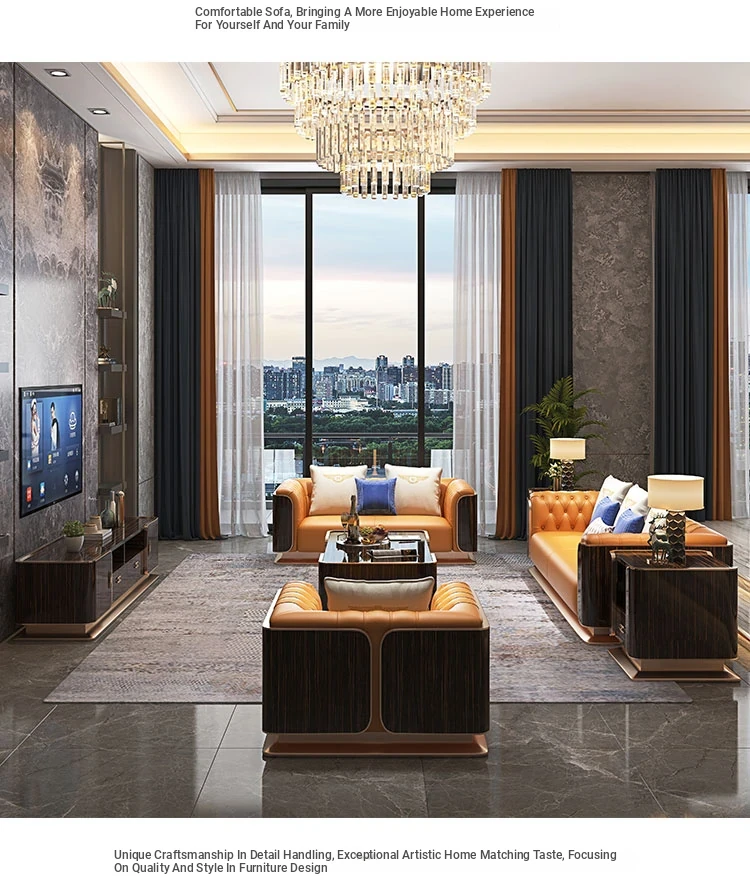 Italian Luxury Genuine Leather Hermes Sofa Set for Spacious Villas - High-End Armani Bentley Solid Wood Furniture