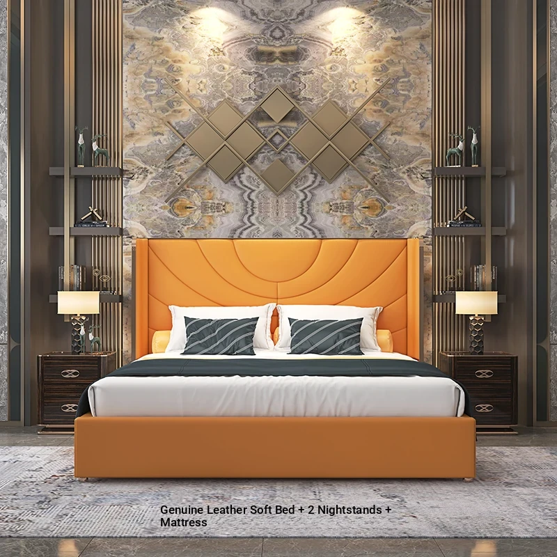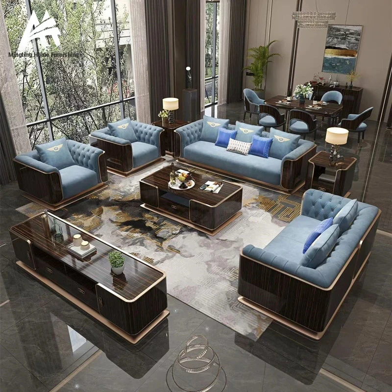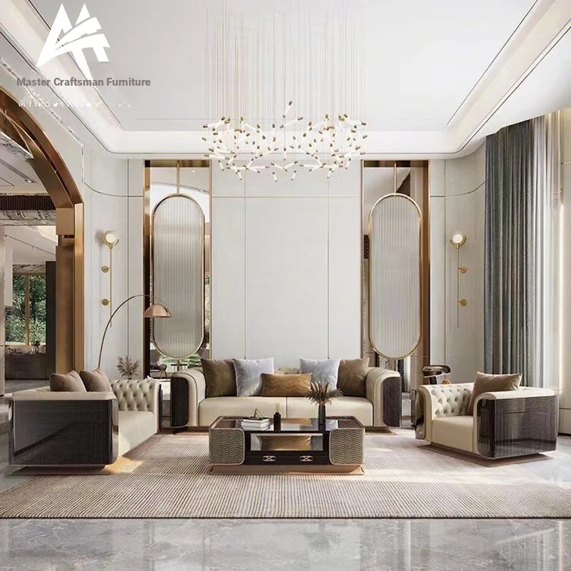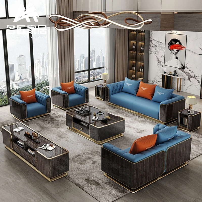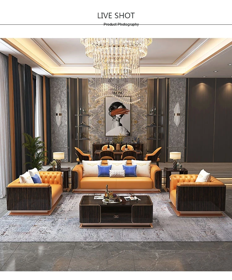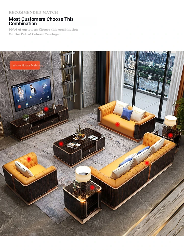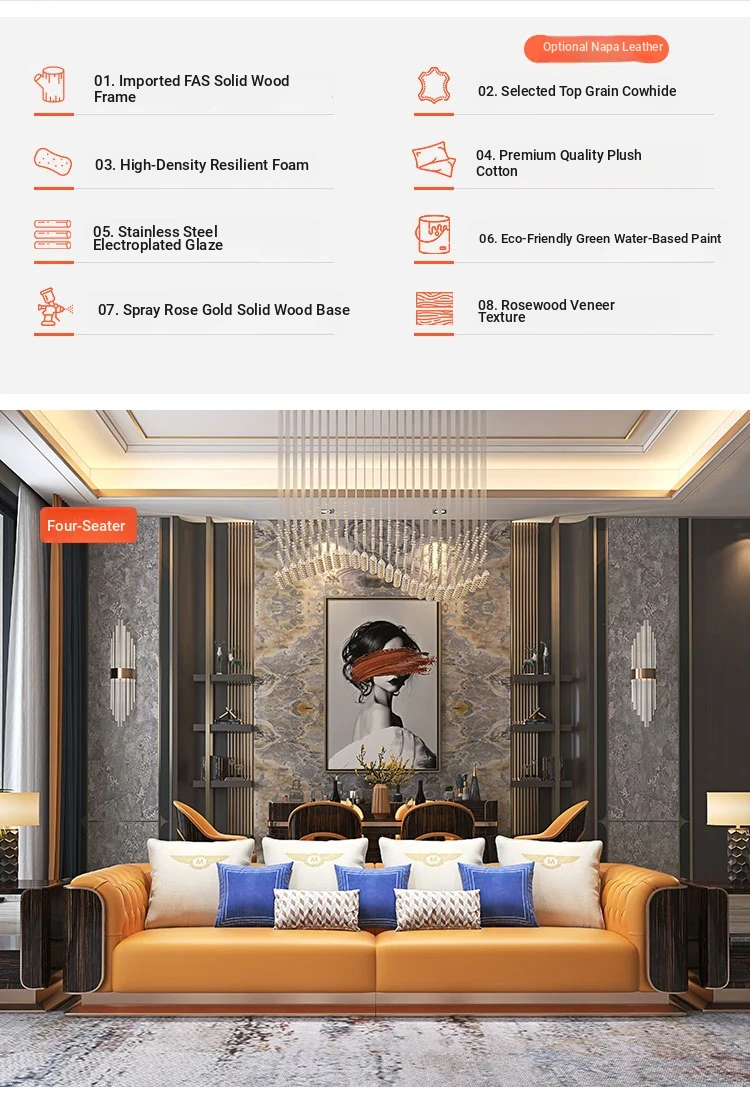 Italian Luxury Genuine Leather Hermes Sofa Set for Spacious Villas - High-End Armani Bentley Solid Wood Furniture