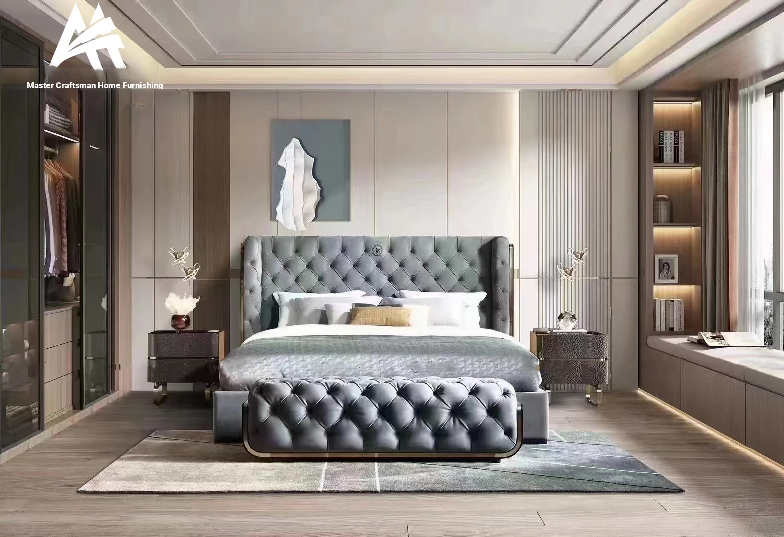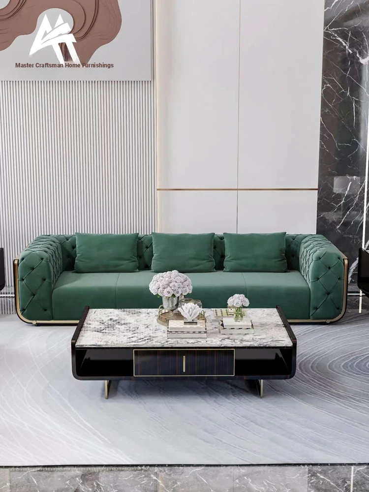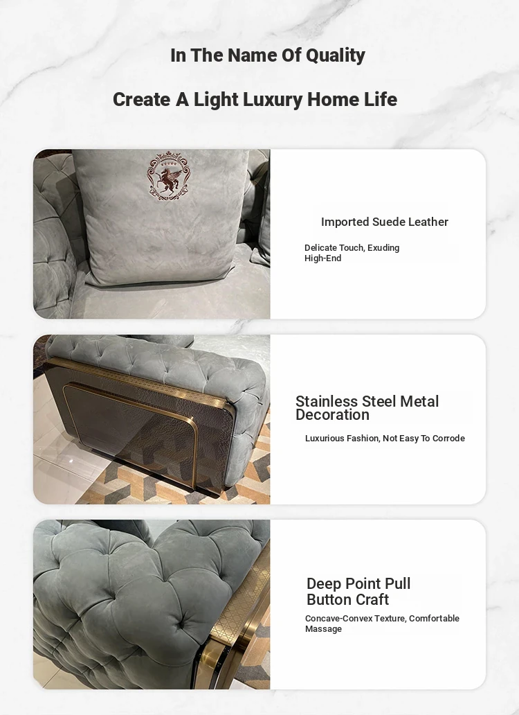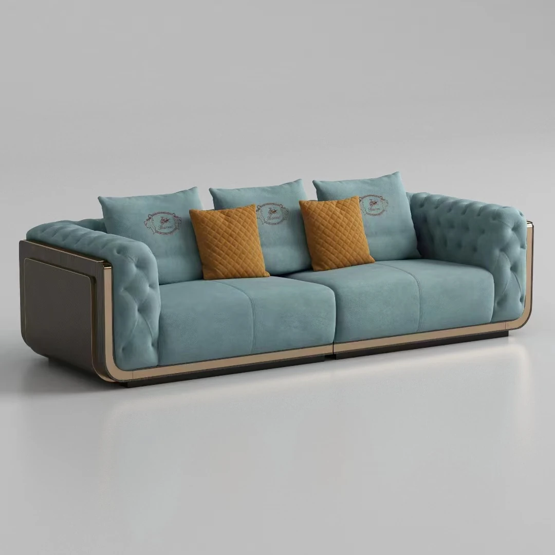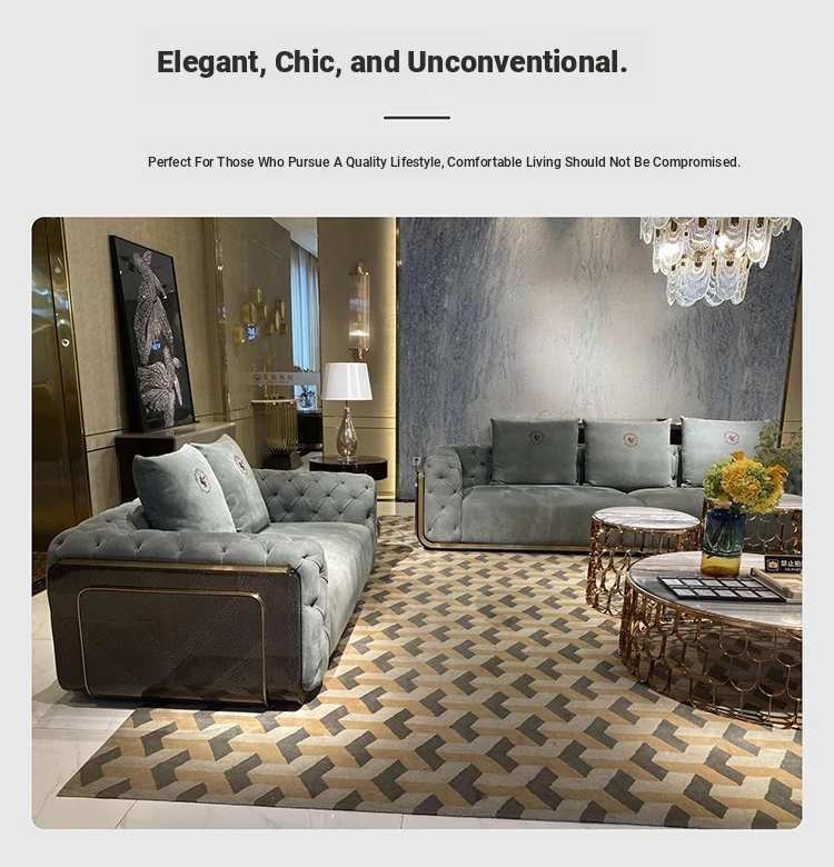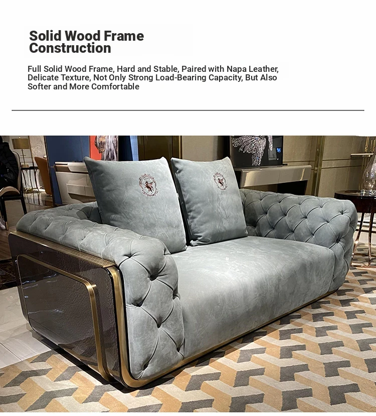 Italian Luxury Genuine Leather Sofa - Modern Minimalist Design for Upscale Villas and Spacious Apartments, Featuring Elegant Hong Kong Style Solid Wood Furniture
