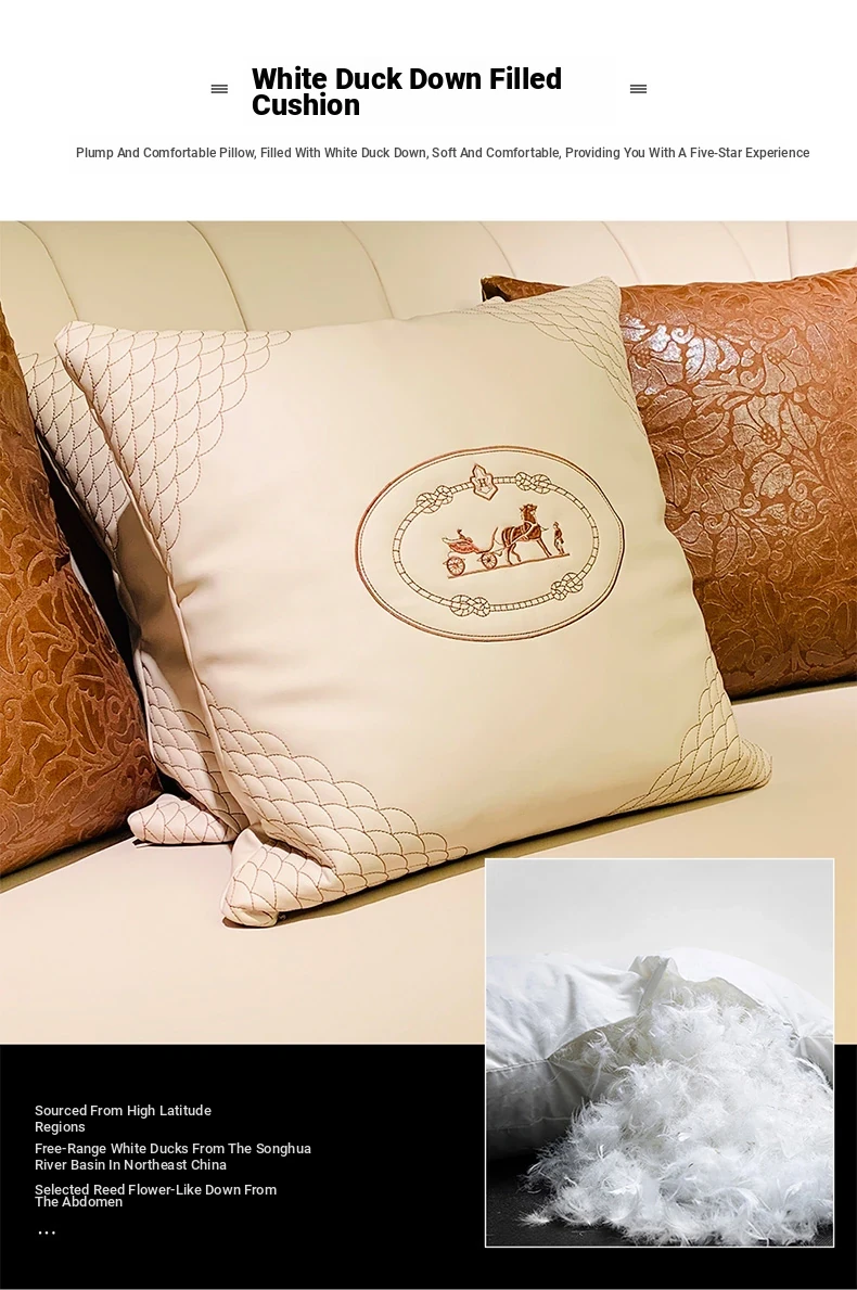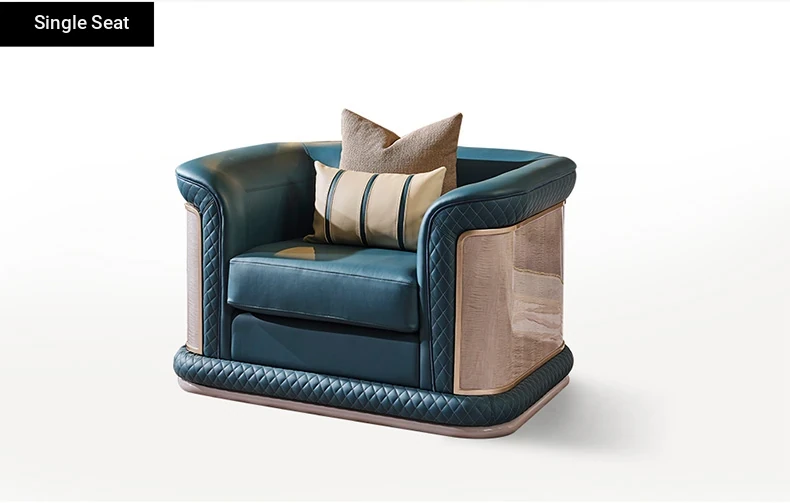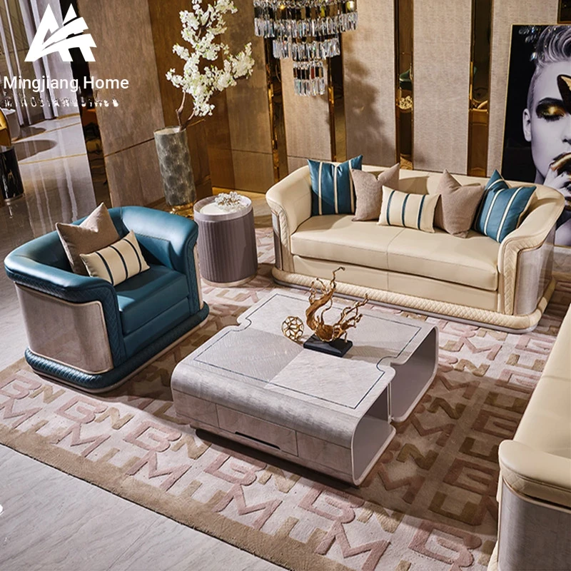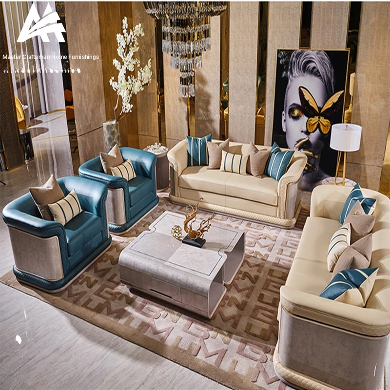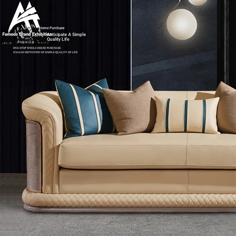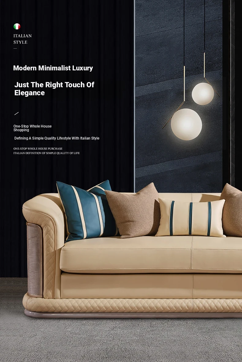 Italian Luxury Genuine Leather Sofa Set - Post-Modern Minimalist Design with Elegant Button Detailing for Luxurious Villa Living Rooms - Complete Solid Wood Furniture Collection