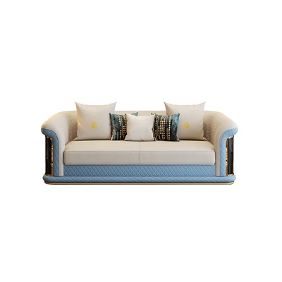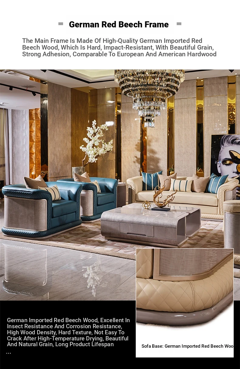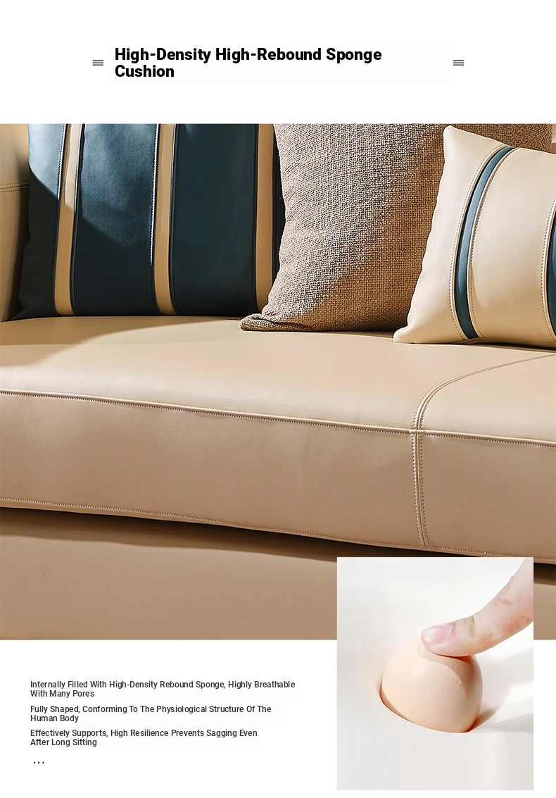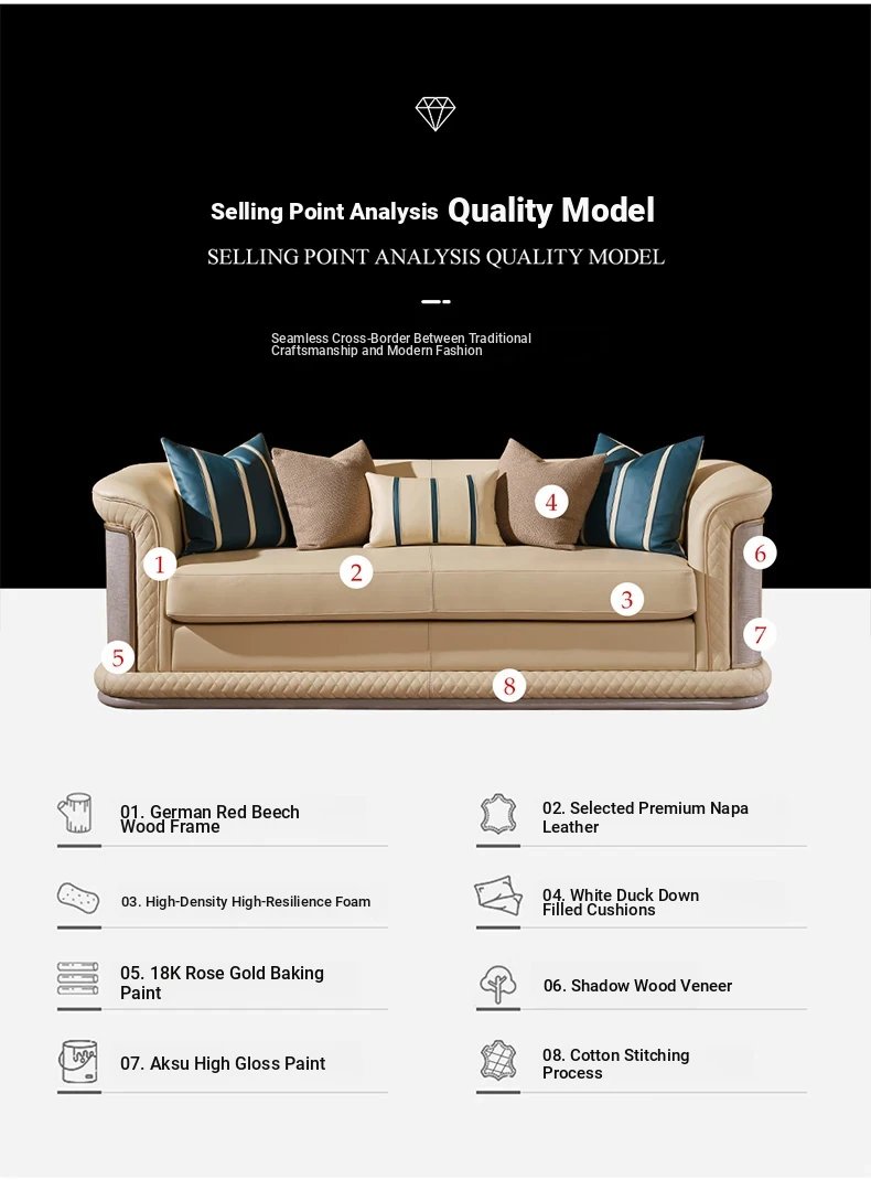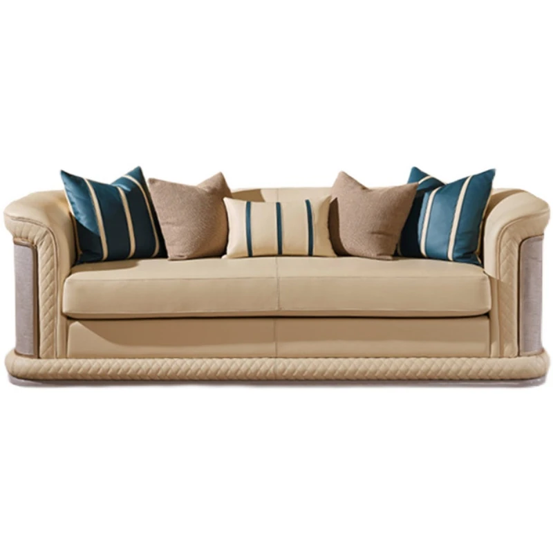 Italian Luxury Genuine Leather Sofa Set - Post-Modern Minimalist Design with Elegant Button Detailing for Luxurious Villa Living Rooms - Complete Solid Wood Furniture Collection