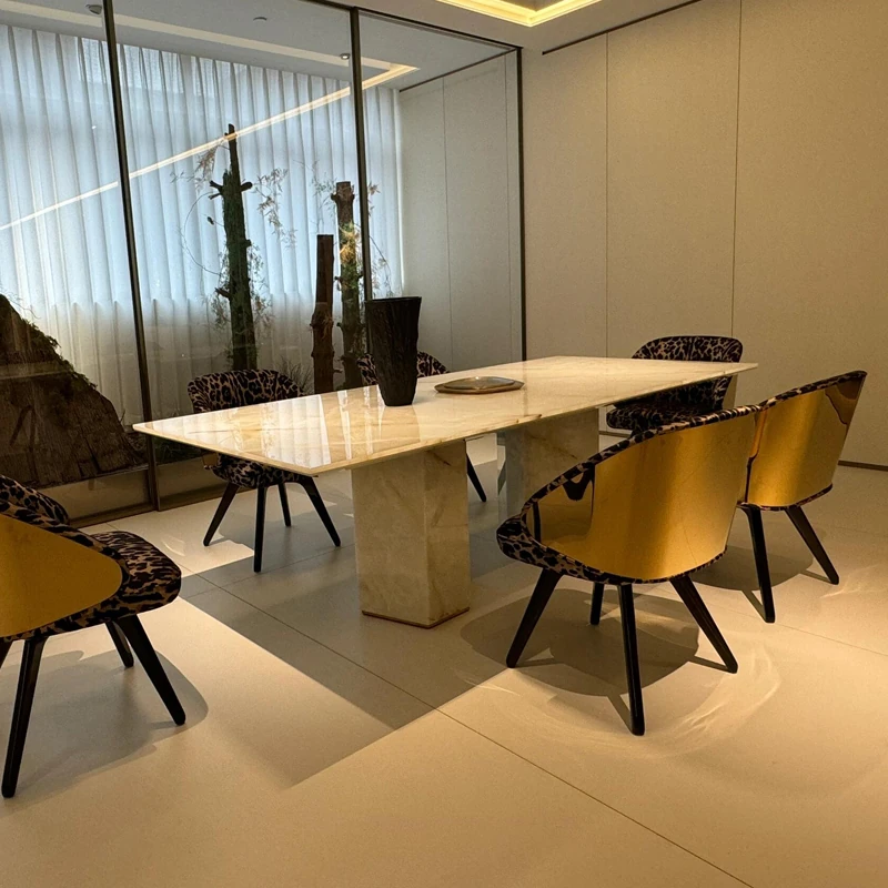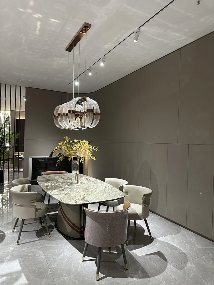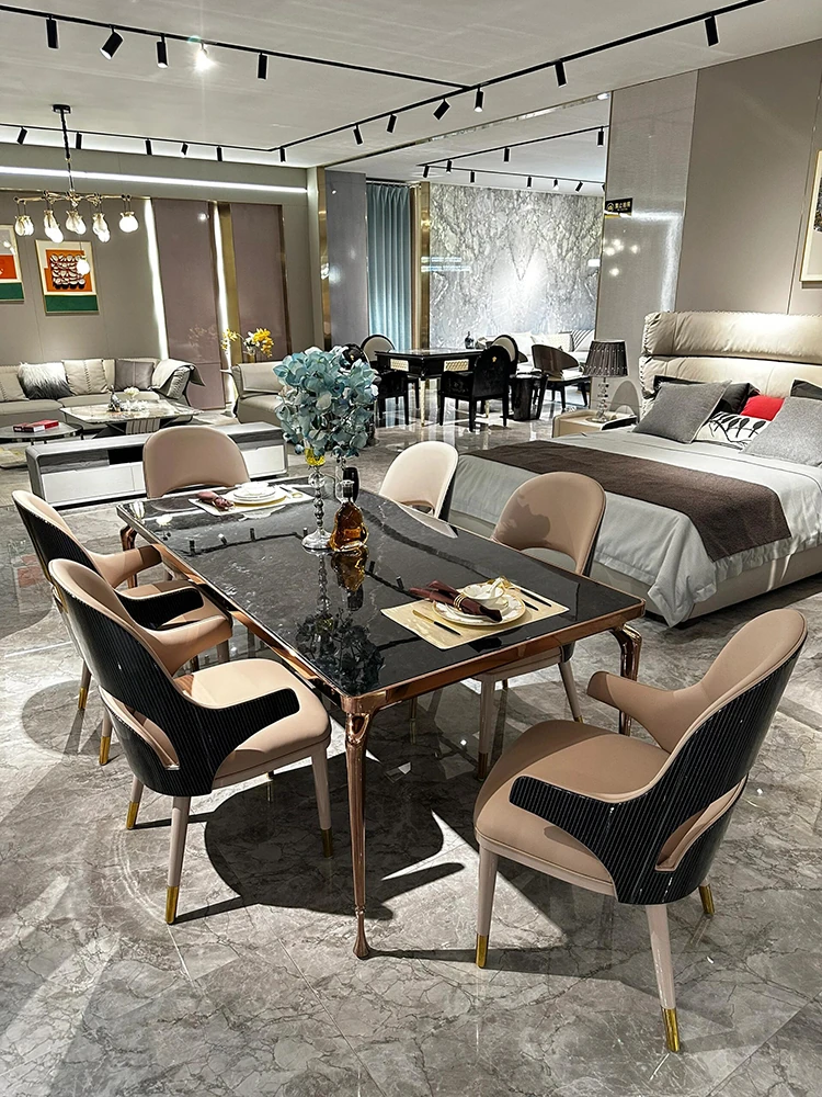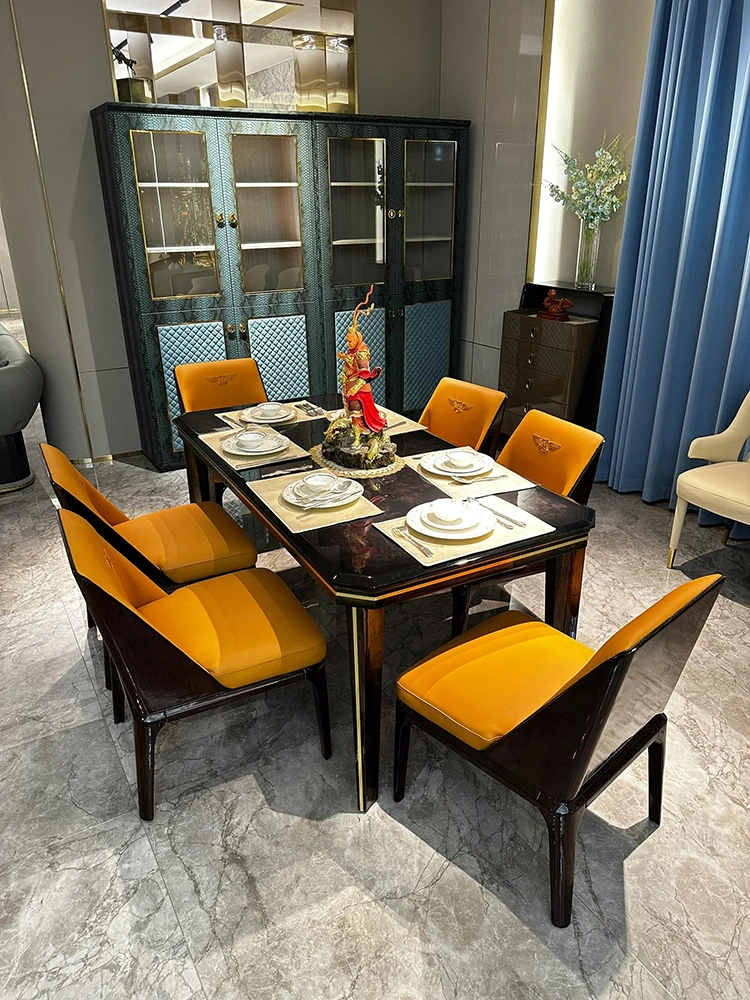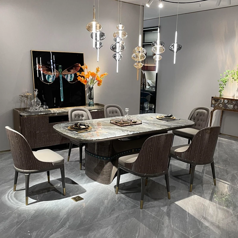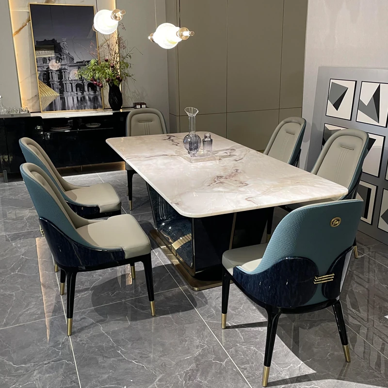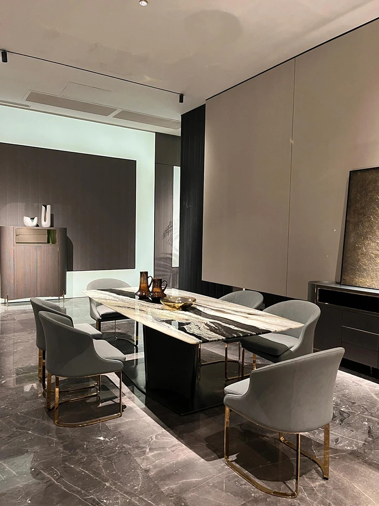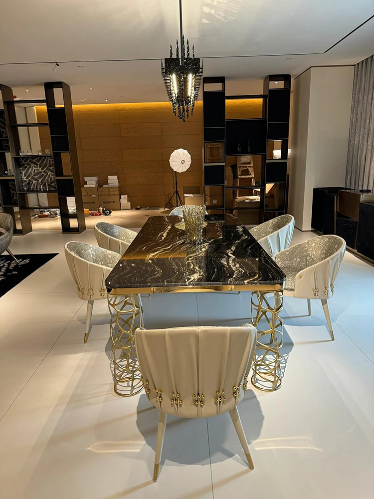 Italian Luxury Marble Dining Table - Designer Rectangular Table with 6 Chairs for Villas and High-End Homes, Perfect for Chic Dining Experiences.