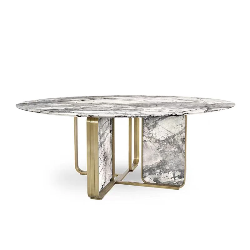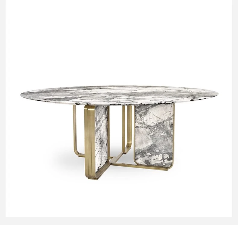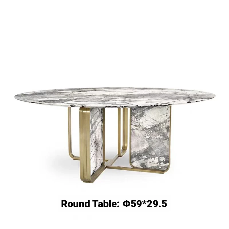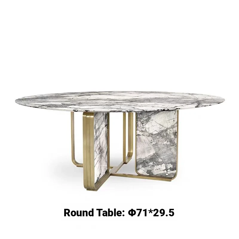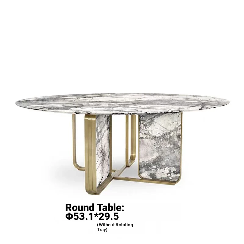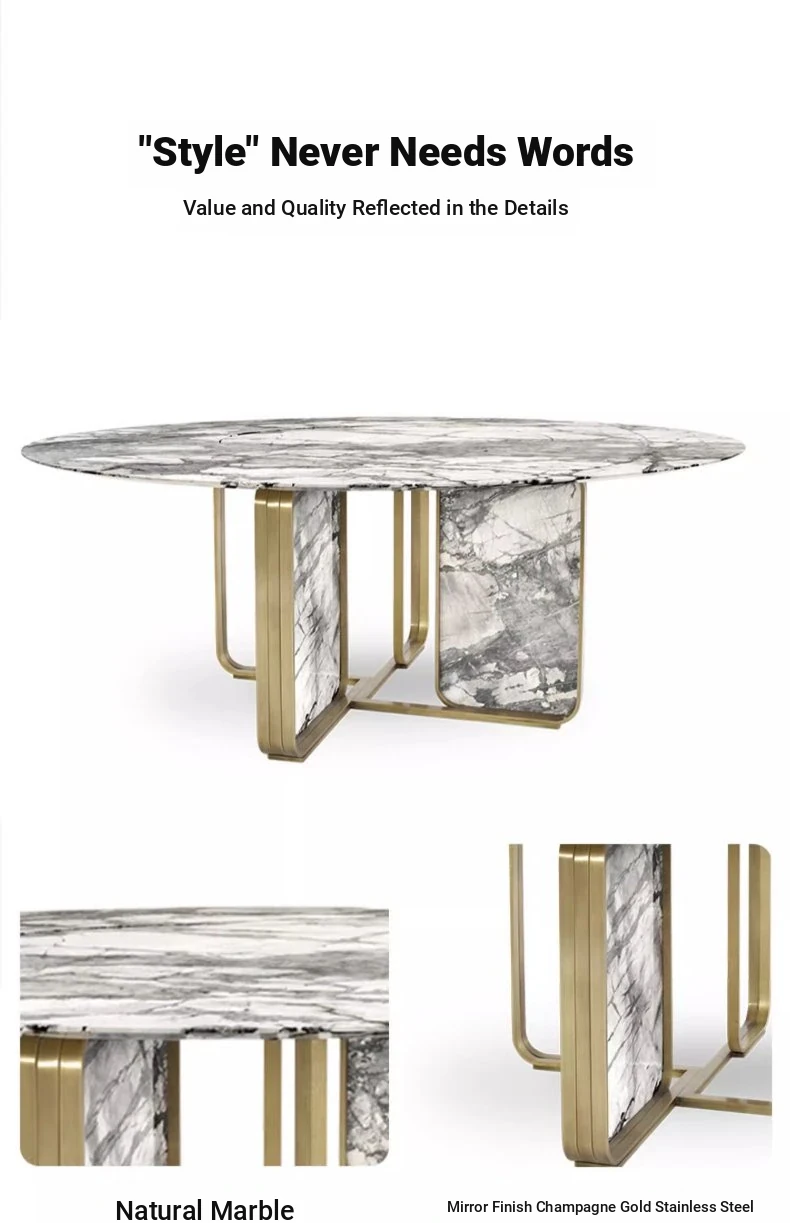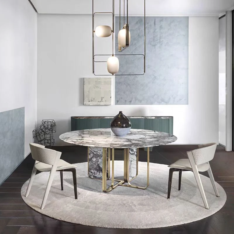 Italian Luxury Marble Round Dining Table and Chair Set – Designer High-End Rotating Stone Table for Small Spaces, Perfect for Modern Homes