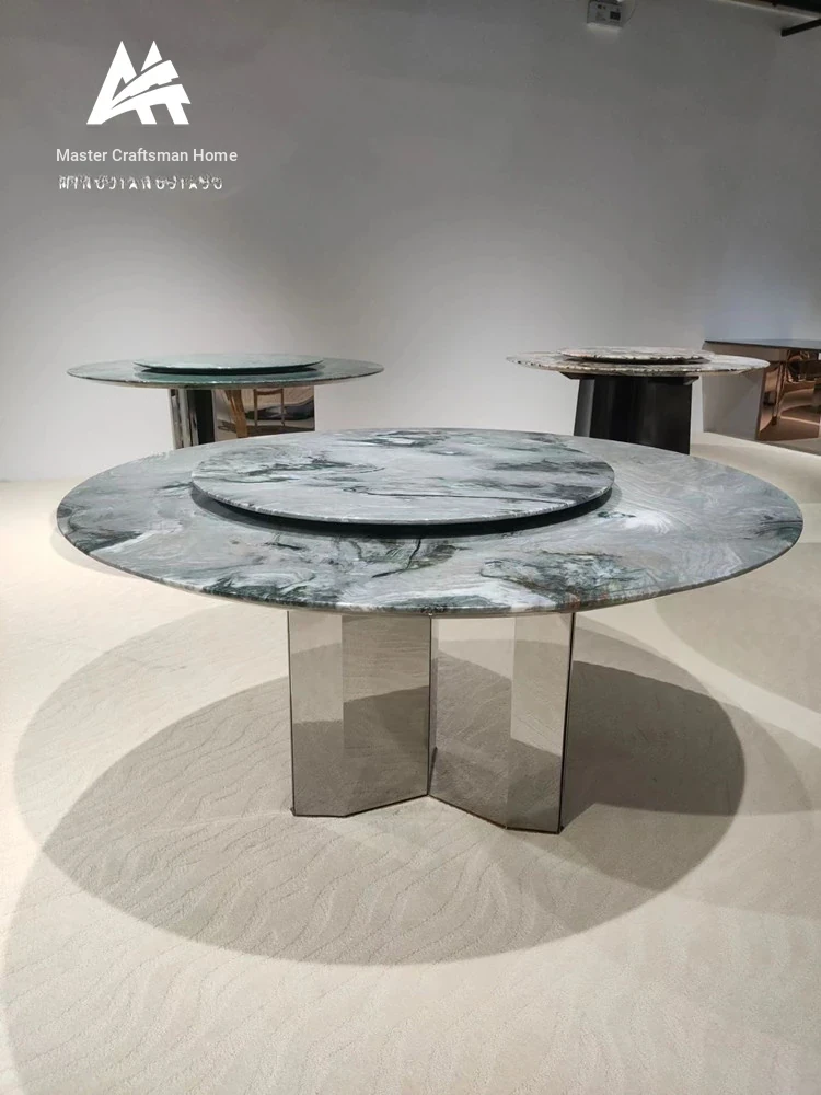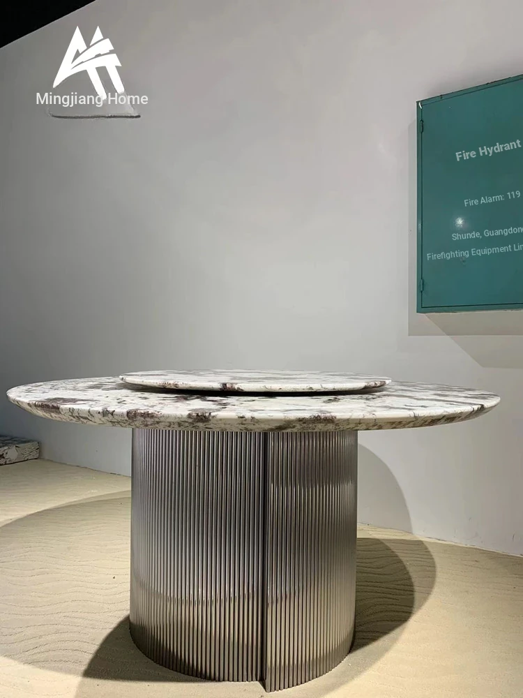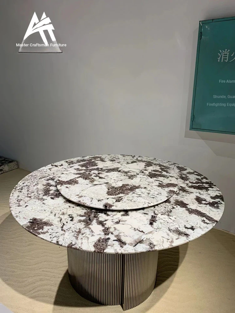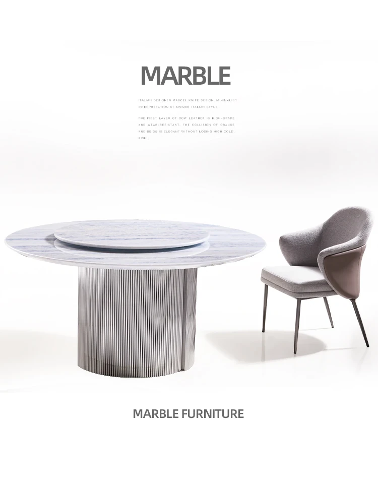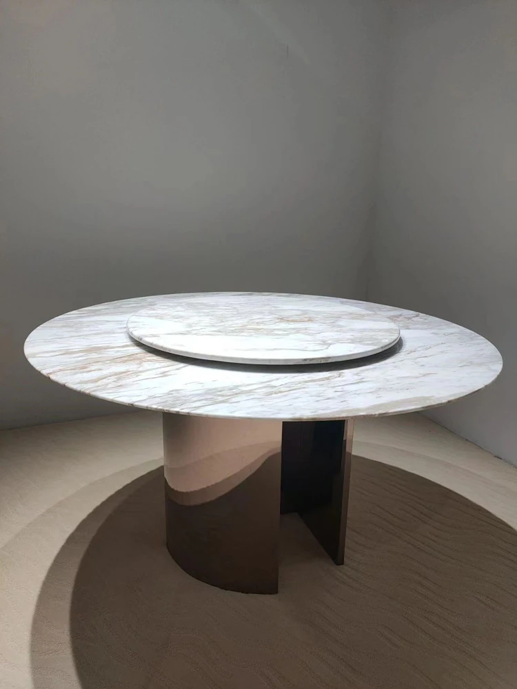 Italian Luxury Marble Round Dining Table - Modern Minimalist Design for Elegant Dining, Perfect for Villas and High-End Spaces, Inspired by Louvre Style