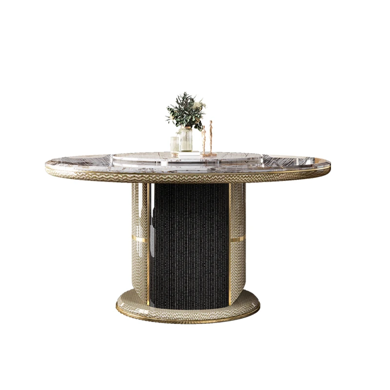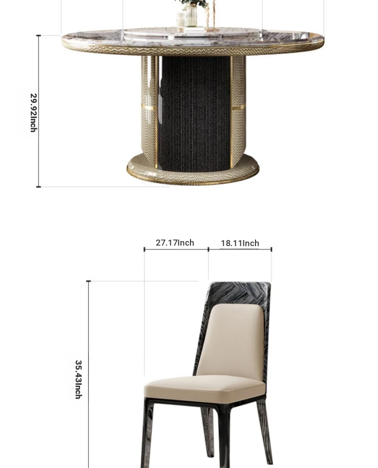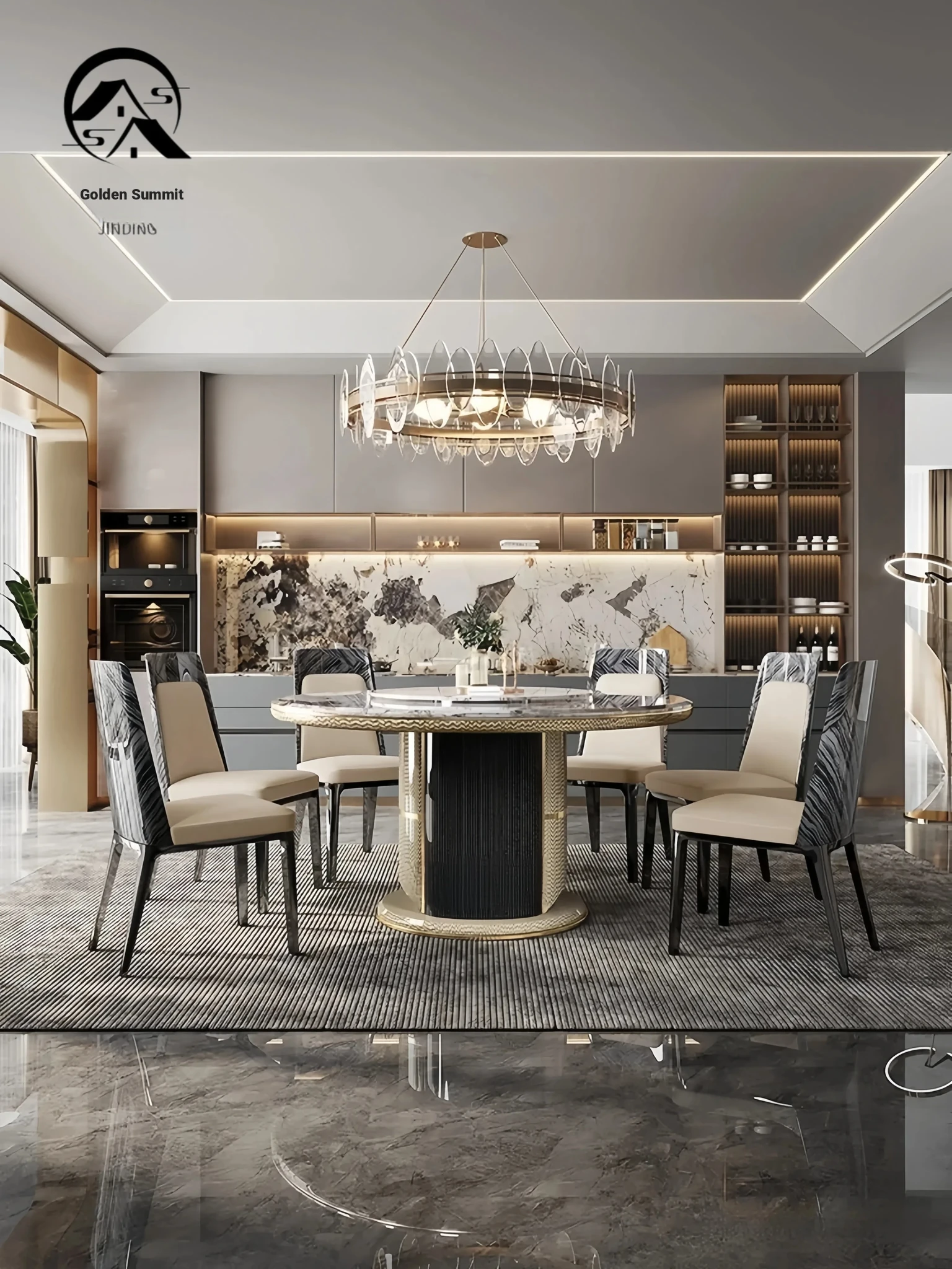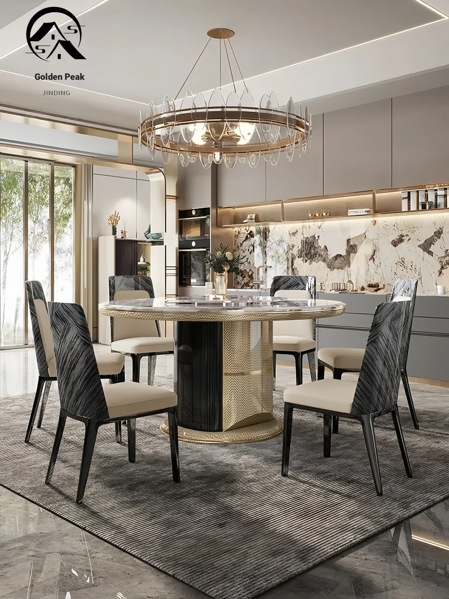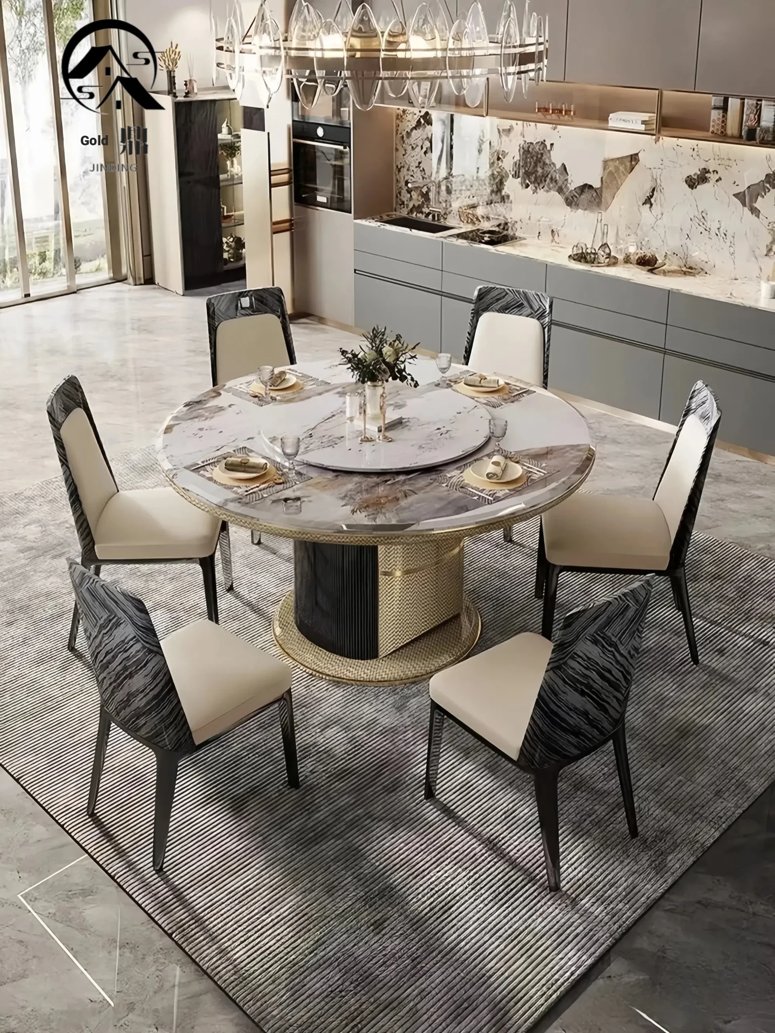 Italian Luxury Modern Dining Table and Chair Set - High-End Villa Restaurant Quality, Natural Marble Round Table for Stylish Home Dining