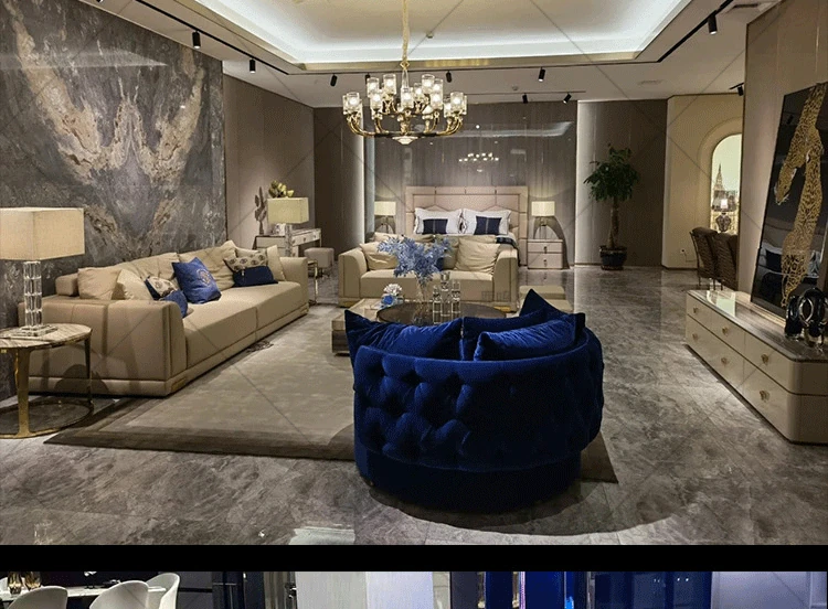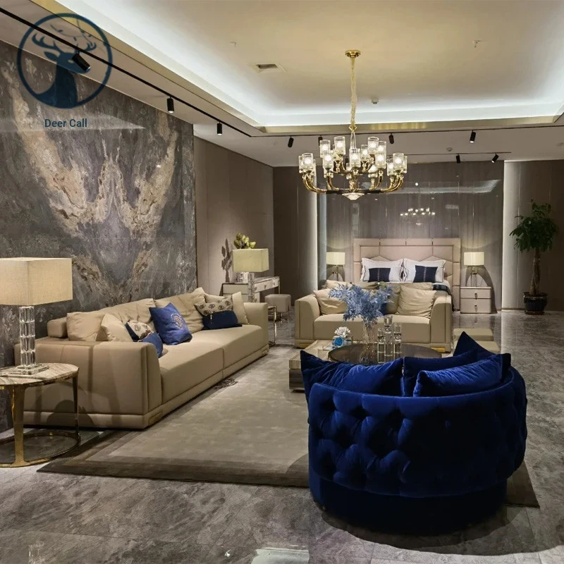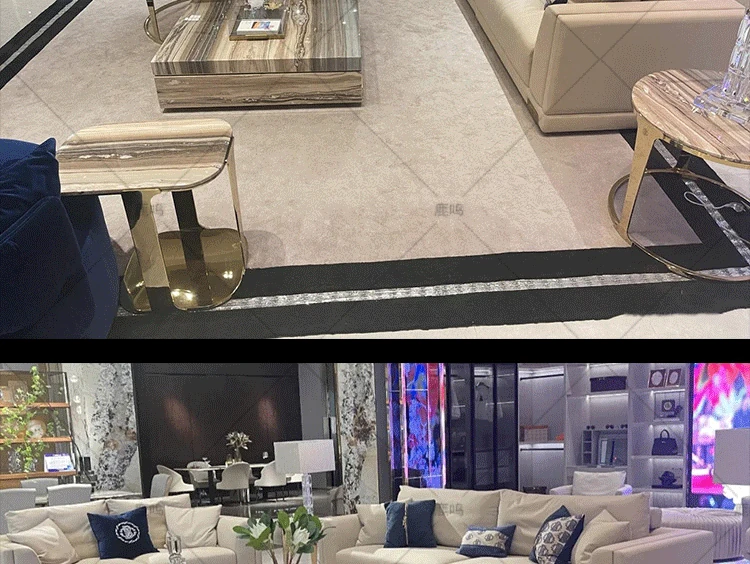 Italian Luxury Modern Solid Wood Genuine Leather Sofa Set for Living Room - Perfect for Villas and Spacious Apartments