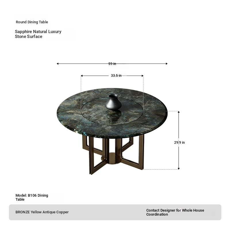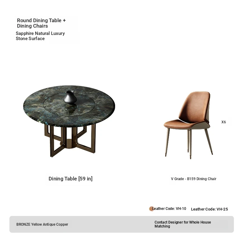 59.06in round dining table [sapphire natural luxury stone surface] + B159 dining chair * 6