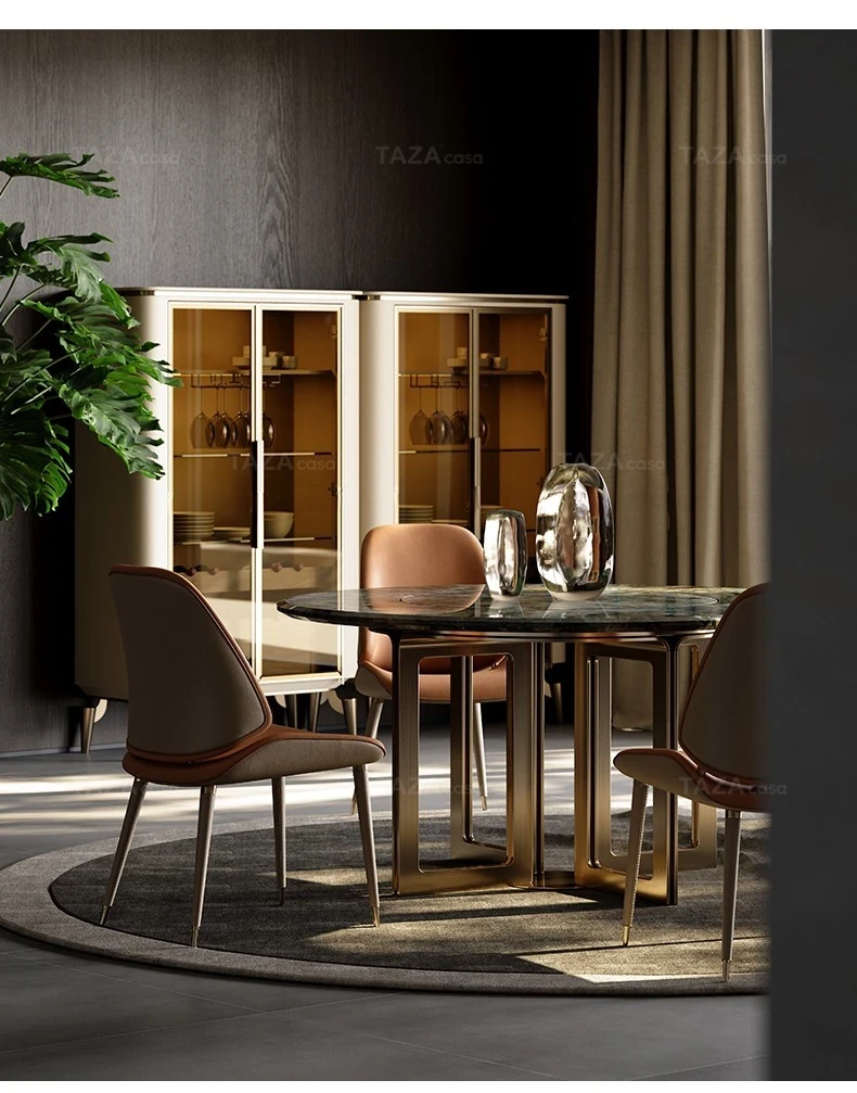 Italian Luxury Round Dining Table - Elegant Embedded Design for Villas and Mansions - Perfect for Dining Room Series - New 2024 Collection