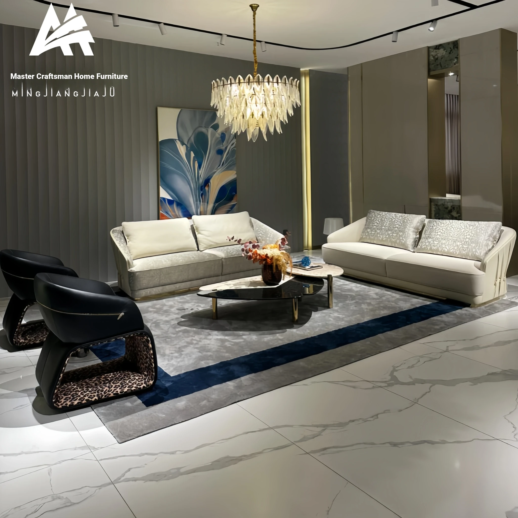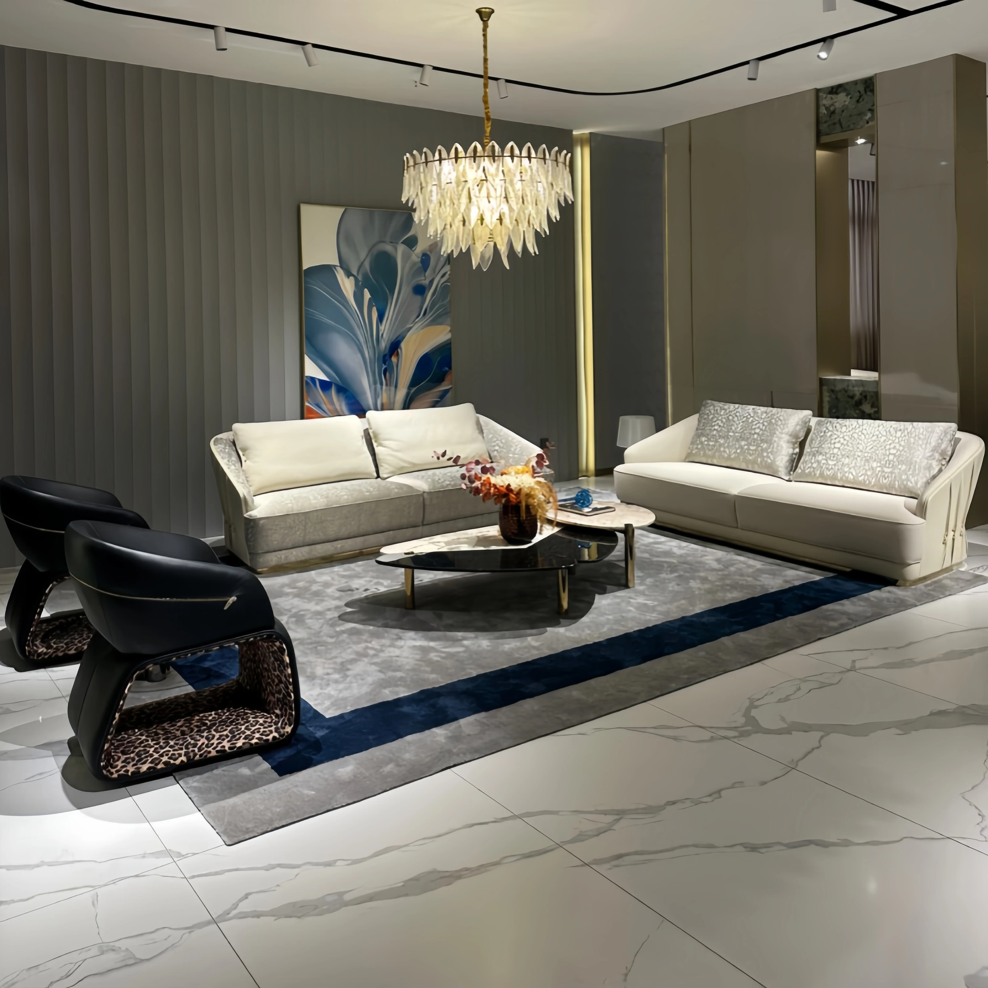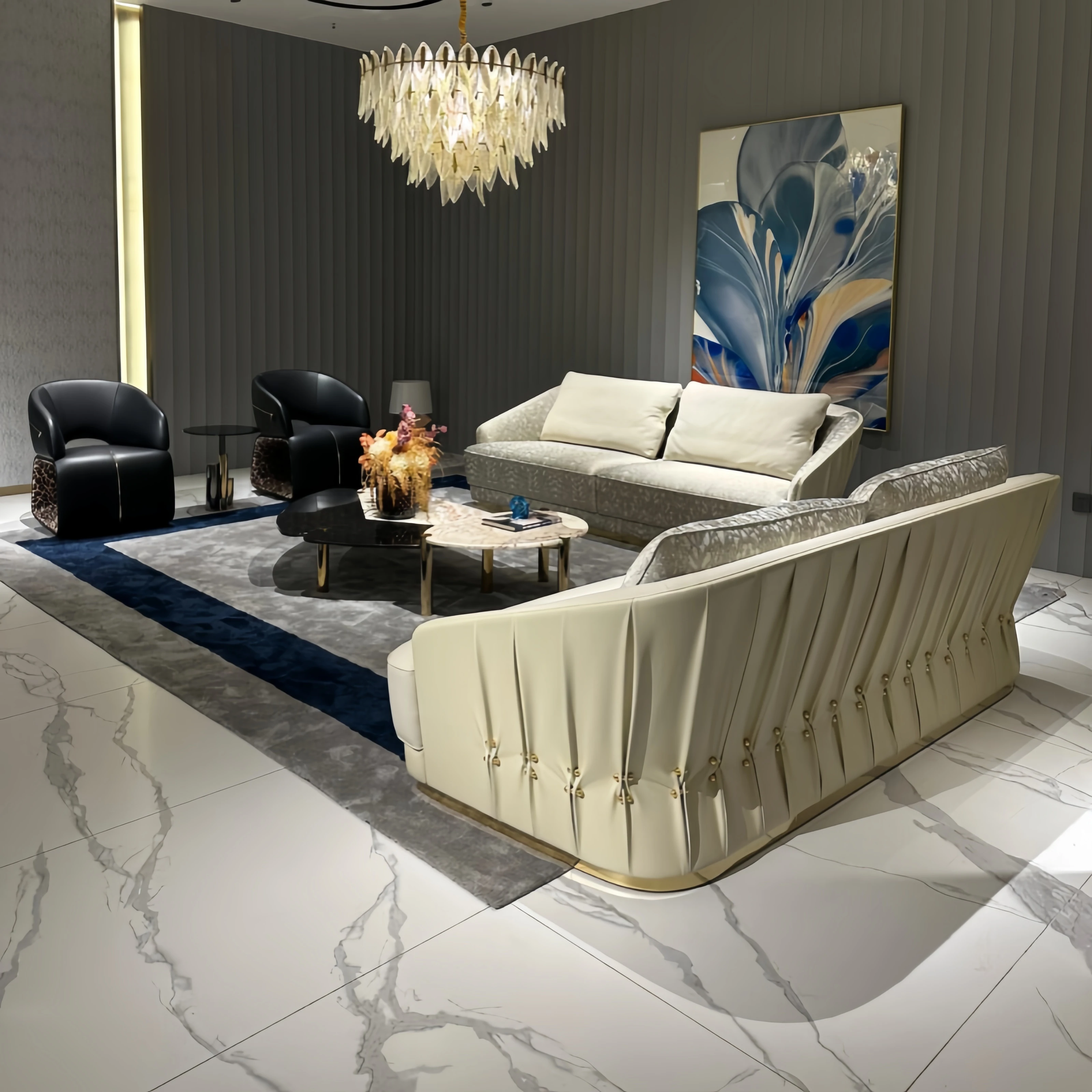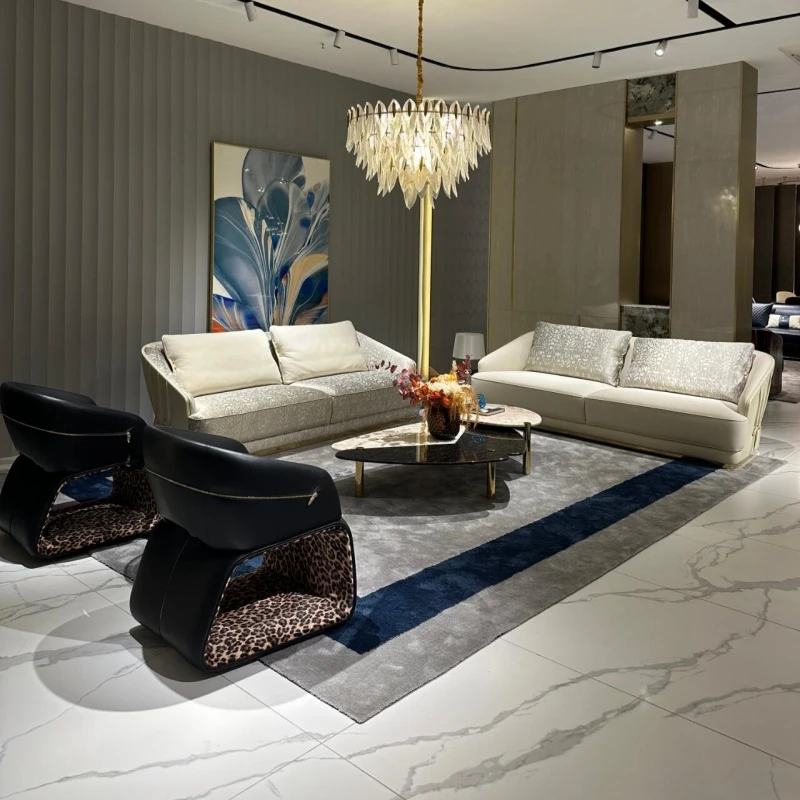 Italian Minimalist Luxury Black Leather Modular Sofa Set - Modern High-End Cavoli Design for a Chic Living Space