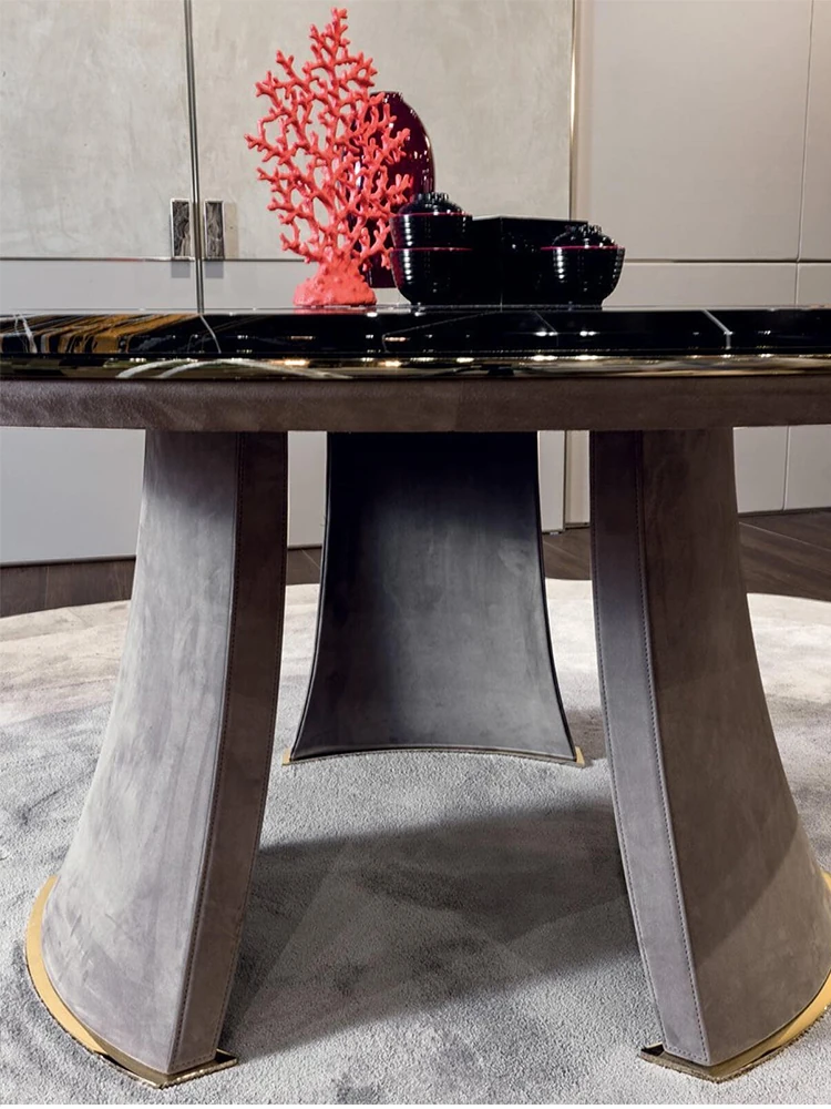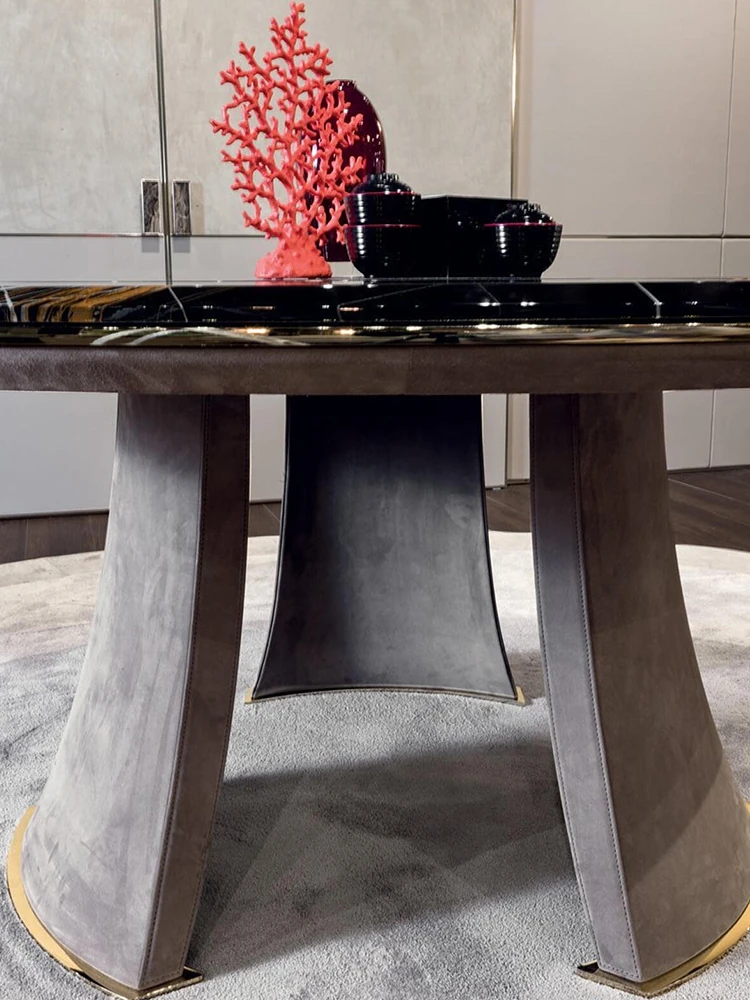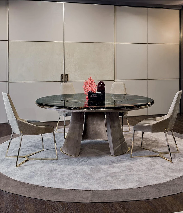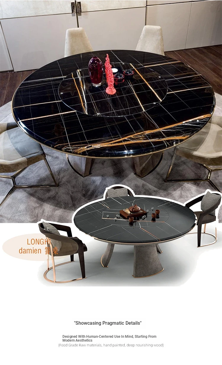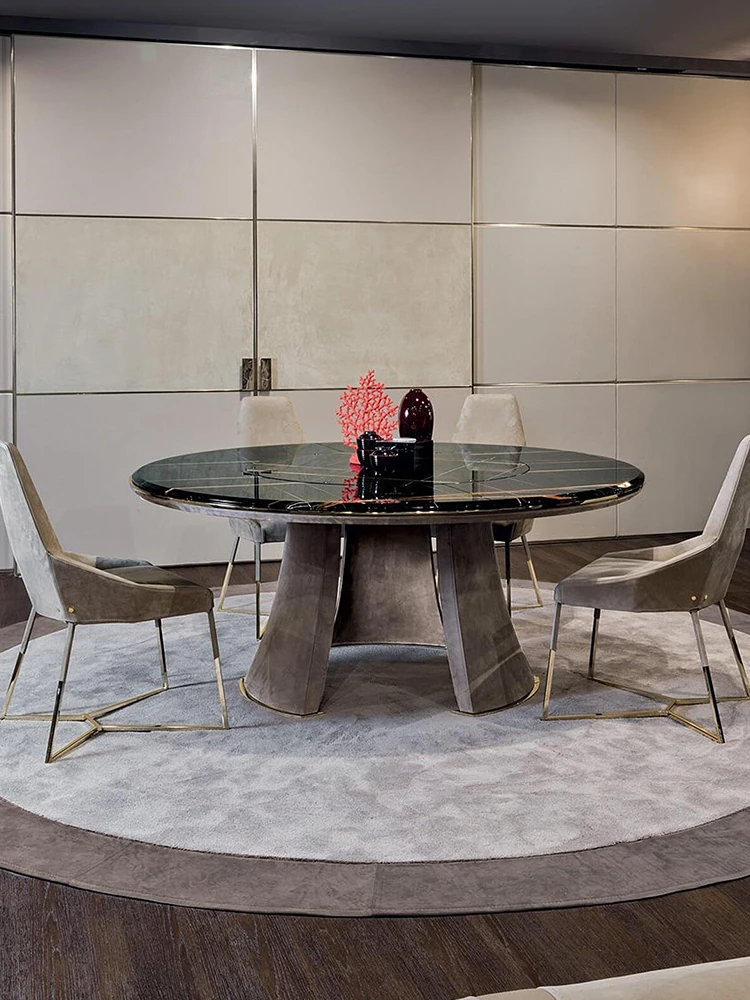 Longhi Damien Italian Luxury Marble Round Dining Table and Chair Set - Elegant Design for Villas and Mansions, Perfect for Stylish Interiors on Xiaohongshu