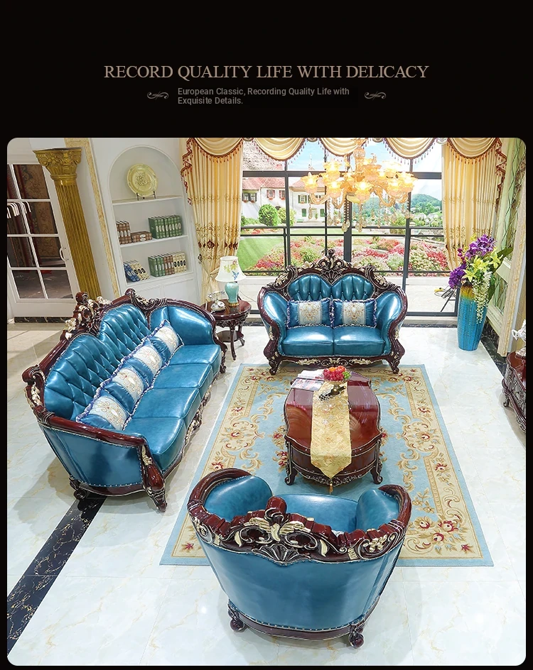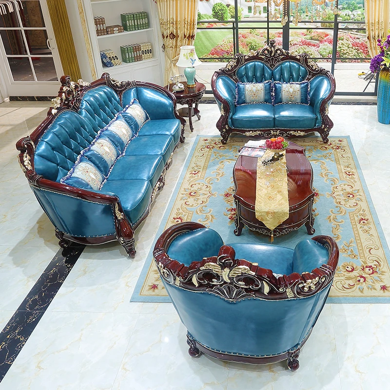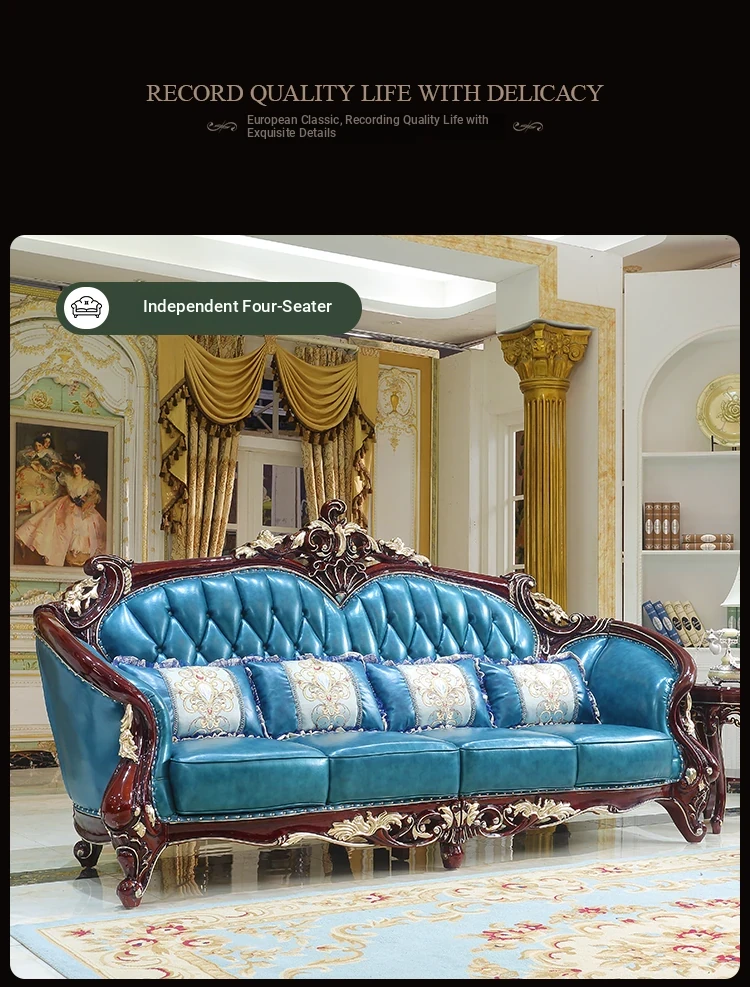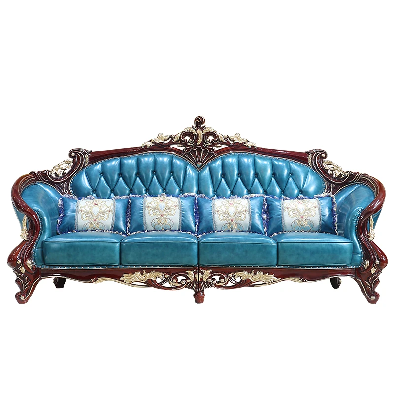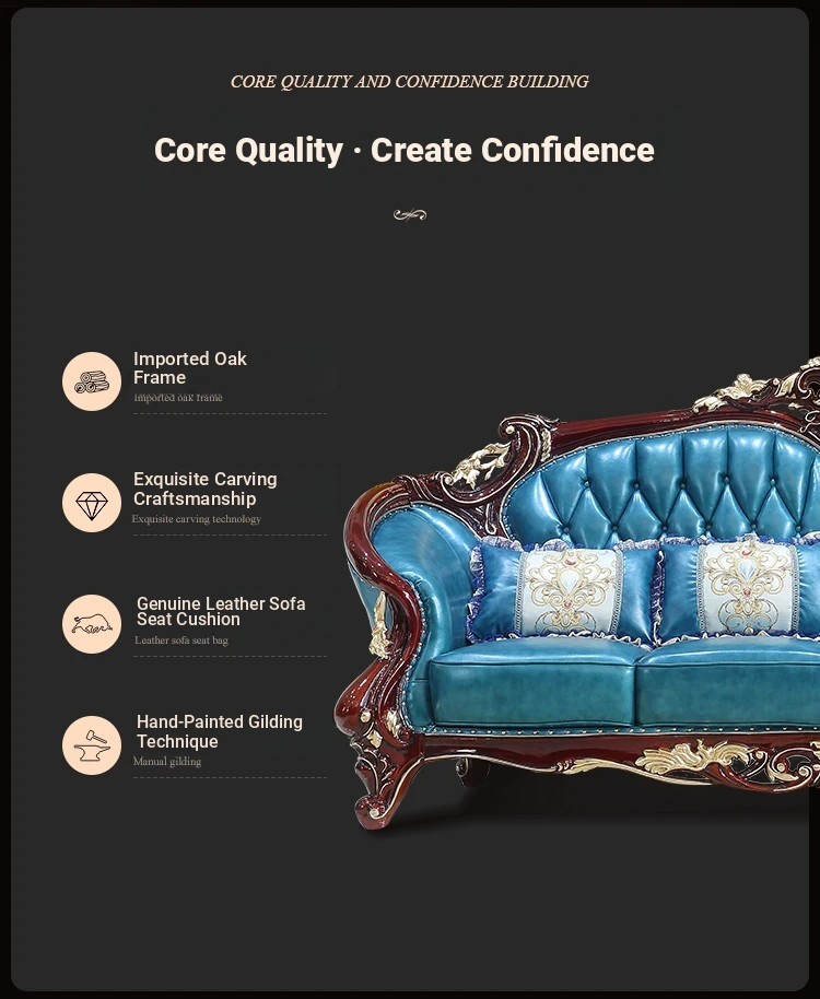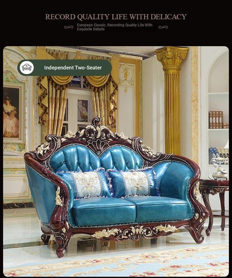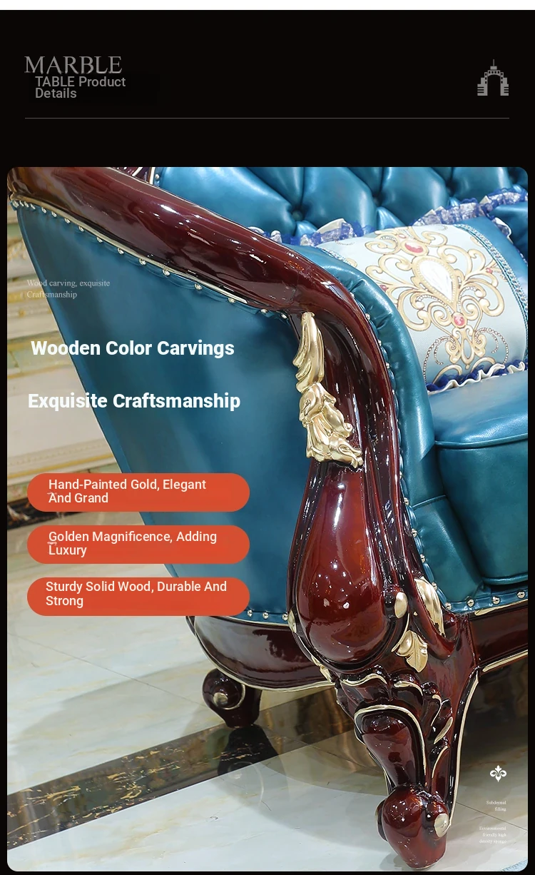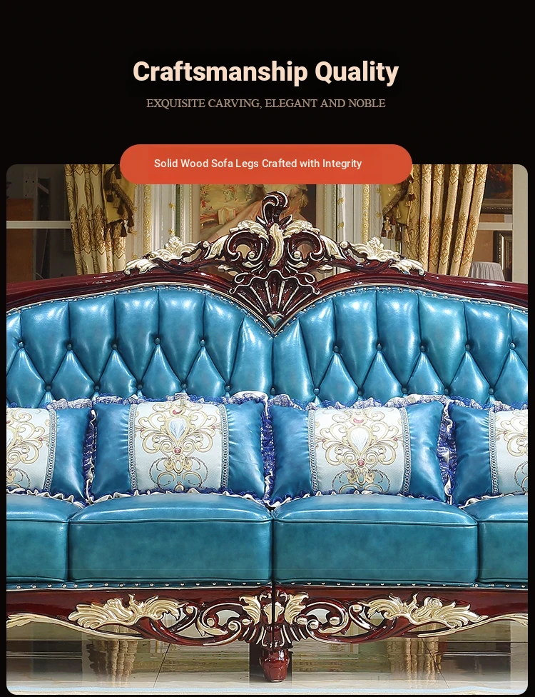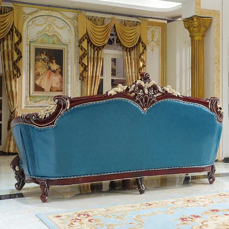 Luxurious European Style Genuine Leather Sofa Set - Hand-Carved Solid Wood Design in Rich Red Sandalwood Color, Perfect for Villa Living Rooms - Complete Range of Elegant Home Furniture